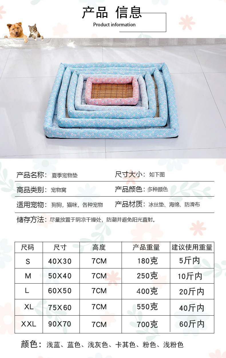 국경을 넘는 인기 여름 얼음 실크 애완 동물 쿠션 개 냉각 쿠션 시원한 사각형 둥지 애완 동물 둥지 개집스토어 가기