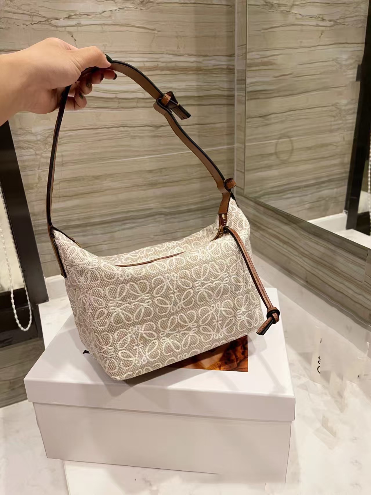 원래 표준 두 번째 머리 하이 퀄리티 새로운 Luojia Cubi 도시락 가방 점심 가방 자카드 자수 핸드백 큰 브랜드 여성 가방스토어 가기