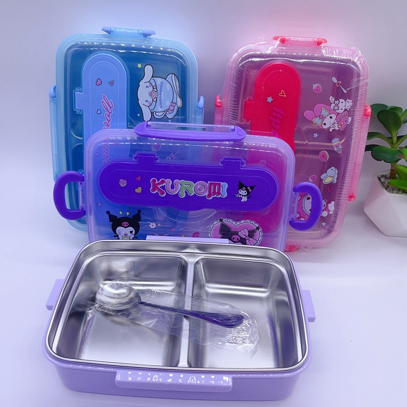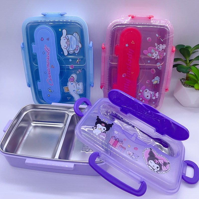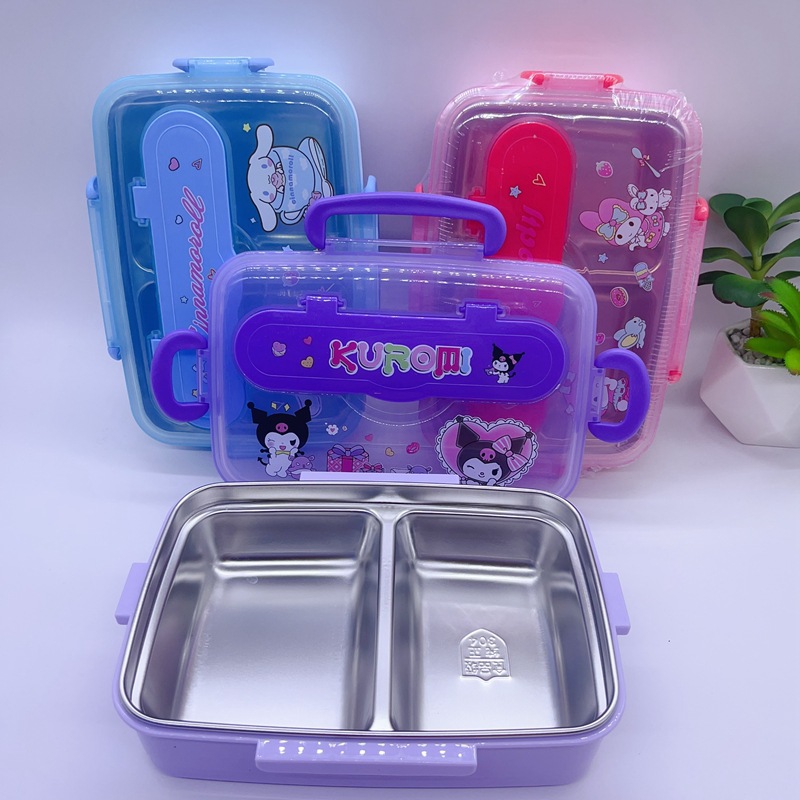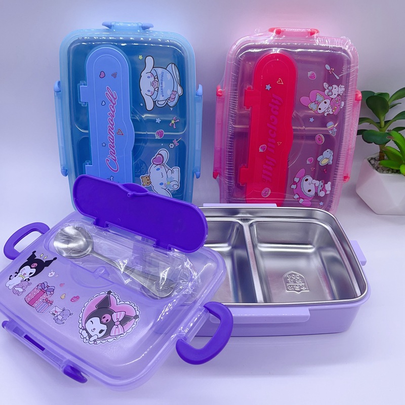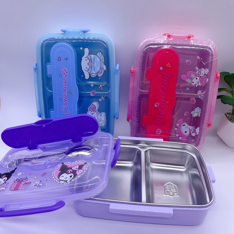 귀여운 만화 창조적 인 2 칸 304 스테인레스 스틸 도시락 학생들은 자신의 숟가락 도시락 어린이 생일 선물을 가지고