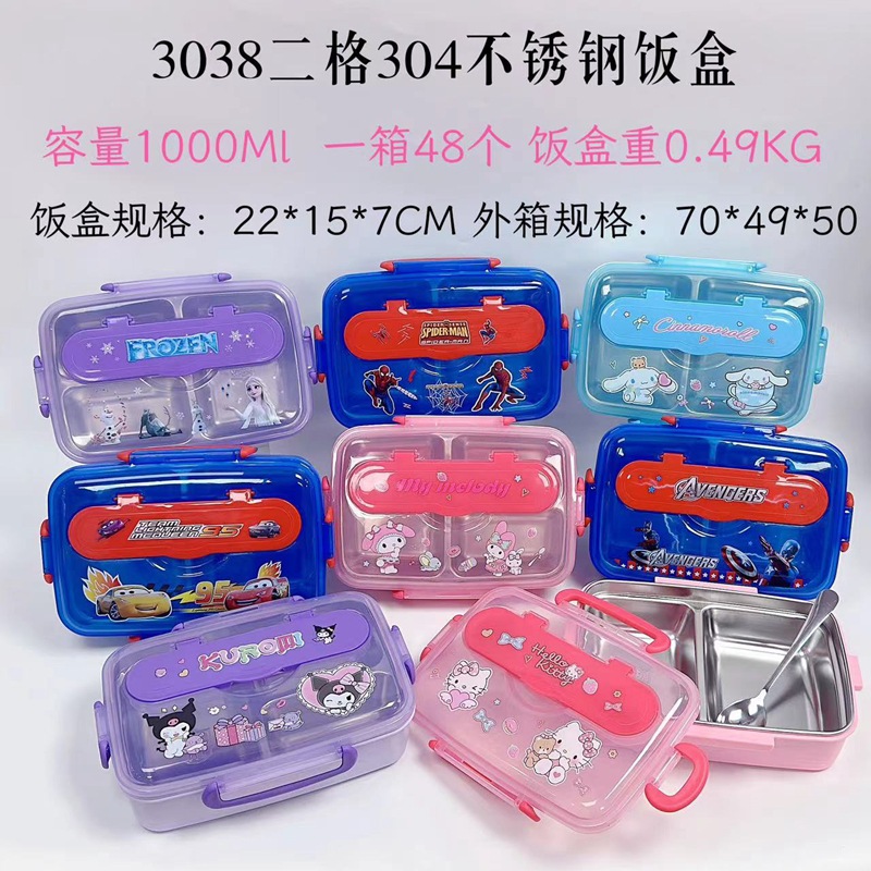 • 3038 카툰 2칸 스테인리스 도시락통(48개/박스)