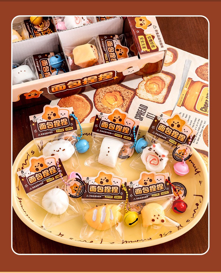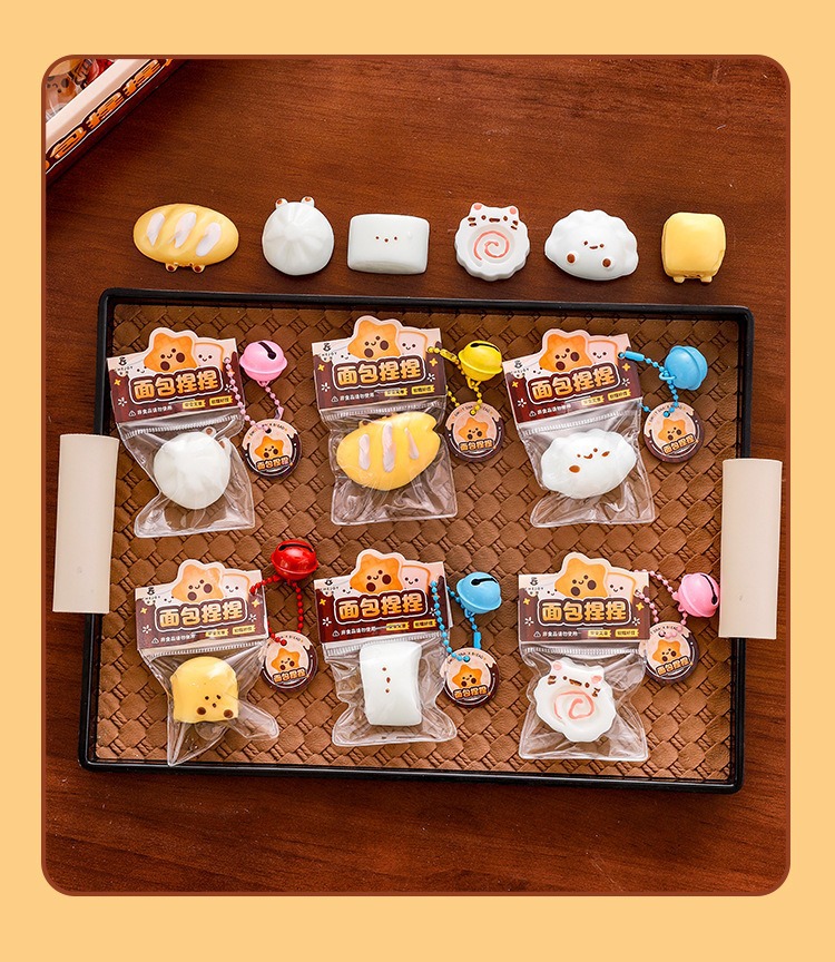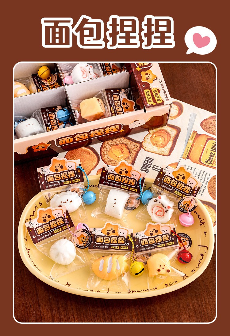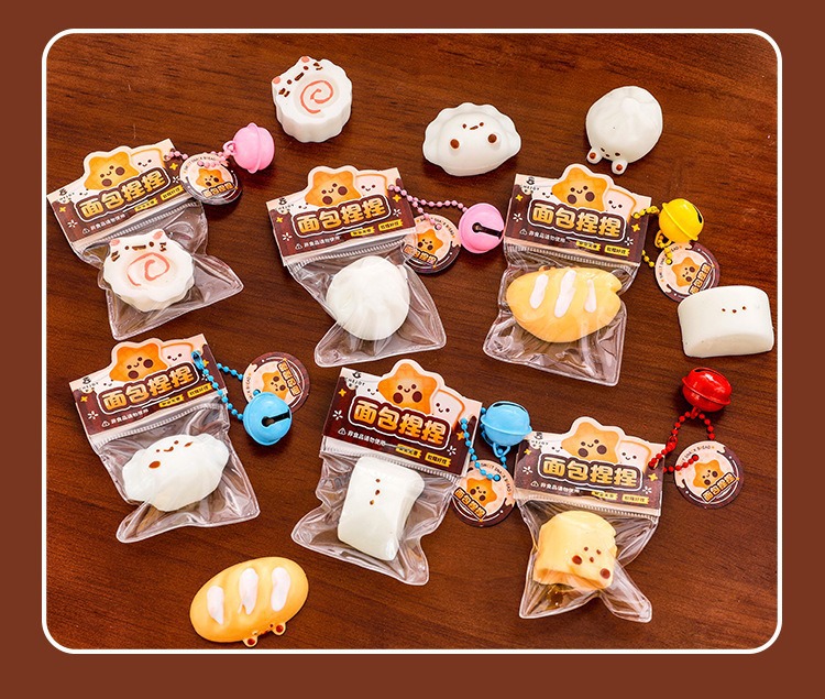 귀여운 음식 놀이 감압 핀치 음악 창조적 인 어린이 감압 벤트 볼 시뮬레이션 빵 벨 펜던트 작은 선물