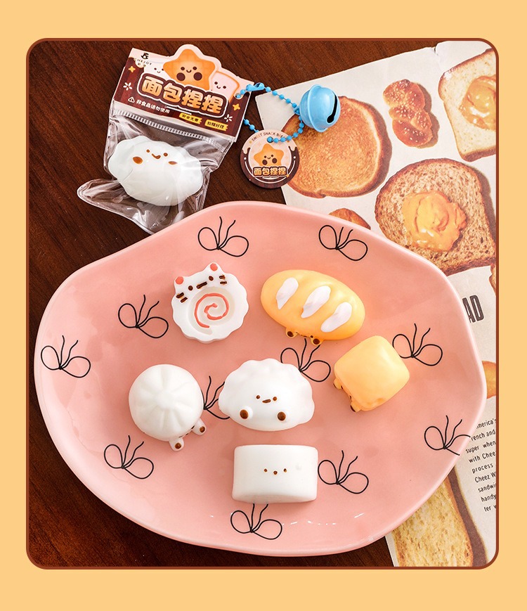 귀여운 음식 놀이 감압 핀치 음악 창조적 인 어린이 감압 벤트 볼 시뮬레이션 빵 벨 펜던트 작은 선물스토어 가기