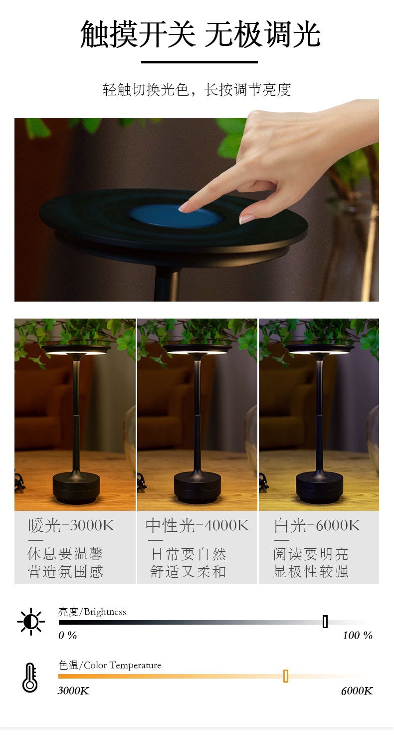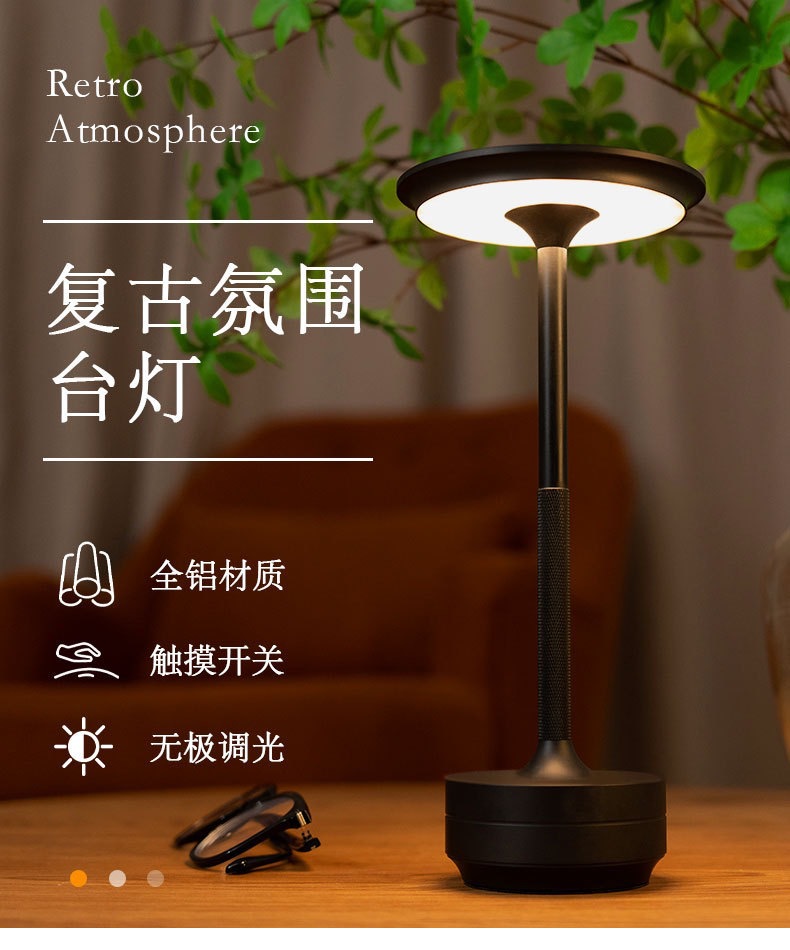 국경 간 창조적 인 테이블 램프 레트로 라이트 럭셔리 바 클리어 바 분위기 램프 충전 침실 터치 현대 간단한 야간 조명