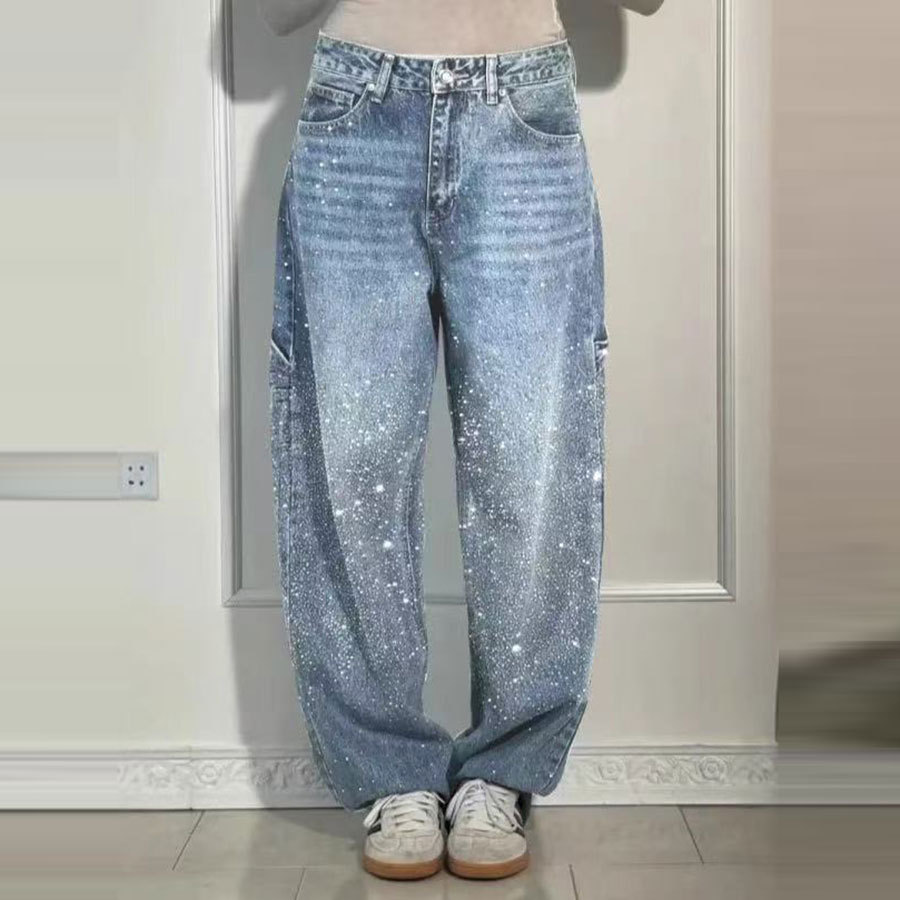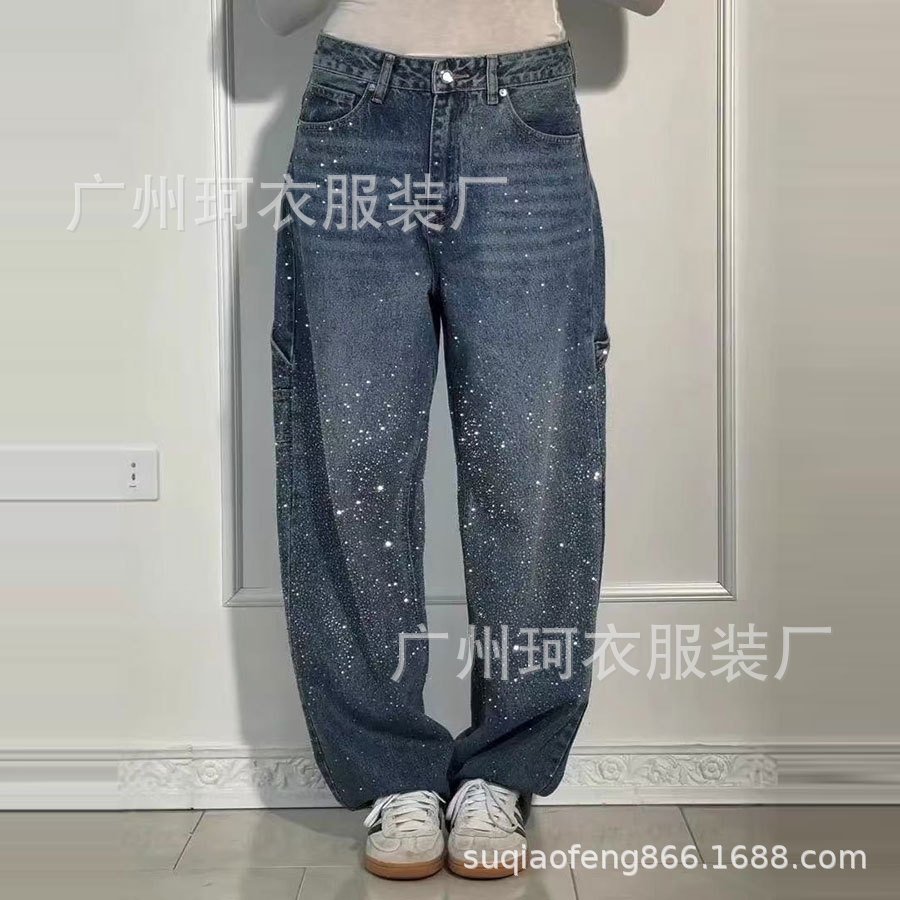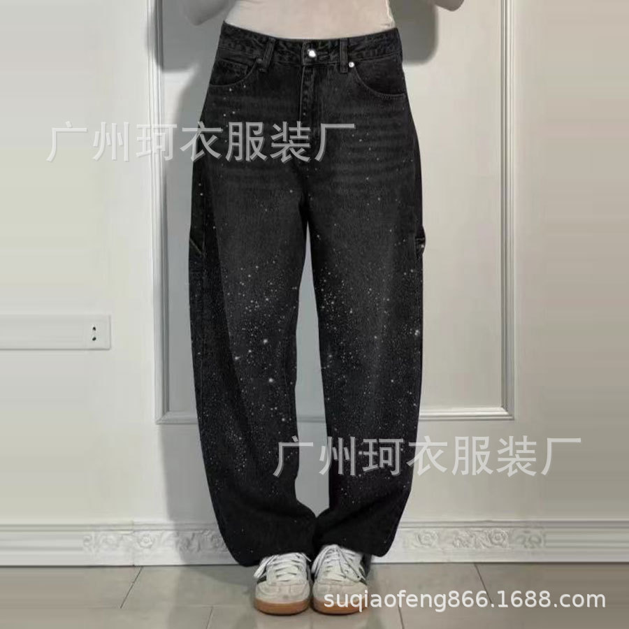 아마존 독립 역 2025 봄 새로운 대외 무역 국경 유럽 및 미국 간단한 느슨한 스트레이트 청바지 여성 도매