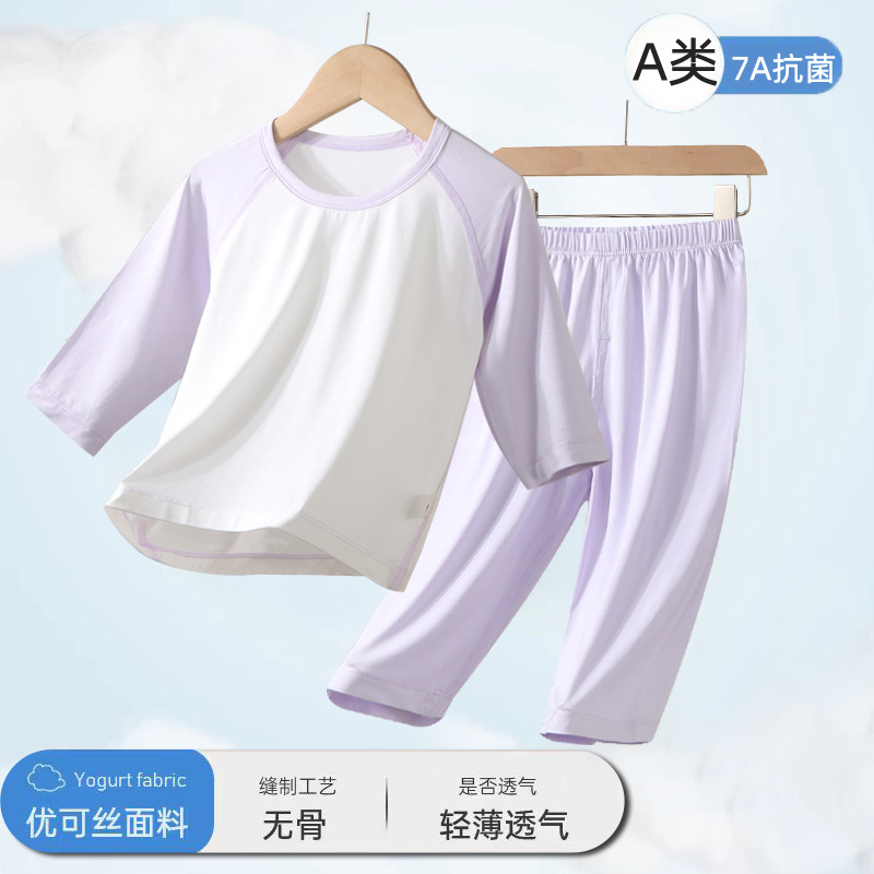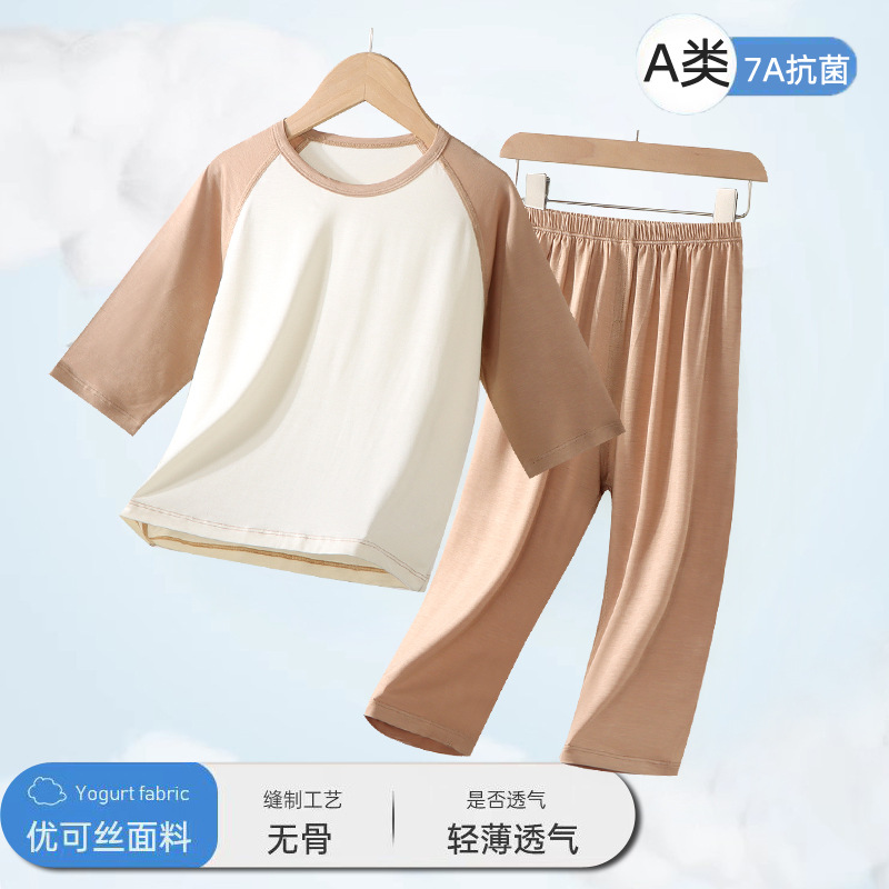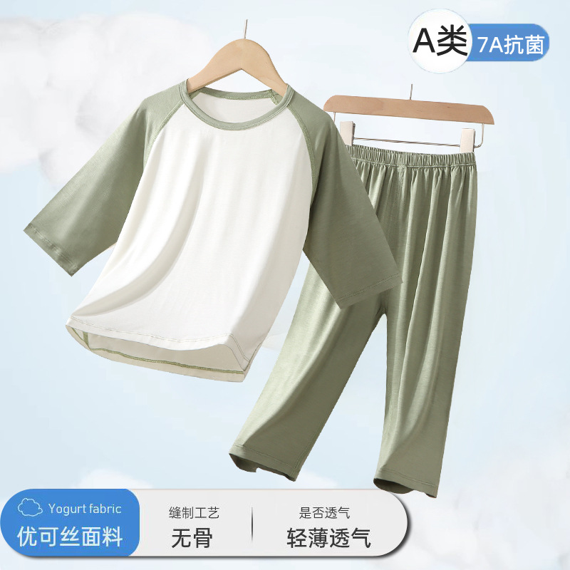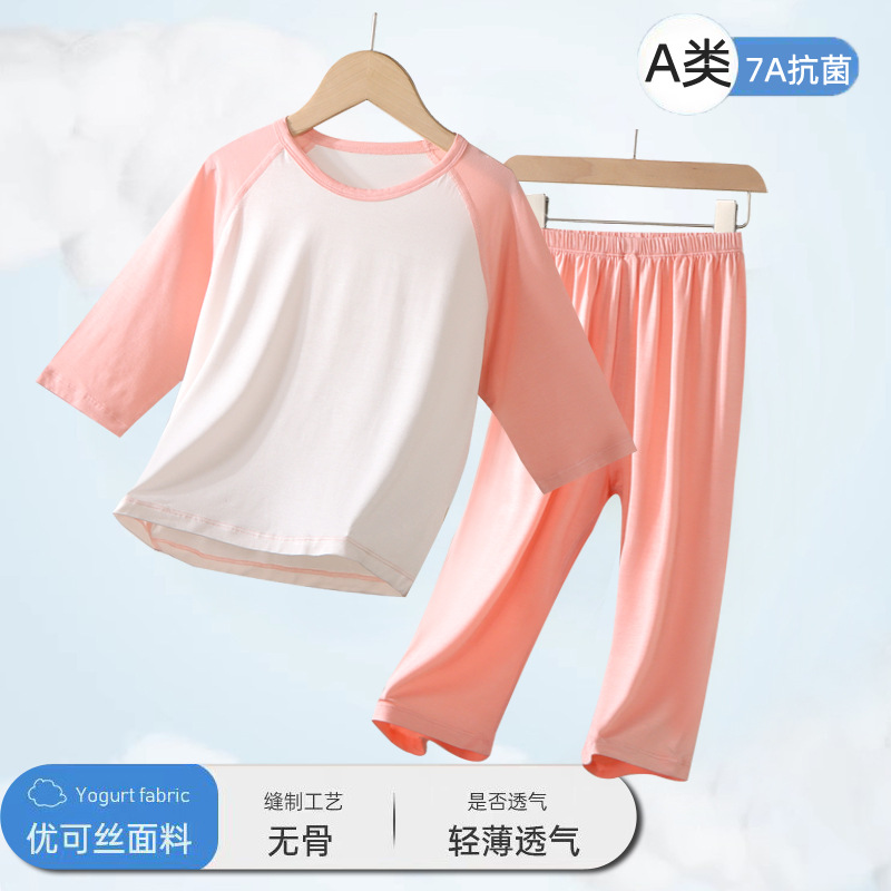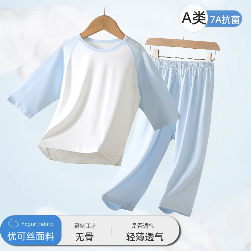 2025 어린이 잠옷 여름 소년과 소녀 얇은 7 점 에어컨 옷 홈 세트 어린이 중 · 대형 어린이