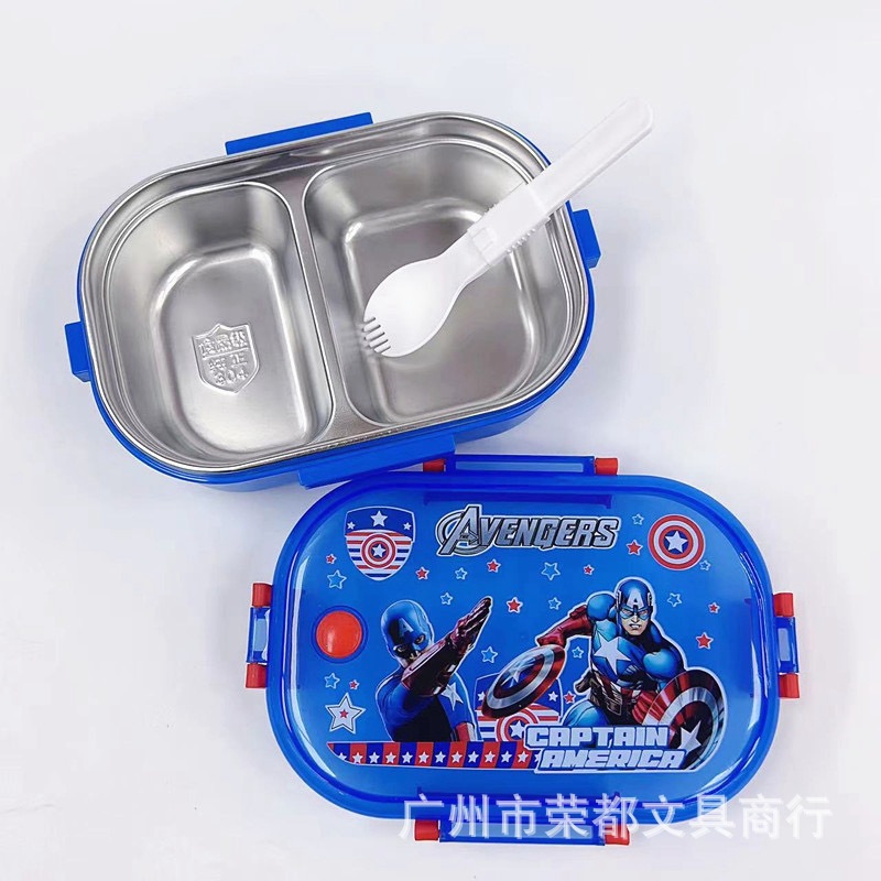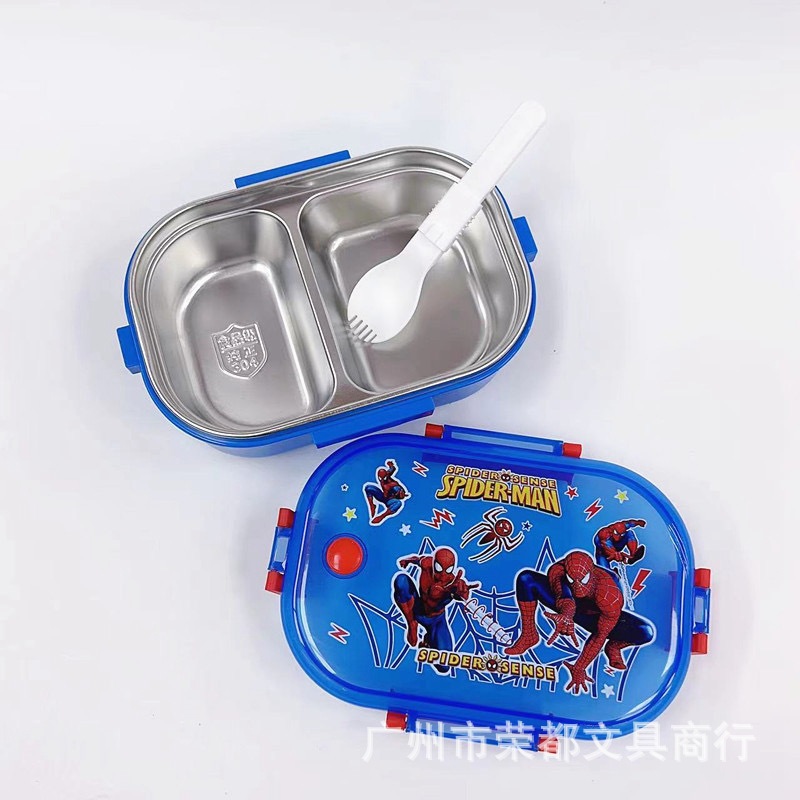 어린이 재미 만화 304 스테인레스 스틸 도시락 Moe 재미있는 모델링 2 칸 도시락 학생 750ml 자립 숟가락 도시락