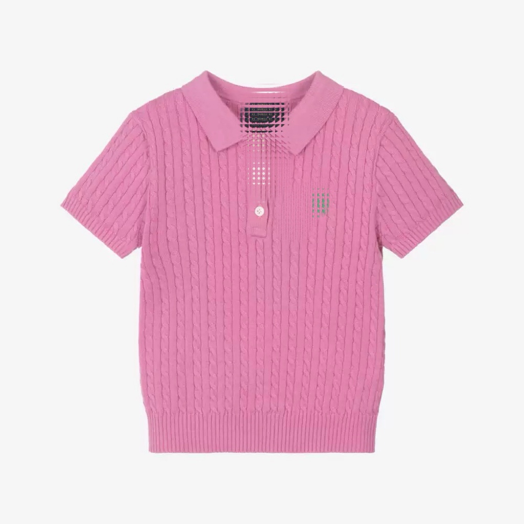봄과 여름 2025 새로운 폴로 칼라 라프 니트 스웨터 여성 중 큰 어린이 아이 스웨터 트위스트 라르스토어 가기