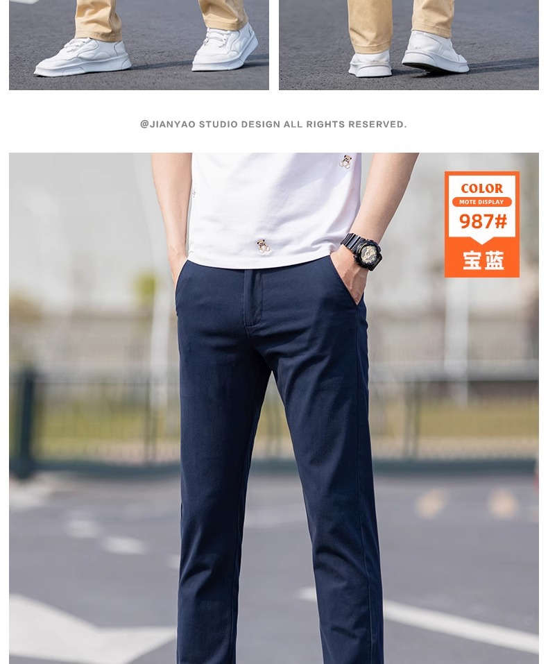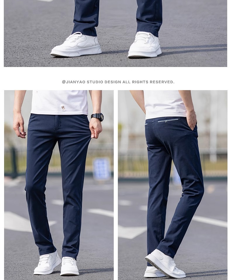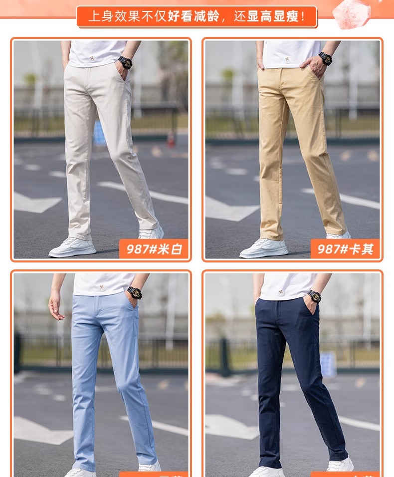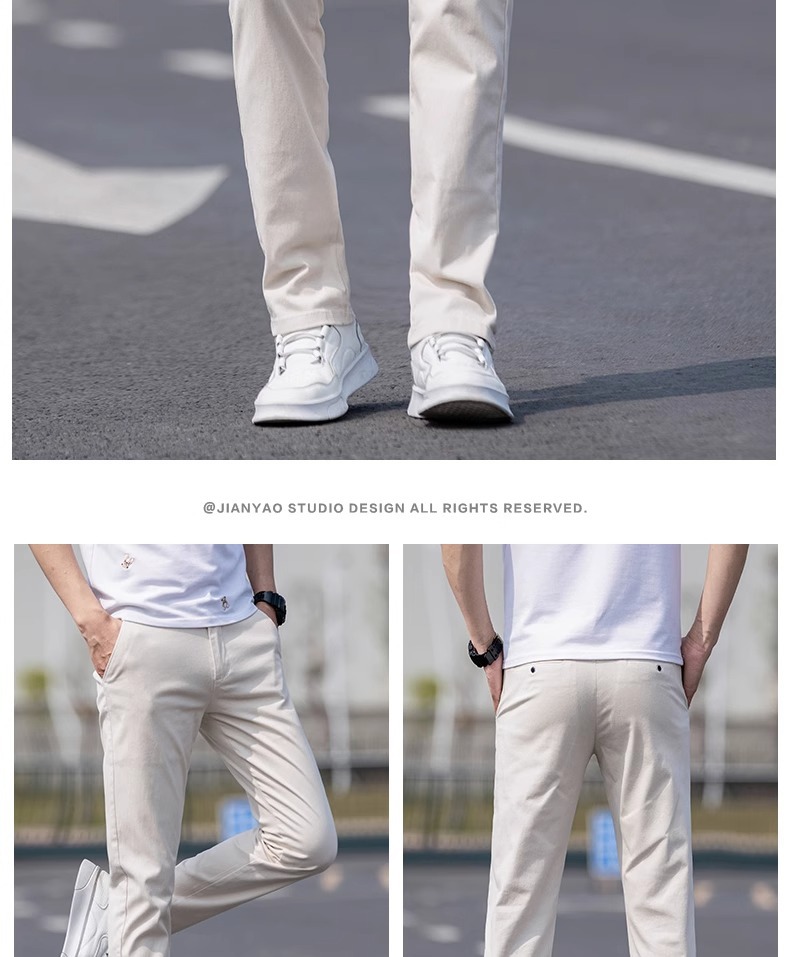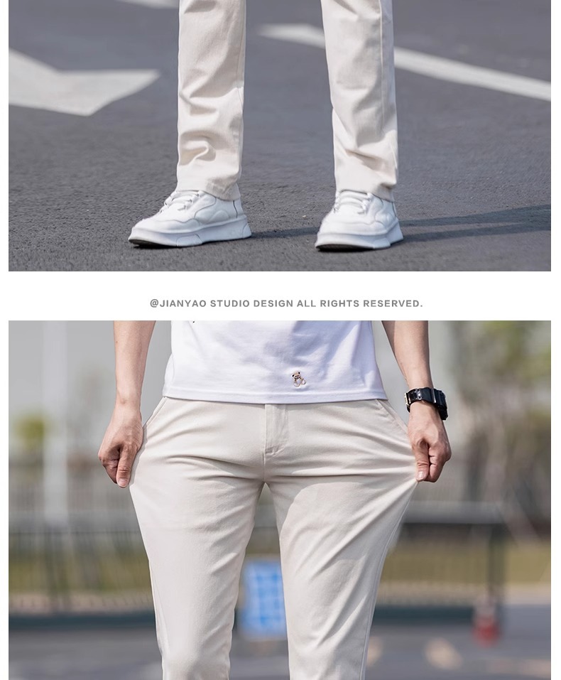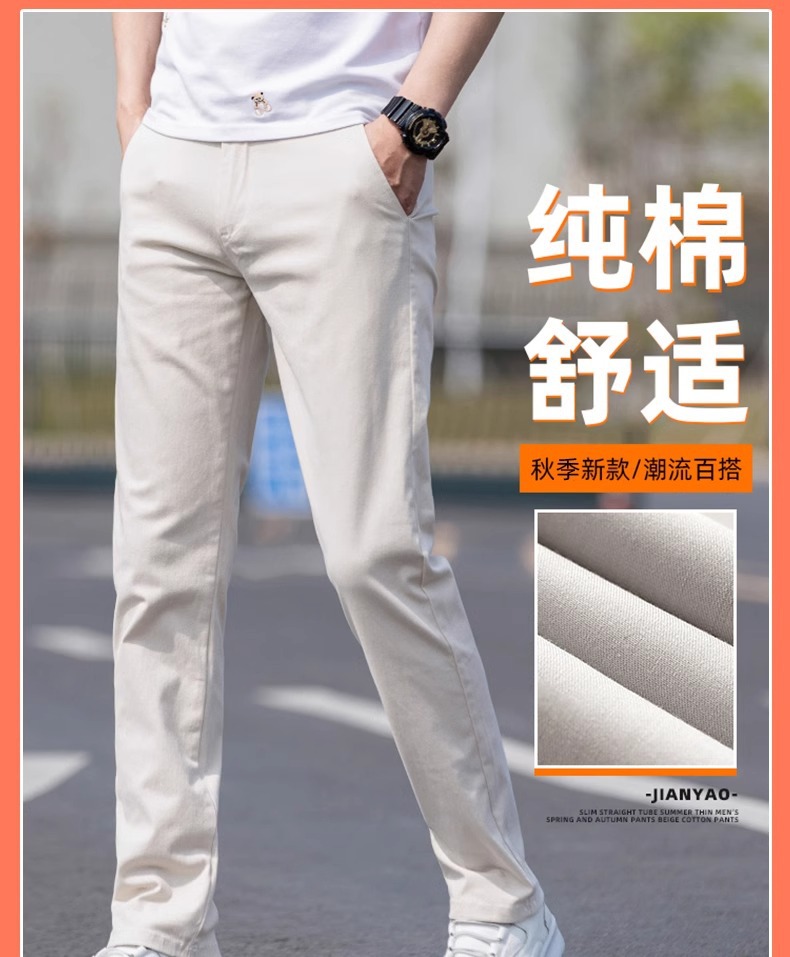미색 스트레이트 캐주얼 팬츠 남성용 봄 가을 2026 신상 고급 비즈니스 스타일 슬림핏 순면 남성 바지스토어 가기