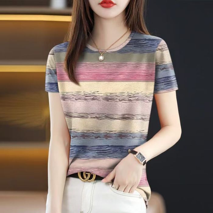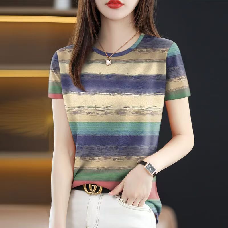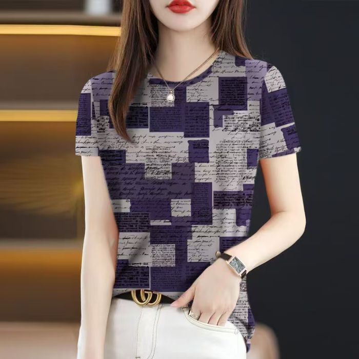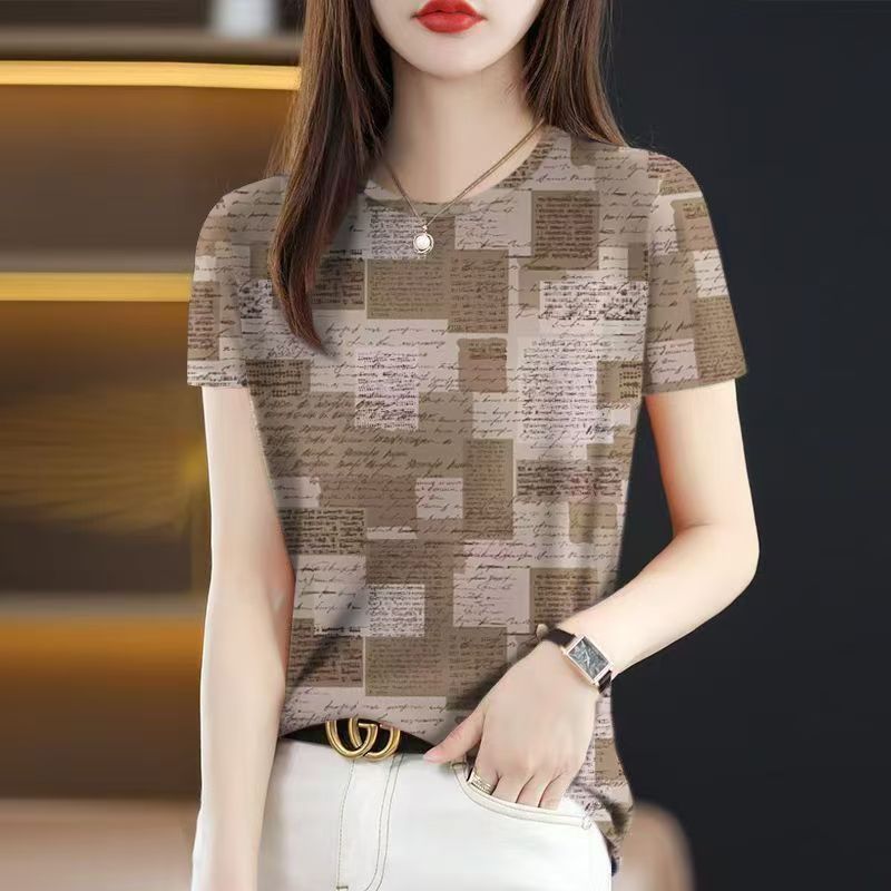 패션 여성 티셔츠 짧은 소매 2025 여름 새로운 라운드 넥 풀오버 웨스턴 스타일 복고풍 느슨한 최고 인기 트렌드스토어 가기
