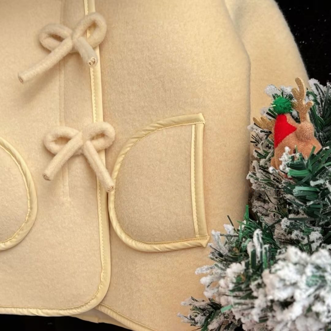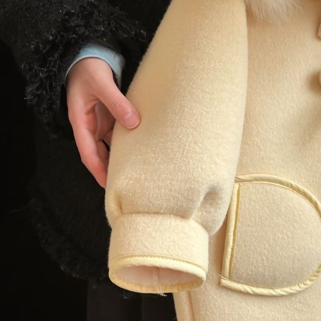2024 겨울 한국 스타일 아기 소녀 새해 아동 의류 소녀 활 플러스 벨벳 후드 모직 코트 따뜻한 벨벳 느낌