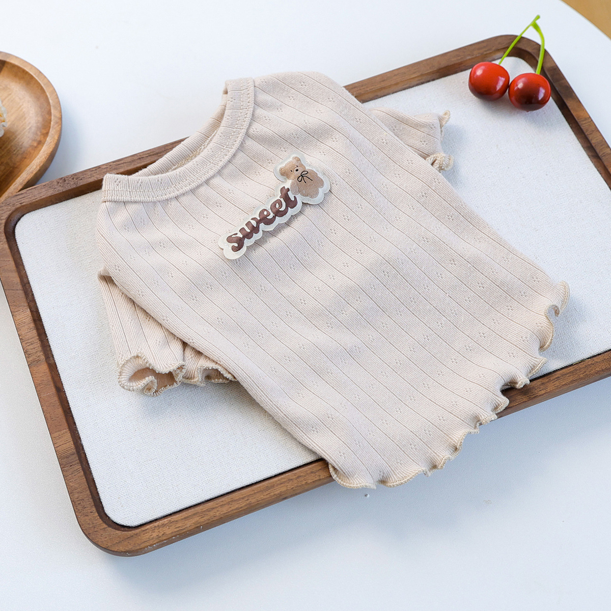 • 카툰 꽃봉오리 민소매 티셔츠 - 꼬마 브라운 베어