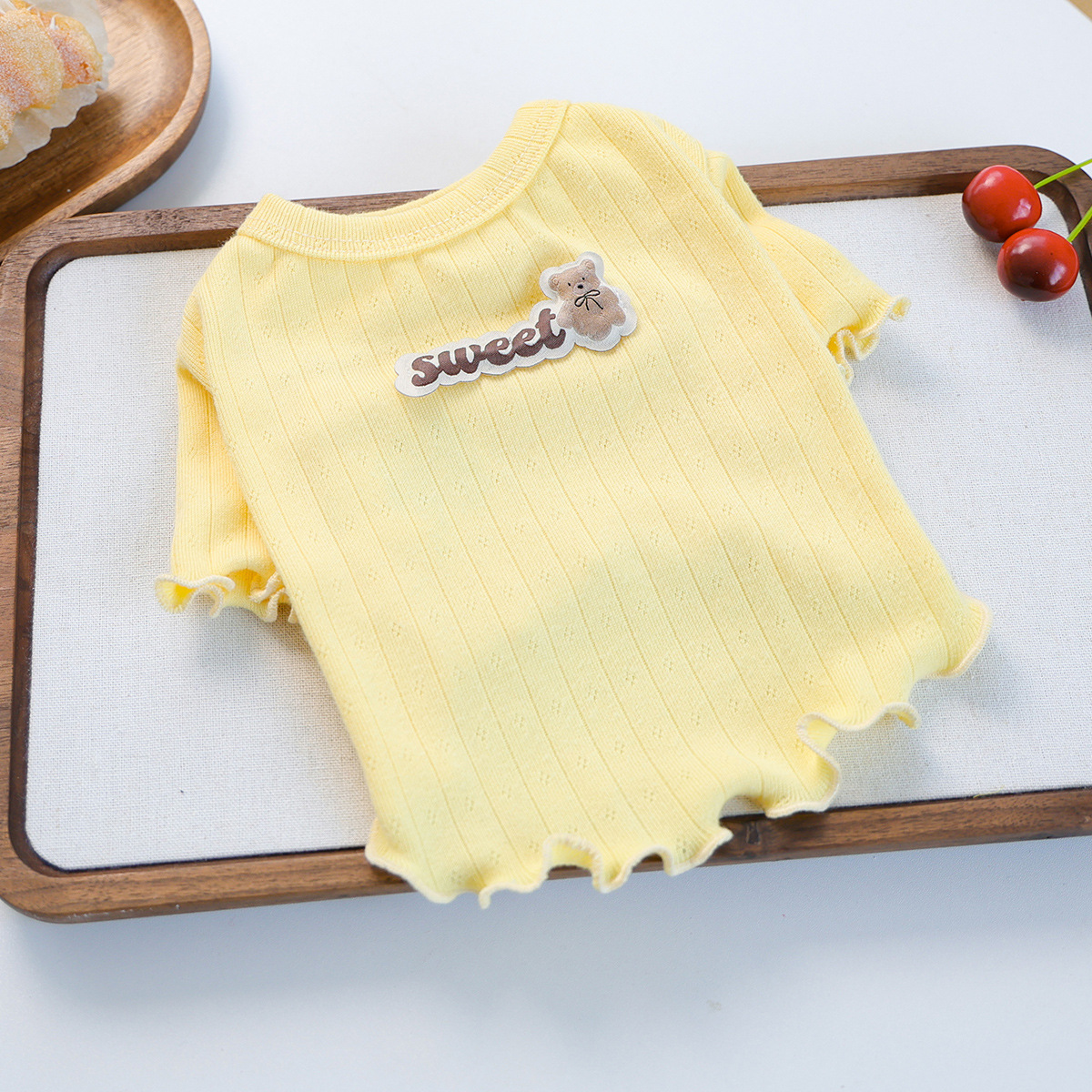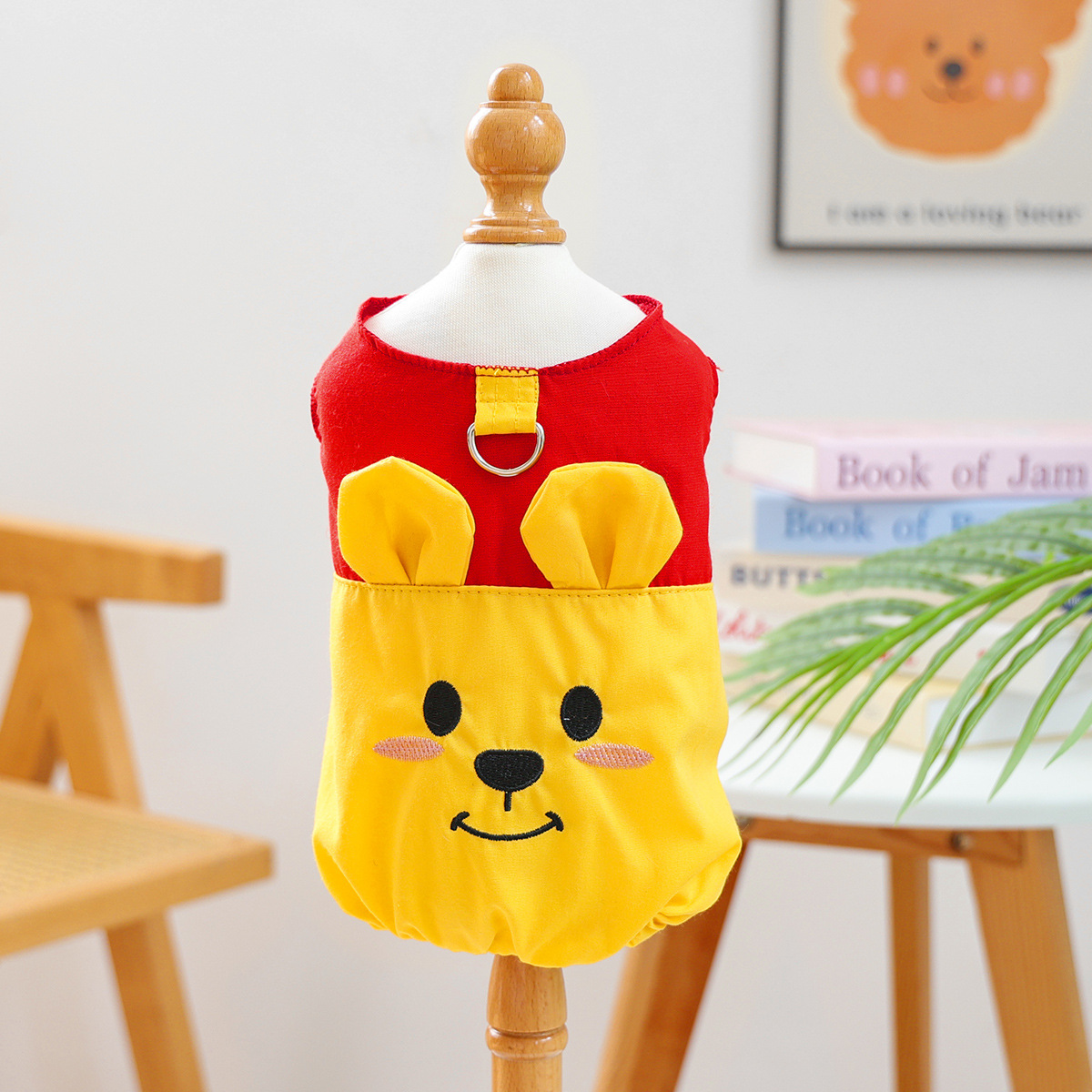 • 카툰 꽃봉오리 민소매 티셔츠 - 레드 & 옐로우 곰돌이