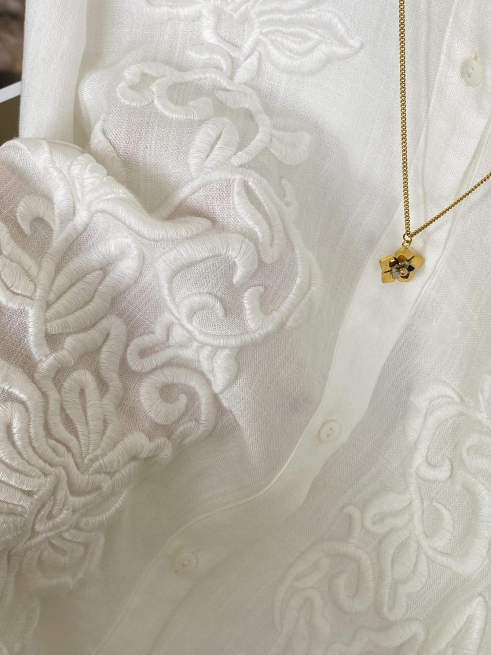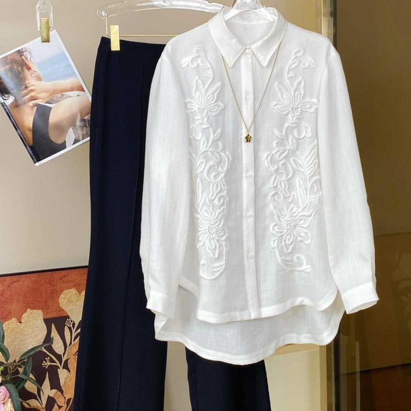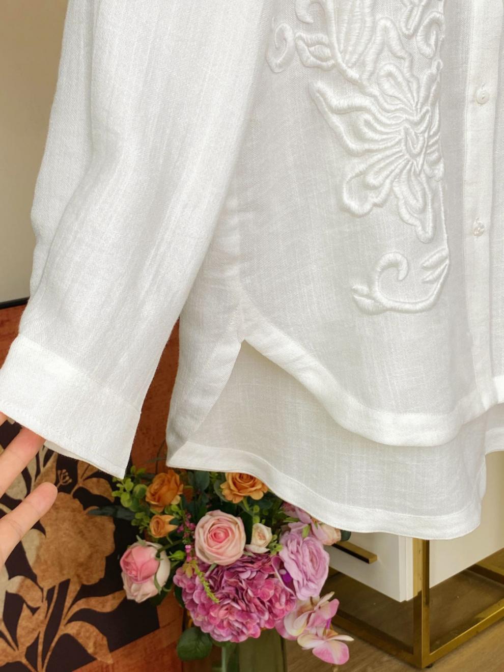 [3558 컬렉션] 새로운 중국 셔츠 여성 프랑스 틈새 디자인 자카드 국가 스타일 빈티지