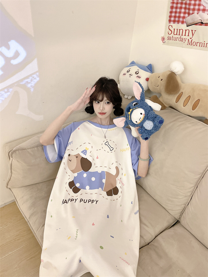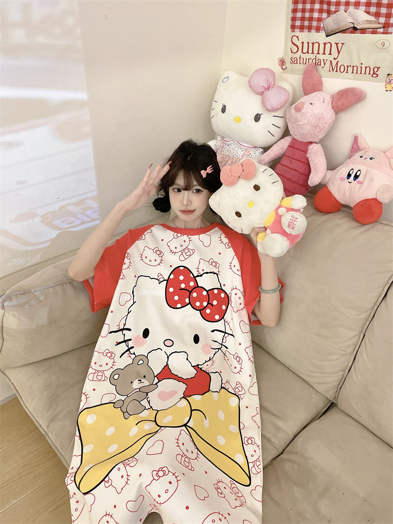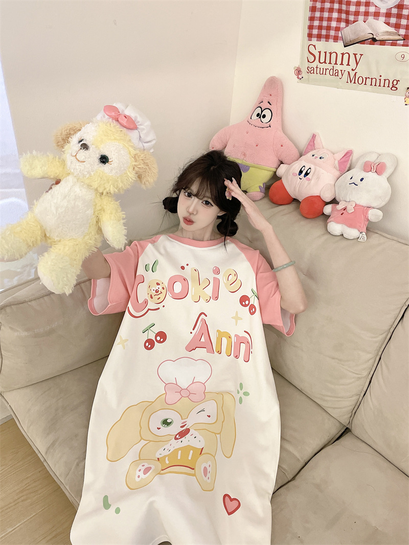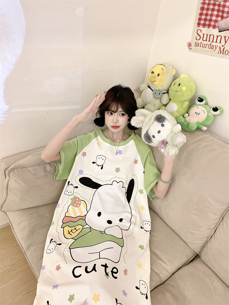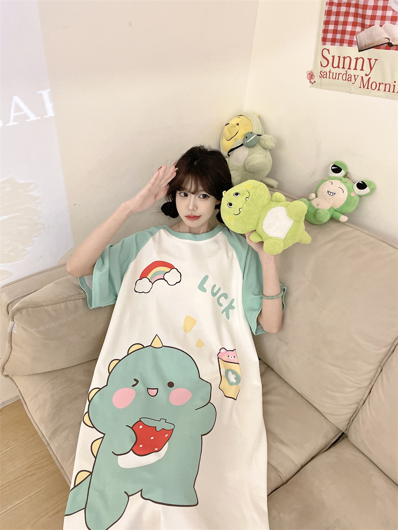대외 무역 동남아시아 여성용 플러스 사이즈 잠옷, 만화 캐릭터, 루즈핏, 여름 반팔, 중간 길이, 홈웨어, 성인 잠옷스토어 가기