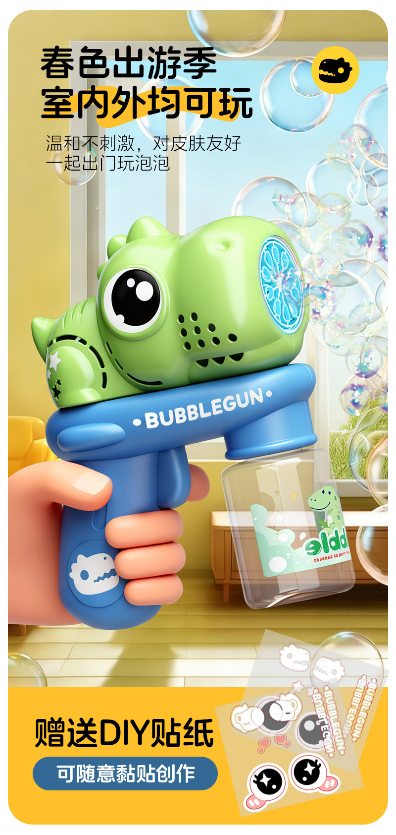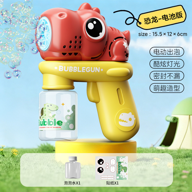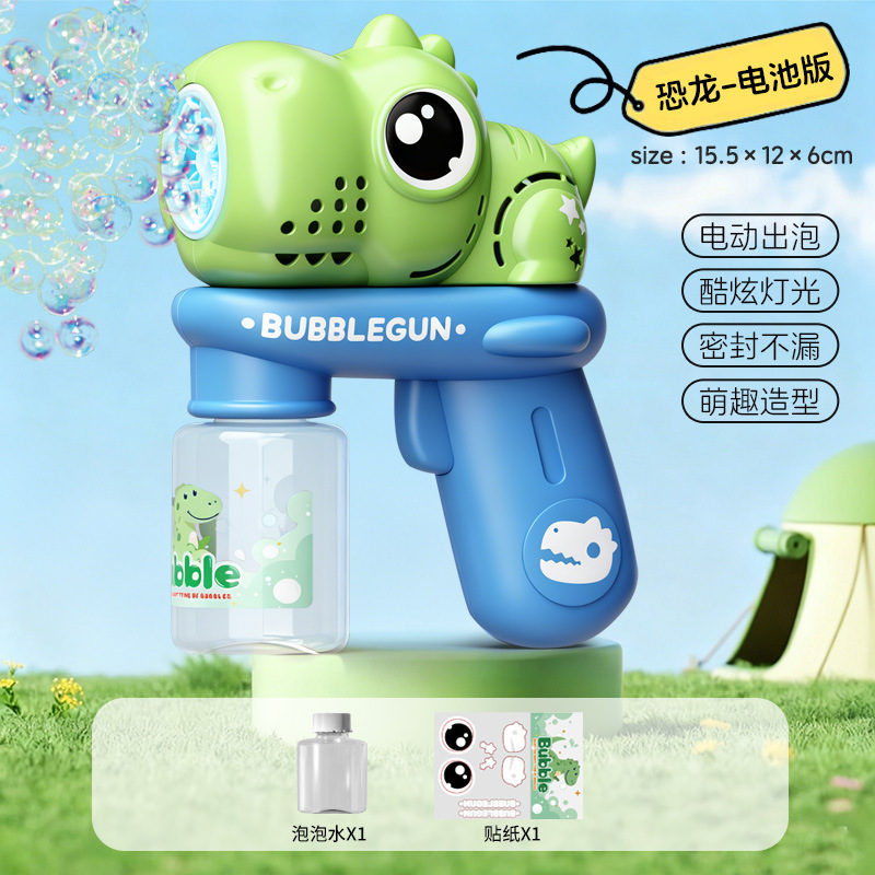 국경을 넘는 만화 버블건, 완전 자동, 휴대용, 누출 방지, 10홀 전동 버블 송풍 공룡 어린이용 소형 선풍기 장난감스토어 가기