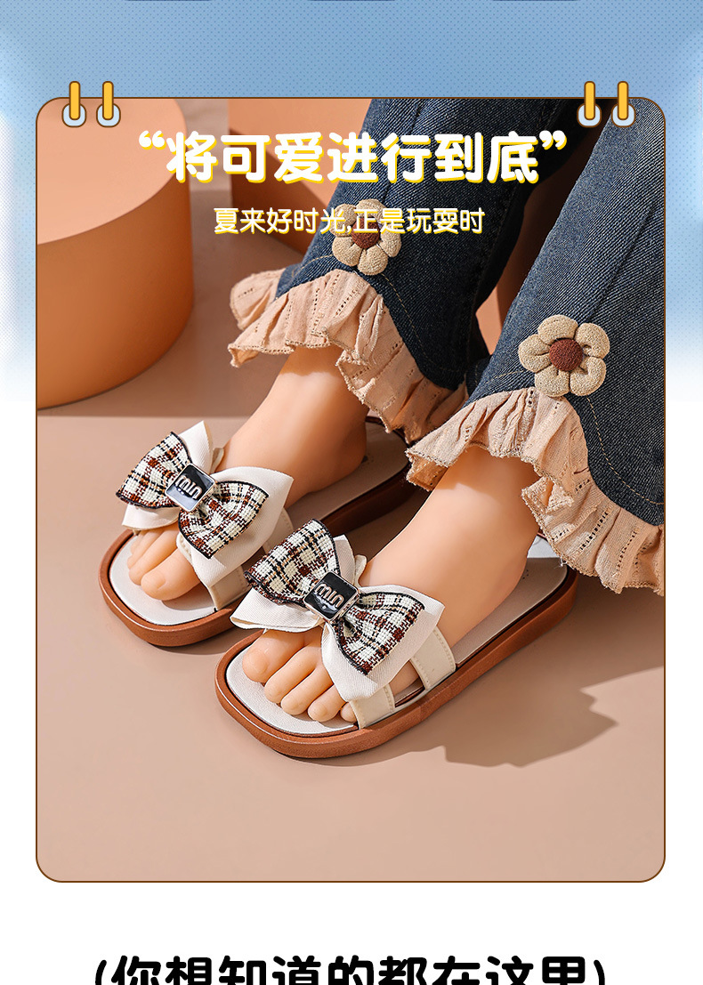 소녀의 활 슬리퍼 여름 외부 착용 2025 새로운 요정 스타일 유행 비 슬립 홈 실내 어린이 샌들스토어 가기