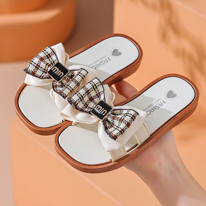 소녀의 활 슬리퍼 여름 외부 착용 2025 새로운 요정 스타일 유행 비 슬립 홈 실내 어린이 샌들