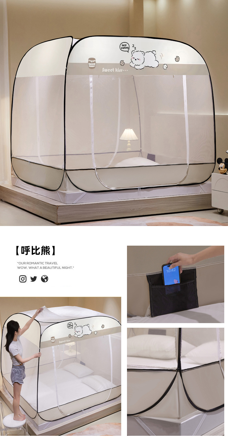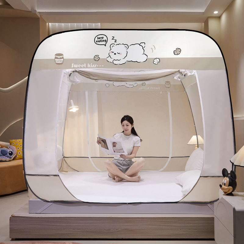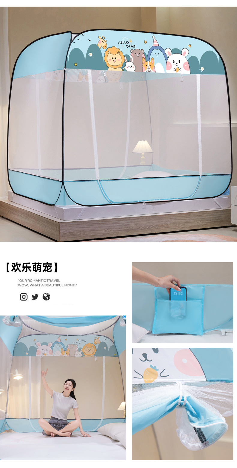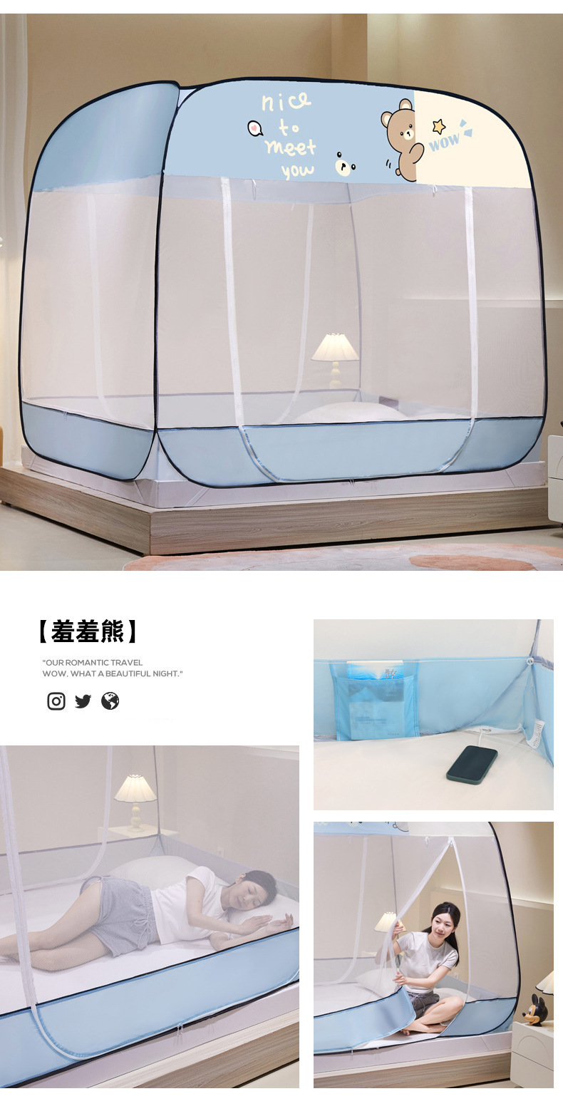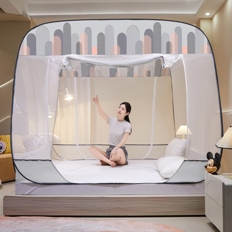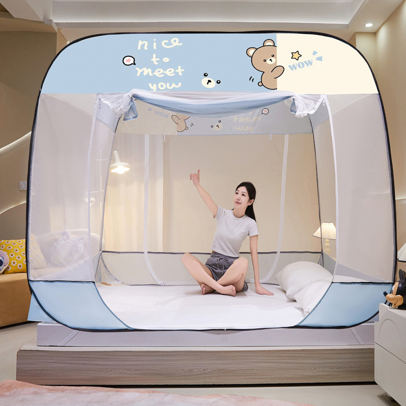 설치 무료 몽골어 유르트 모기장 3 도어 뒷바닥 전체 바닥 어린이 드롭 방지 접이식 모기장 학생 홈 텐트스토어 가기