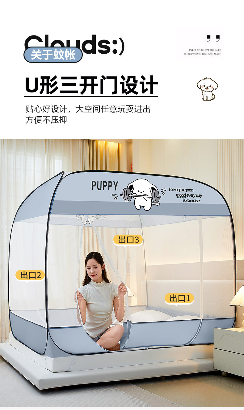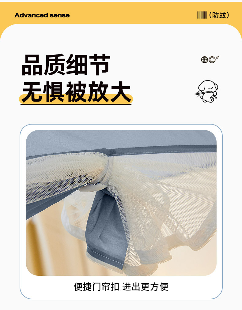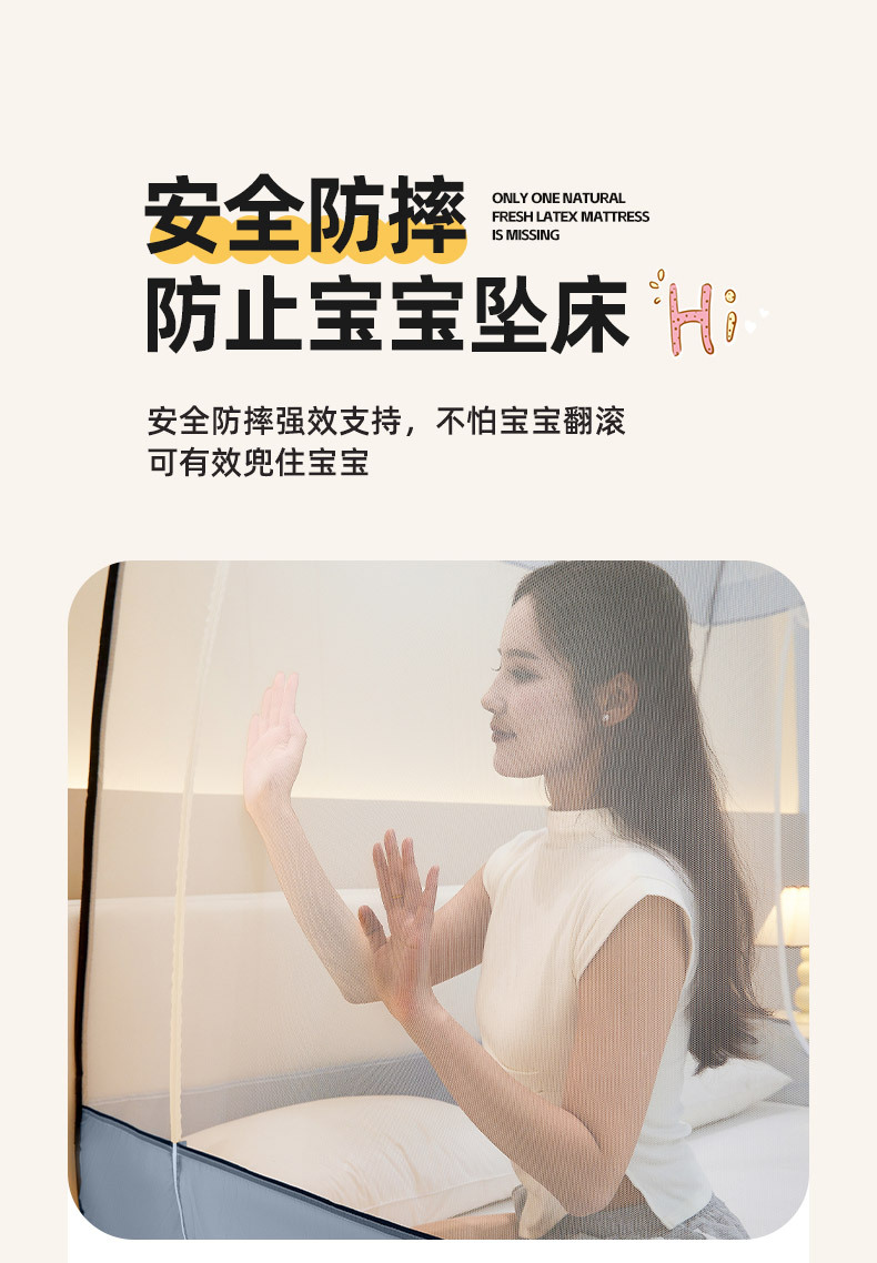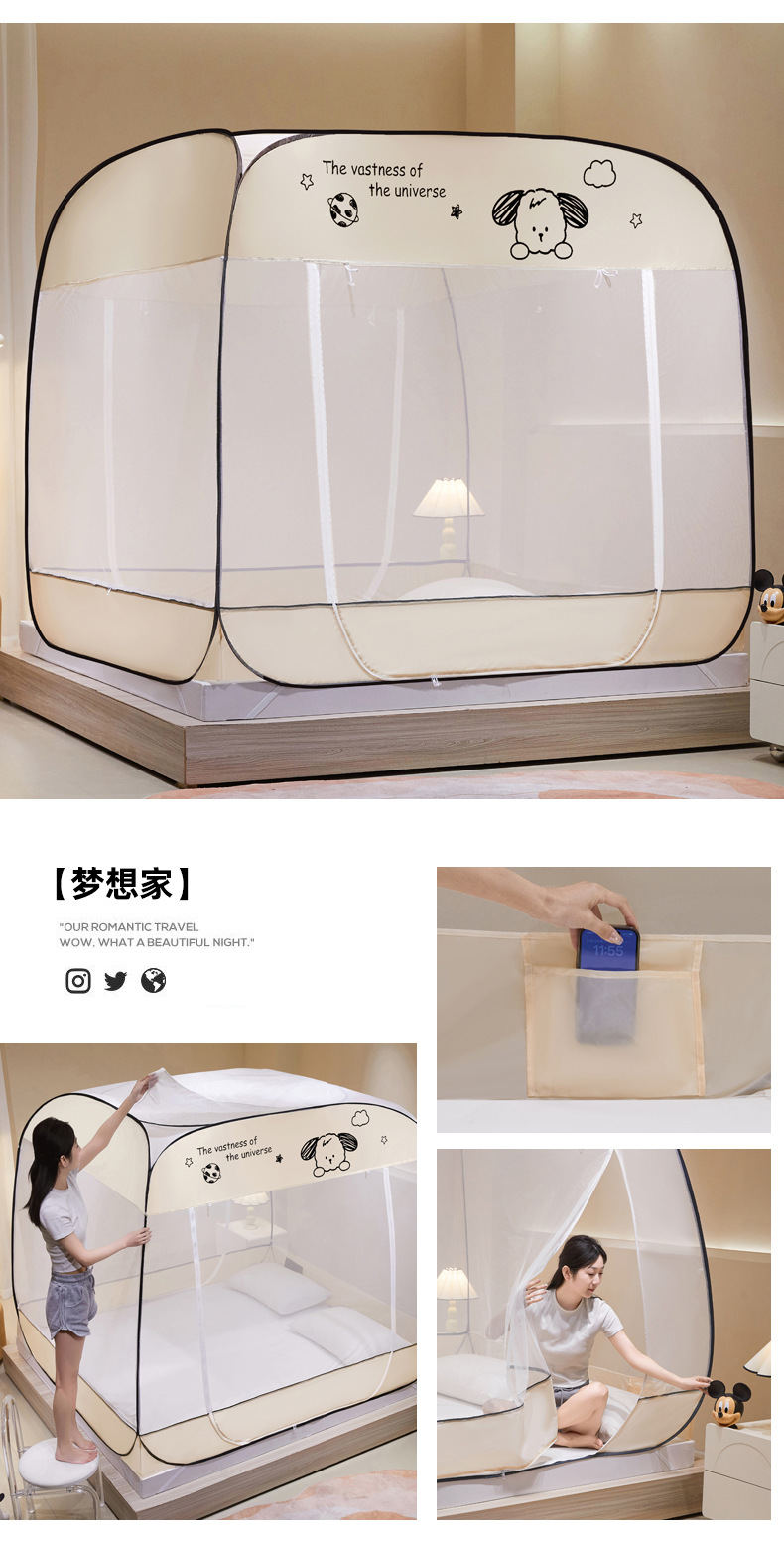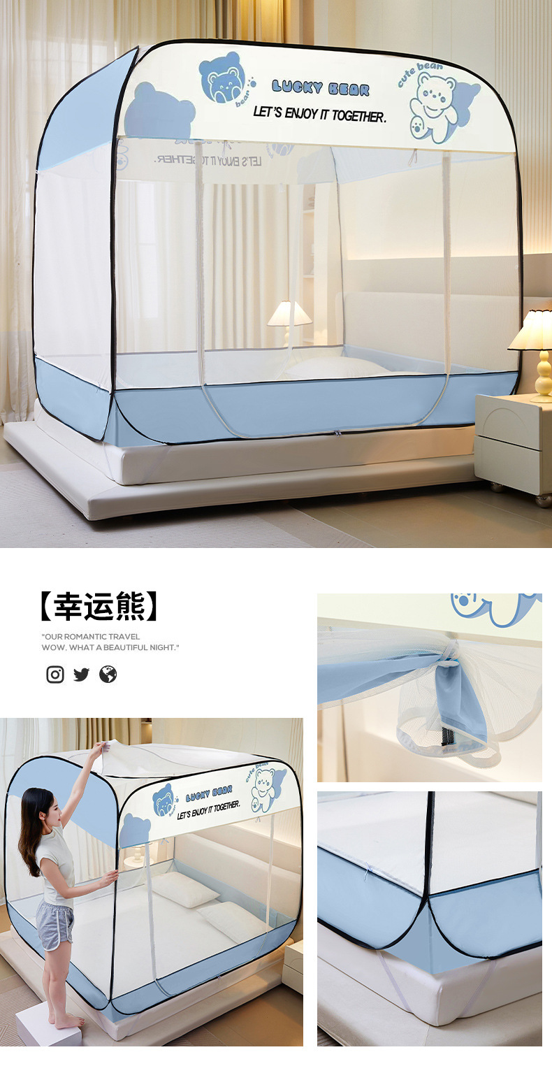 설치 무료 몽골어 유르트 모기장 3 도어 뒷바닥 전체 바닥 어린이 드롭 방지 접이식 모기장 학생 홈 텐트스토어 가기