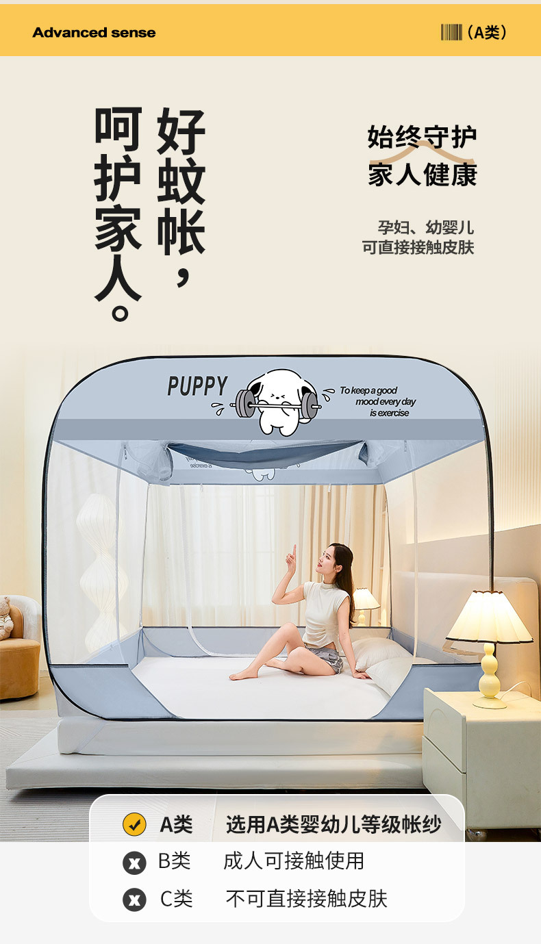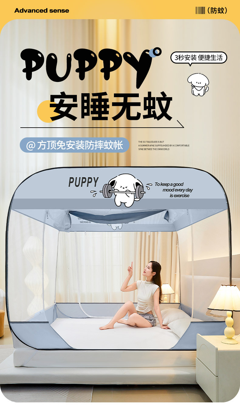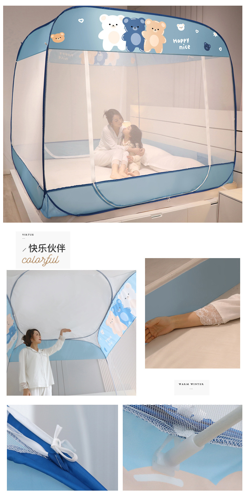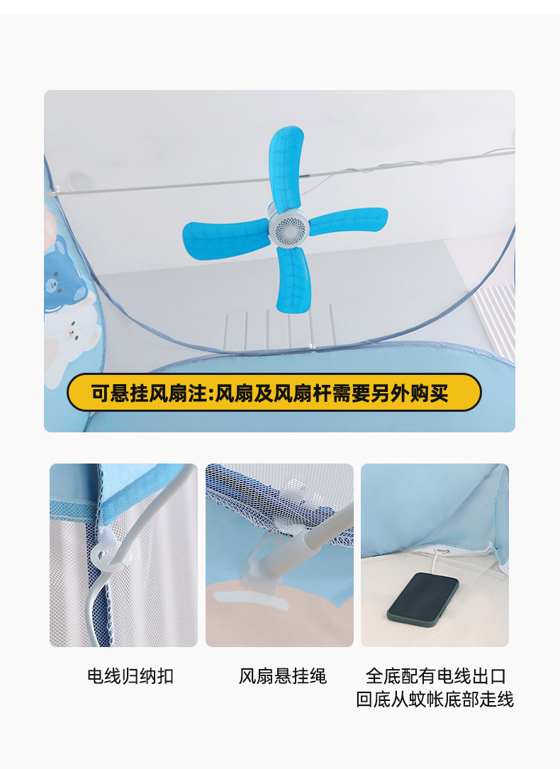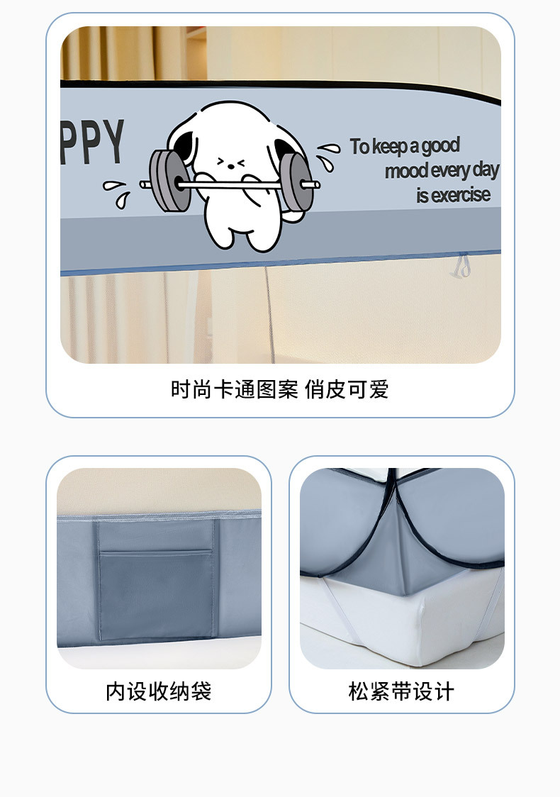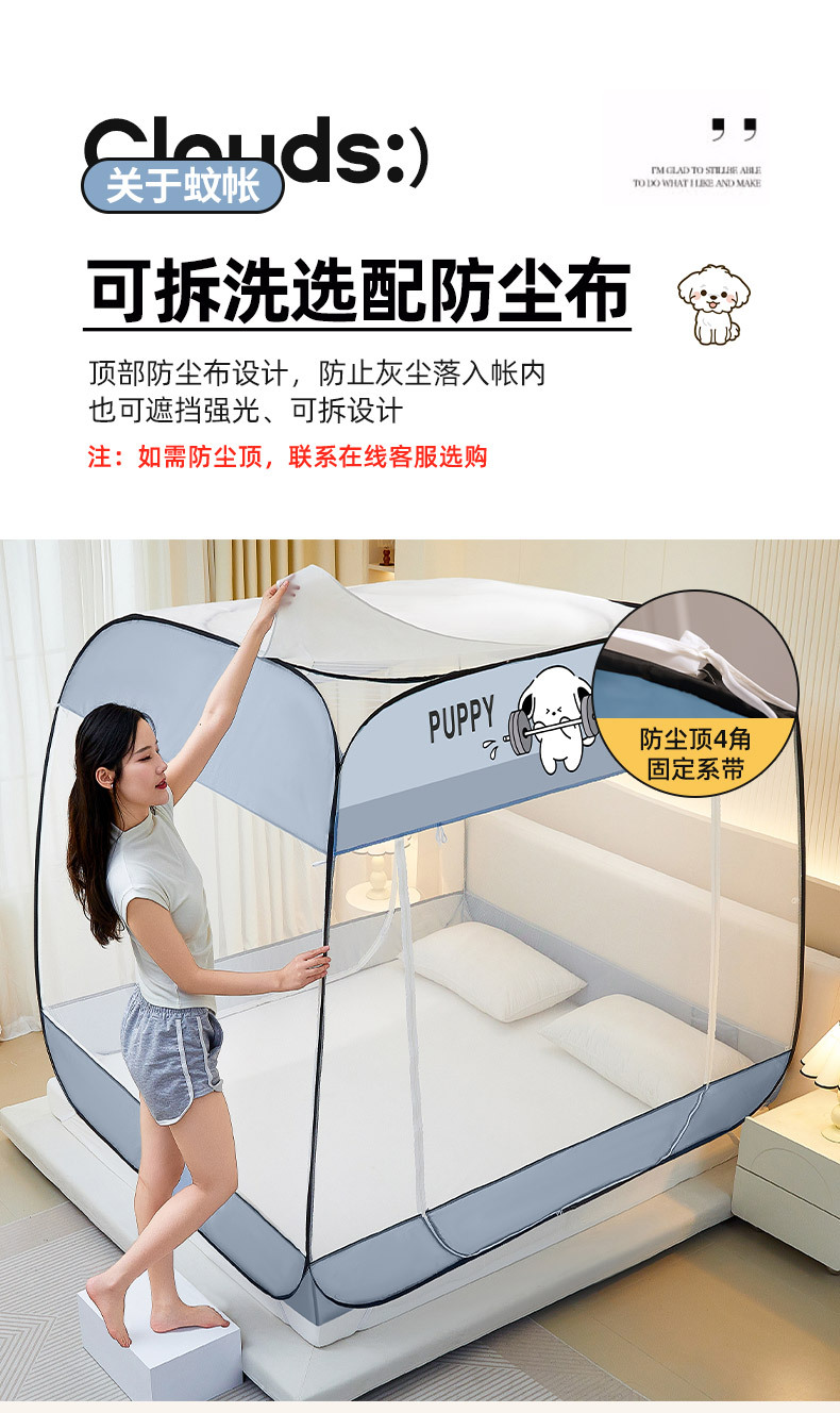 설치 무료 몽골어 유르트 모기장 3 도어 뒷바닥 전체 바닥 어린이 드롭 방지 접이식 모기장 학생 홈 텐트스토어 가기