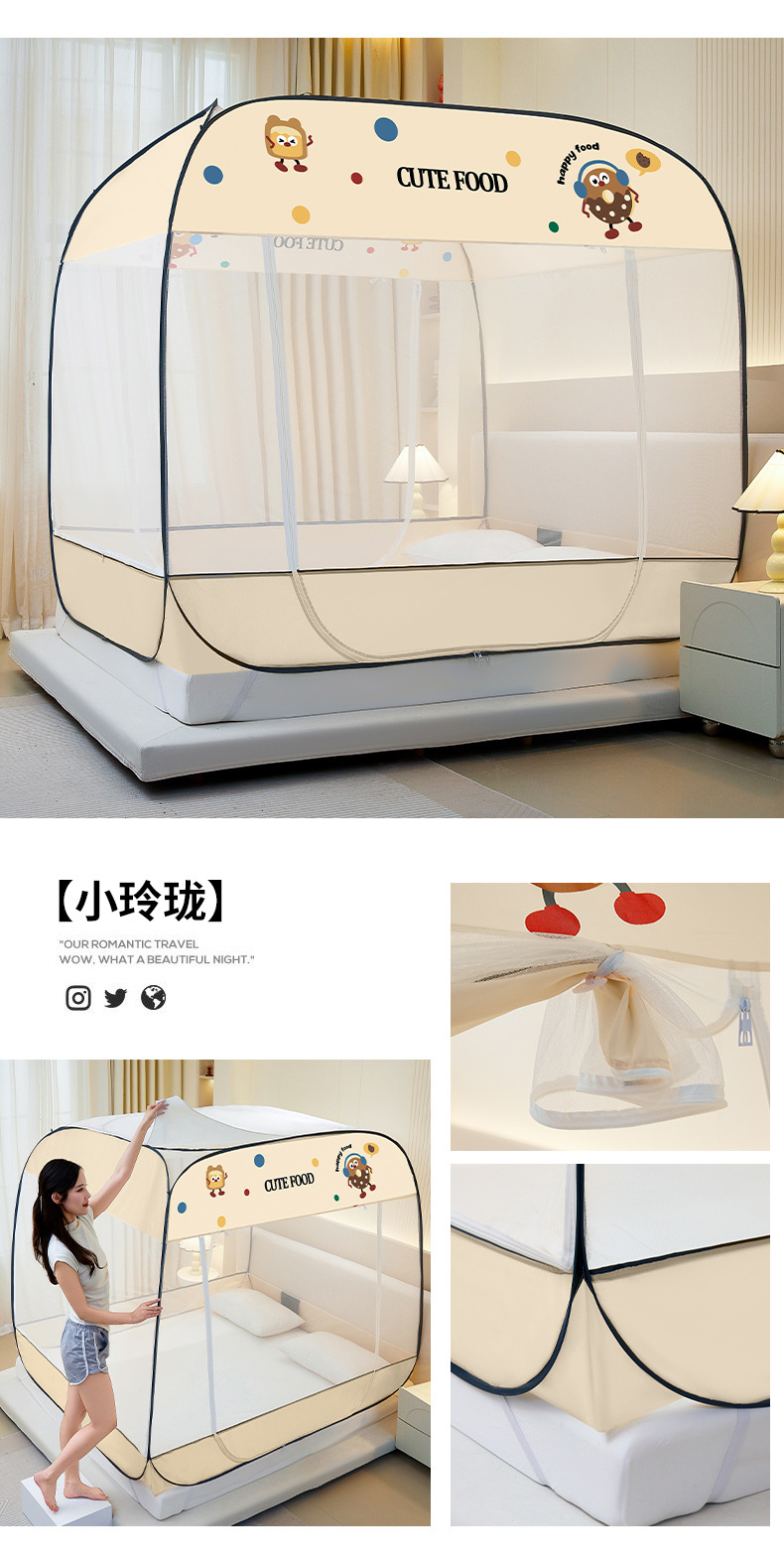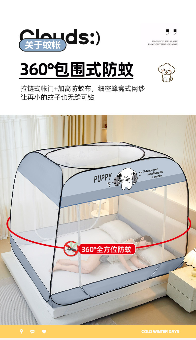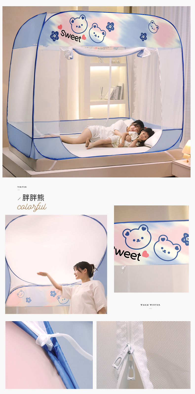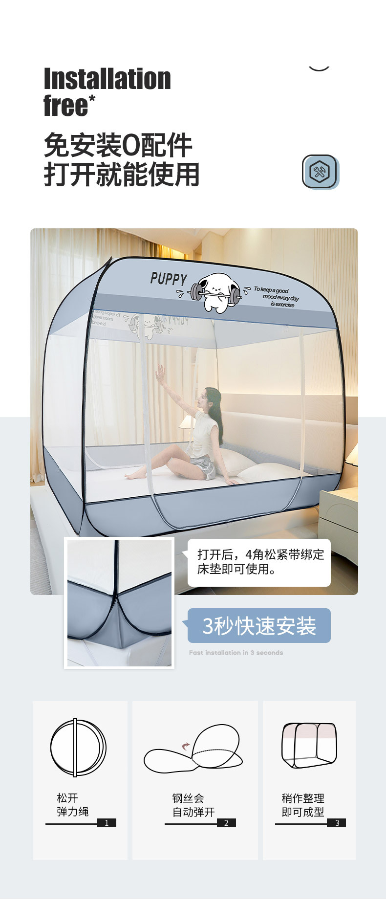 설치 무료 몽골어 유르트 모기장 3 도어 뒷바닥 전체 바닥 어린이 드롭 방지 접이식 모기장 학생 홈 텐트스토어 가기