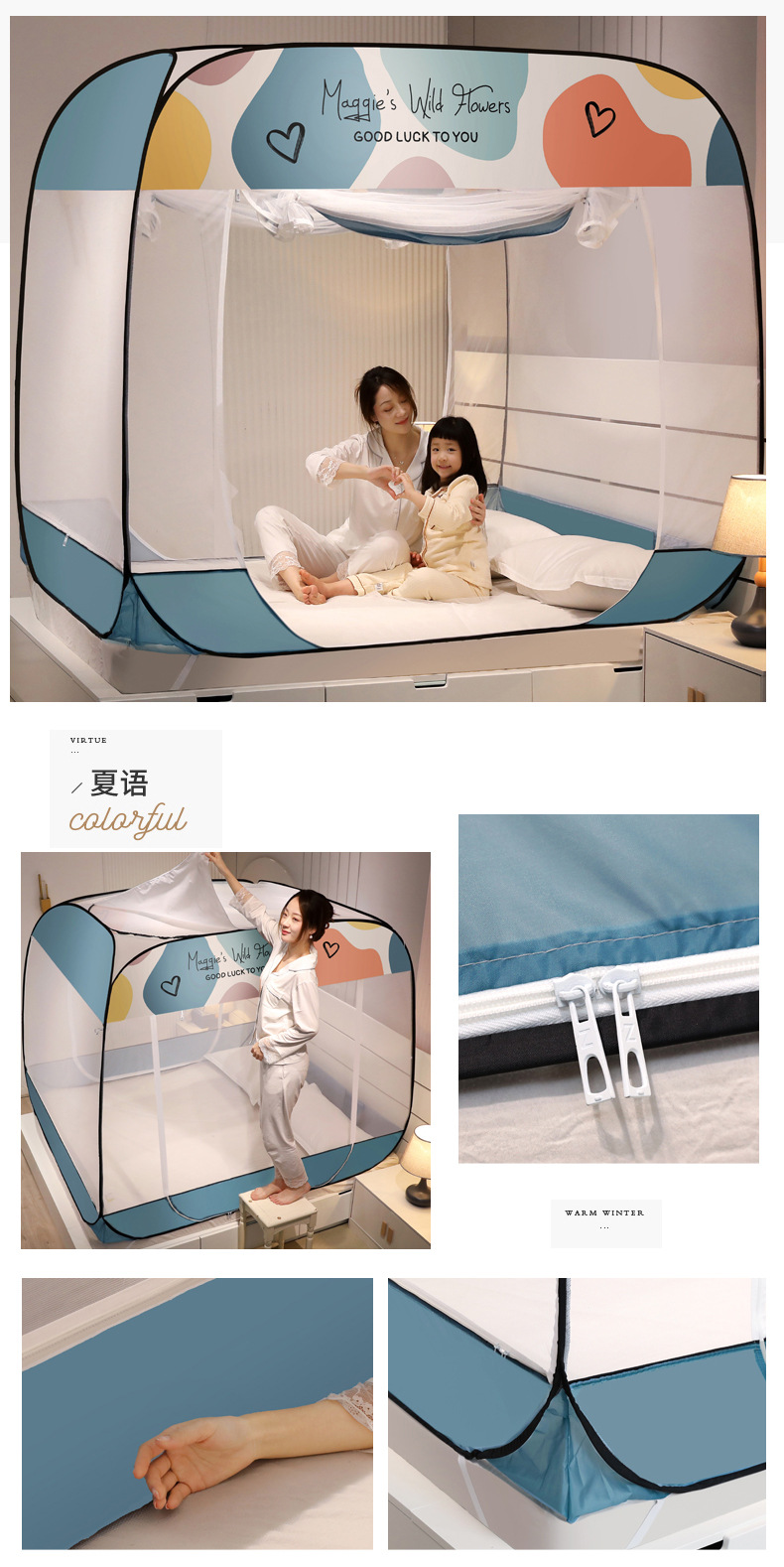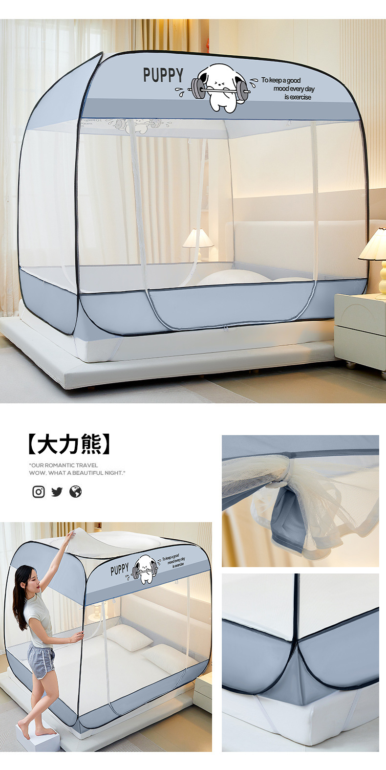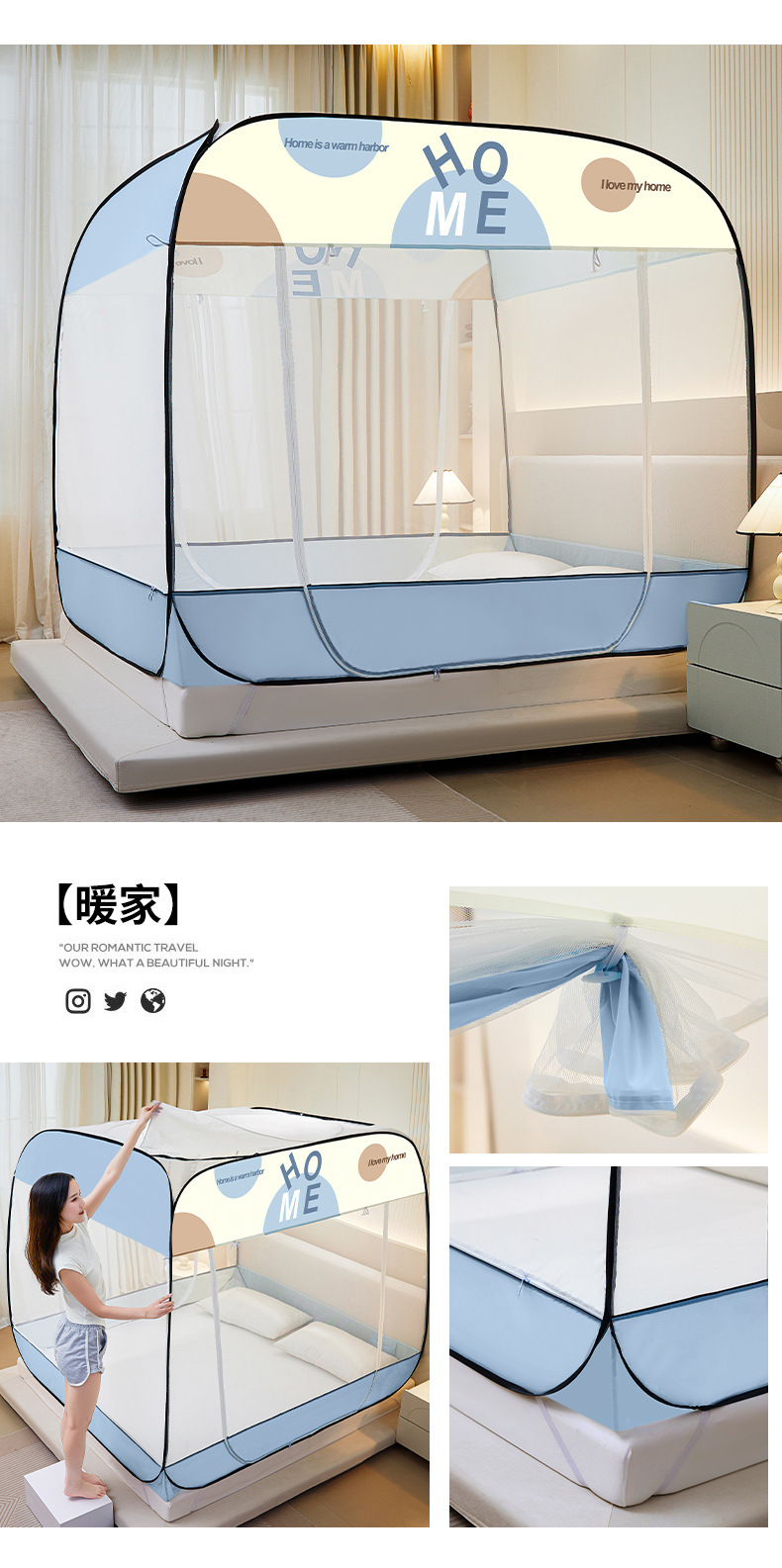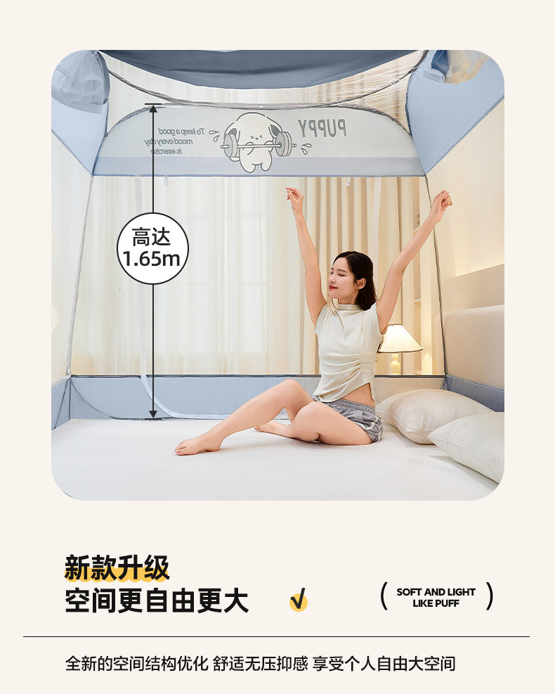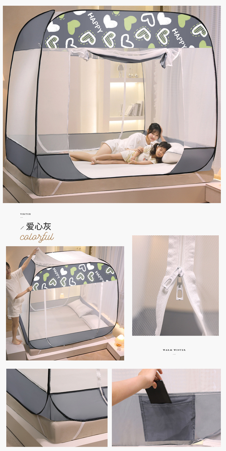 설치 무료 몽골어 유르트 모기장 3 도어 뒷바닥 전체 바닥 어린이 드롭 방지 접이식 모기장 학생 홈 텐트스토어 가기