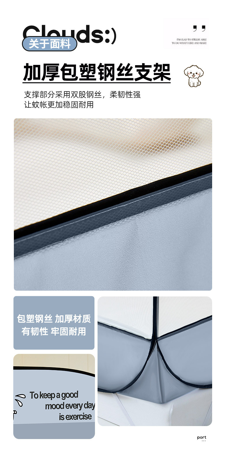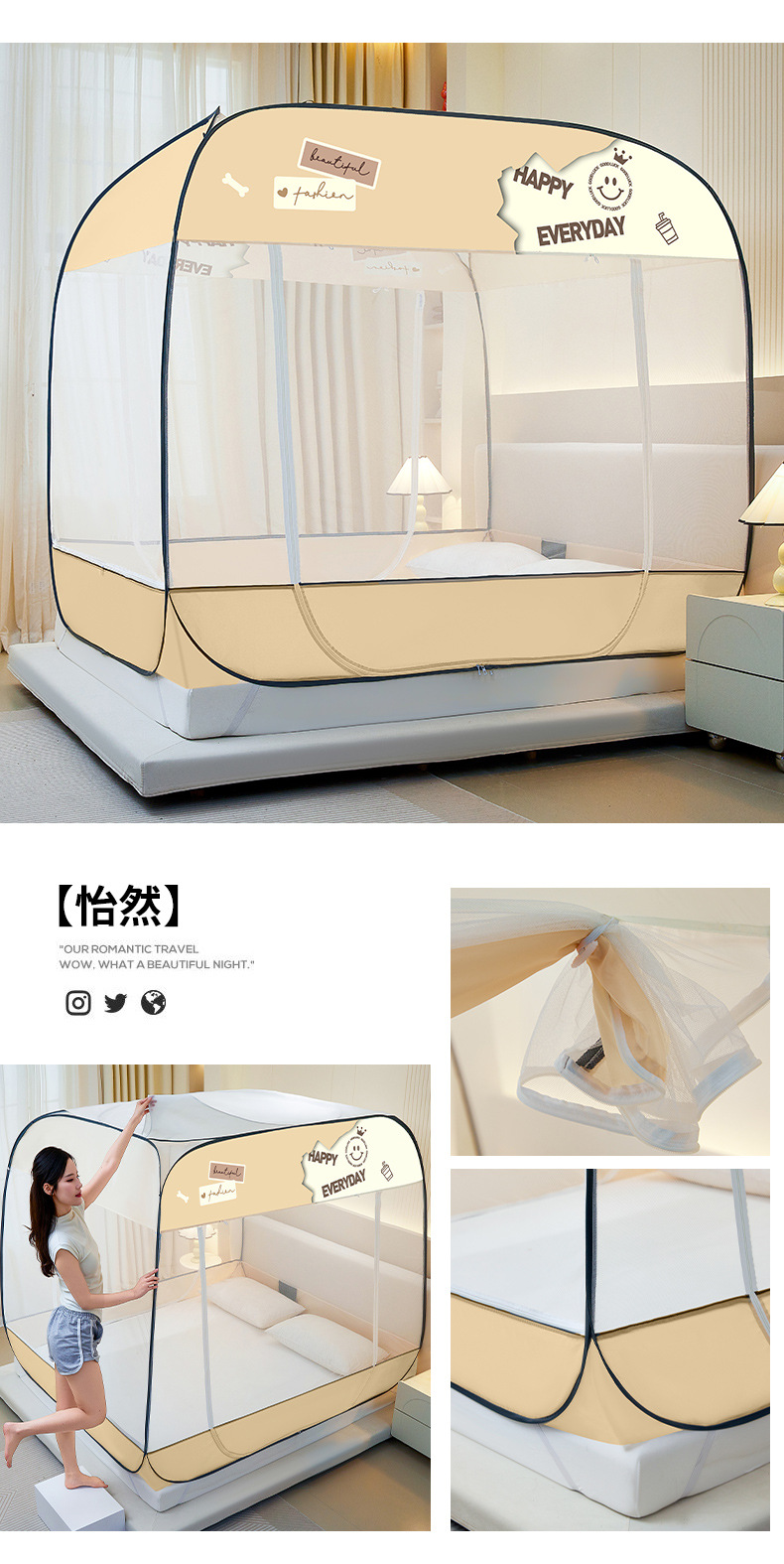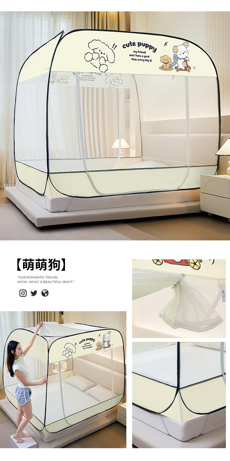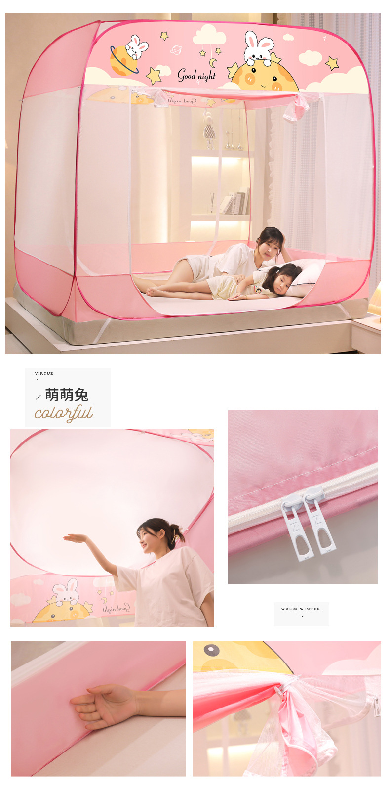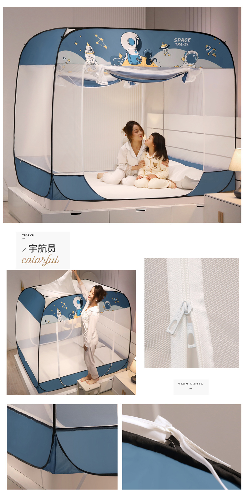 설치 무료 몽골어 유르트 모기장 3 도어 뒷바닥 전체 바닥 어린이 드롭 방지 접이식 모기장 학생 홈 텐트스토어 가기