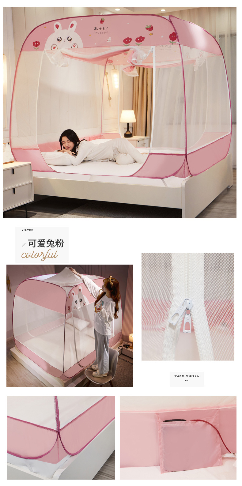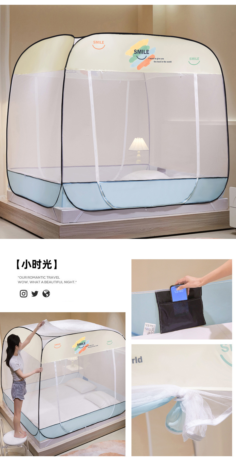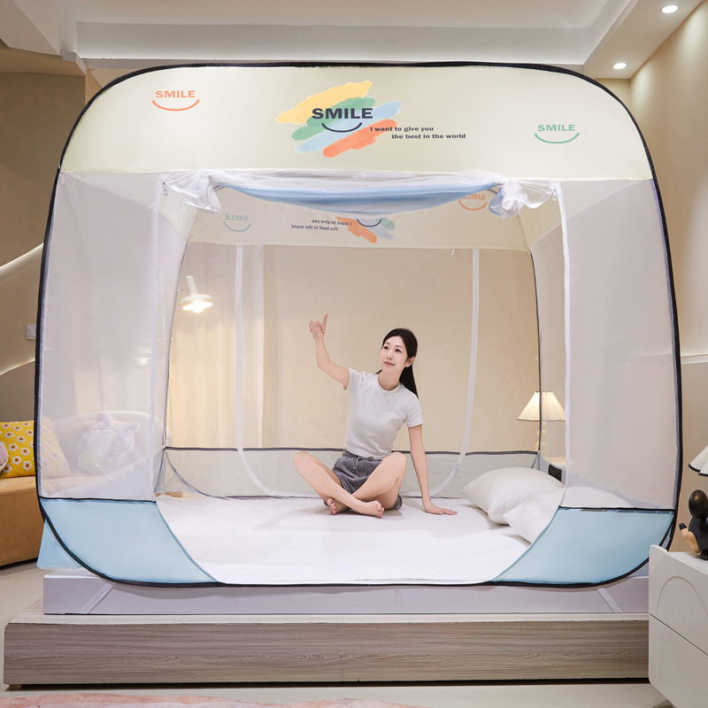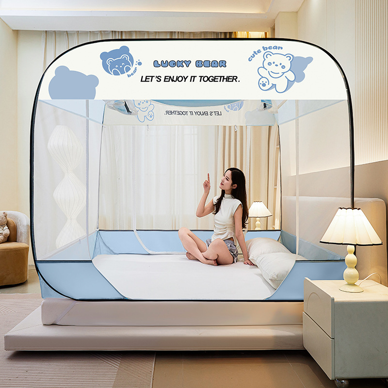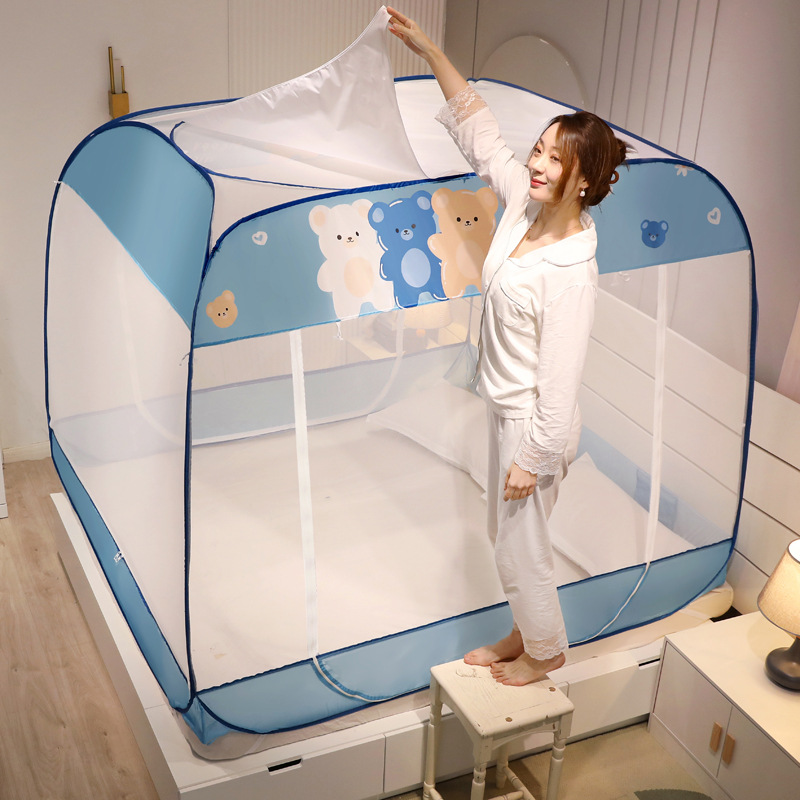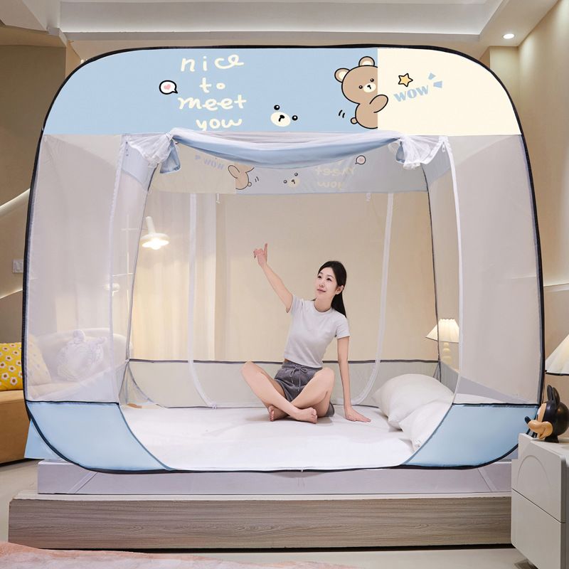 설치 무료 몽골어 유르트 모기장 3 도어 뒷바닥 전체 바닥 어린이 드롭 방지 접이식 모기장 학생 홈 텐트