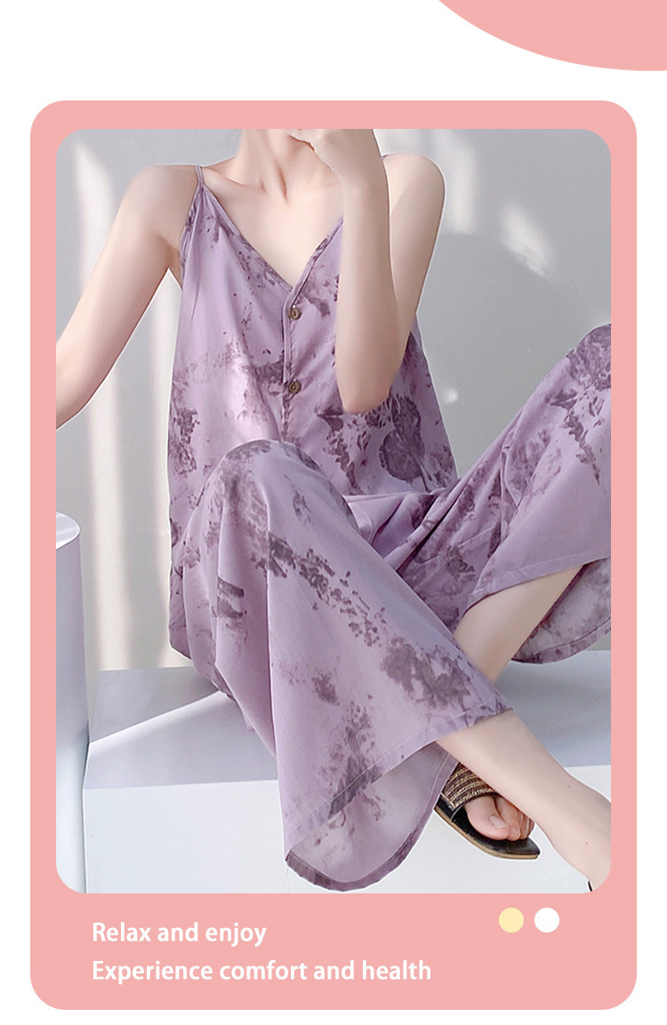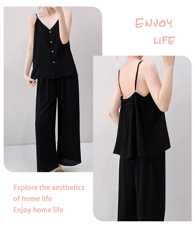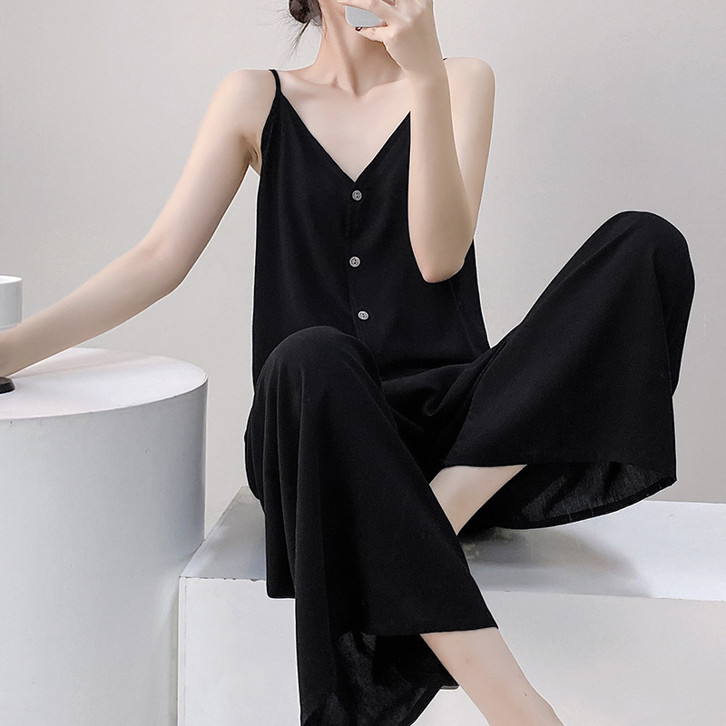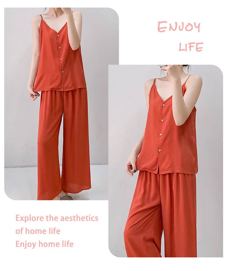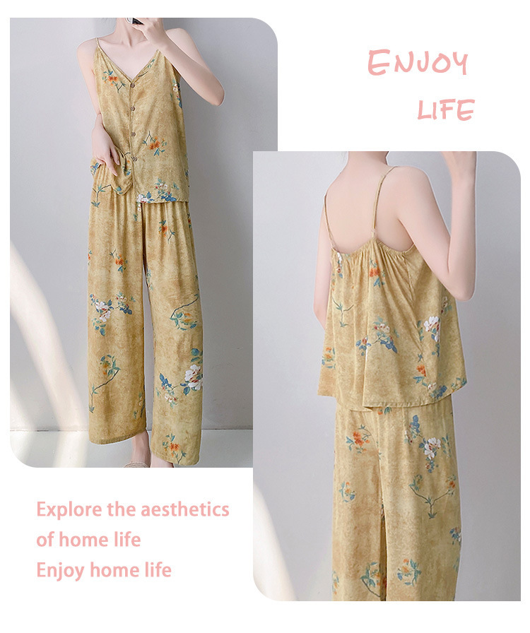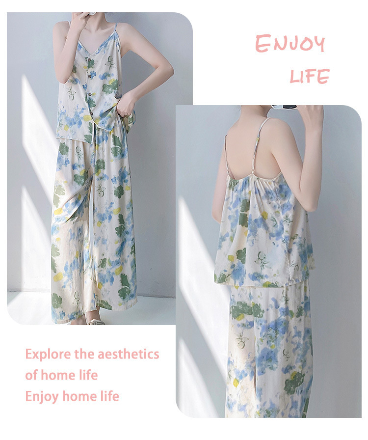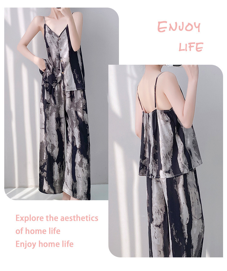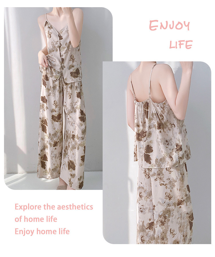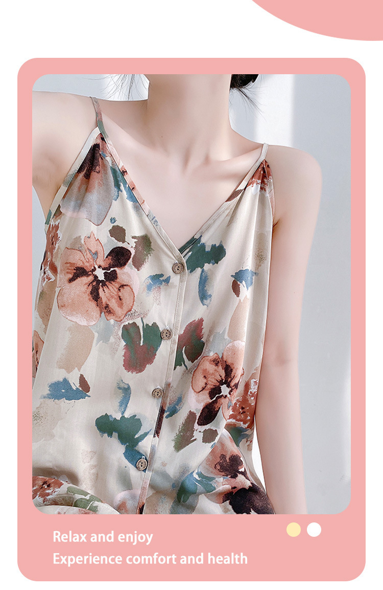가벼운 럭셔리 코튼 실크 잠옷 여성의 봄 가을과 여름 투피스 슬링 홈 옷 느슨한 간단한 단색 카디건 세트