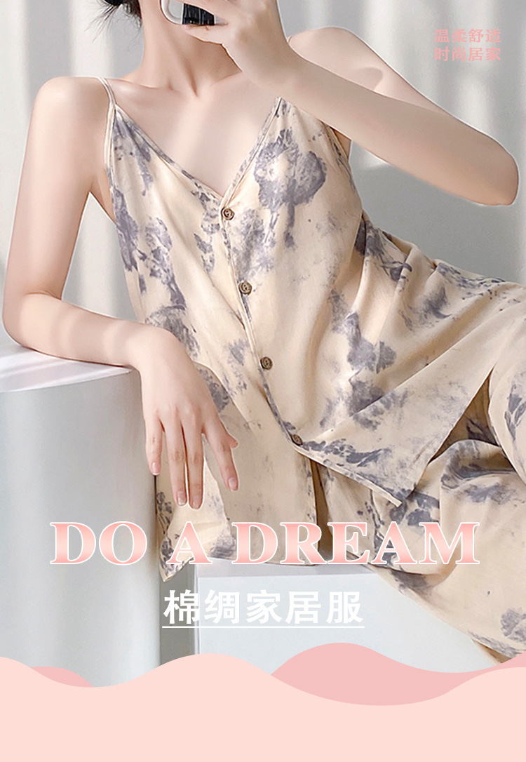가벼운 럭셔리 코튼 실크 잠옷 여성의 봄 가을과 여름 투피스 슬링 홈 옷 느슨한 간단한 단색 카디건 세트스토어 가기