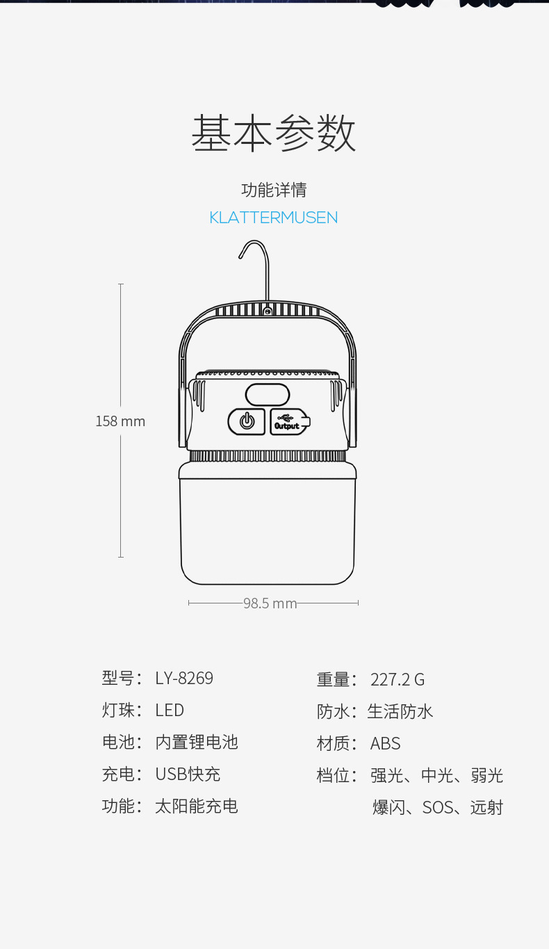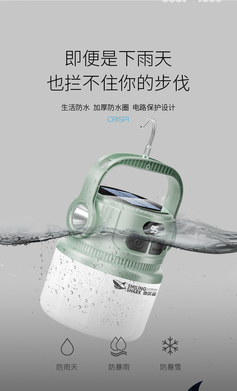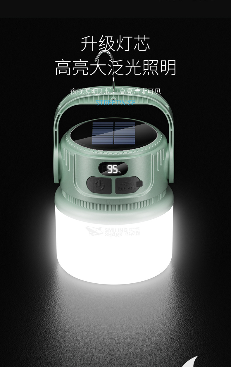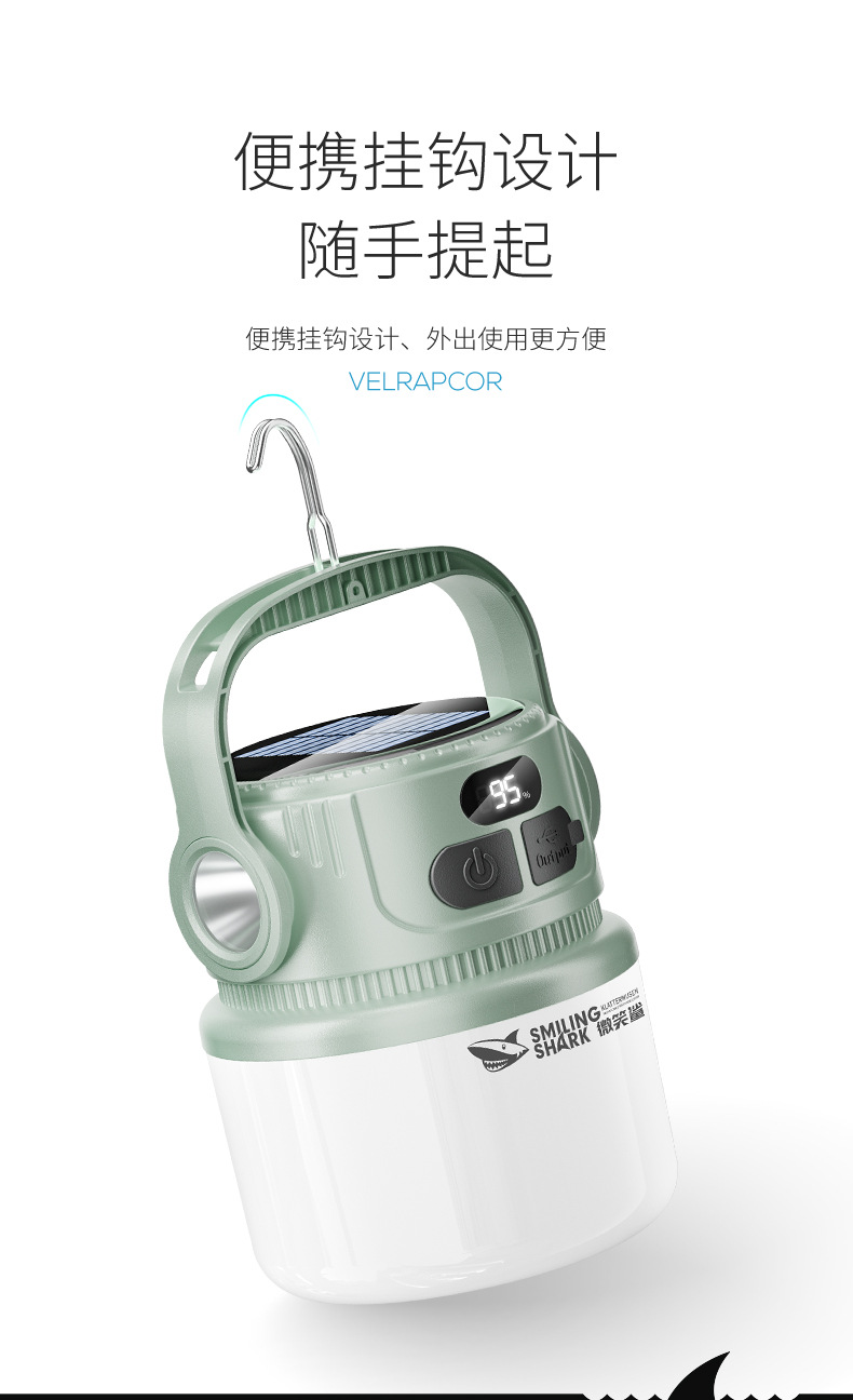 웃는 상어 야외 캠핑 전구 빛을 모으는 두 배 빛 태양 충전 캠프 빛 다기능 충전 디스플레이