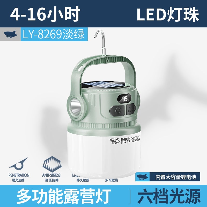 웃는 상어 야외 캠핑 전구 빛을 모으는 두 배 빛 태양 충전 캠프 빛 다기능 충전 디스플레이스토어 가기
