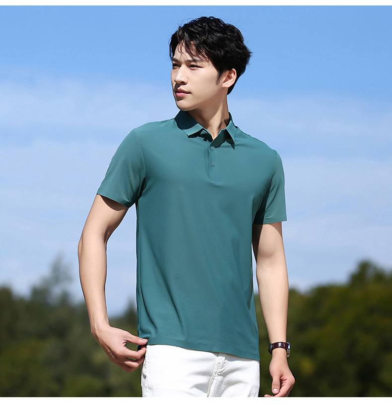 여름 남성 원활한 얼음 실크 폴로 셔츠 적층 속건성 반팔 탄성 통기성 하이 엔드 비즈니스 캐주얼 작업복