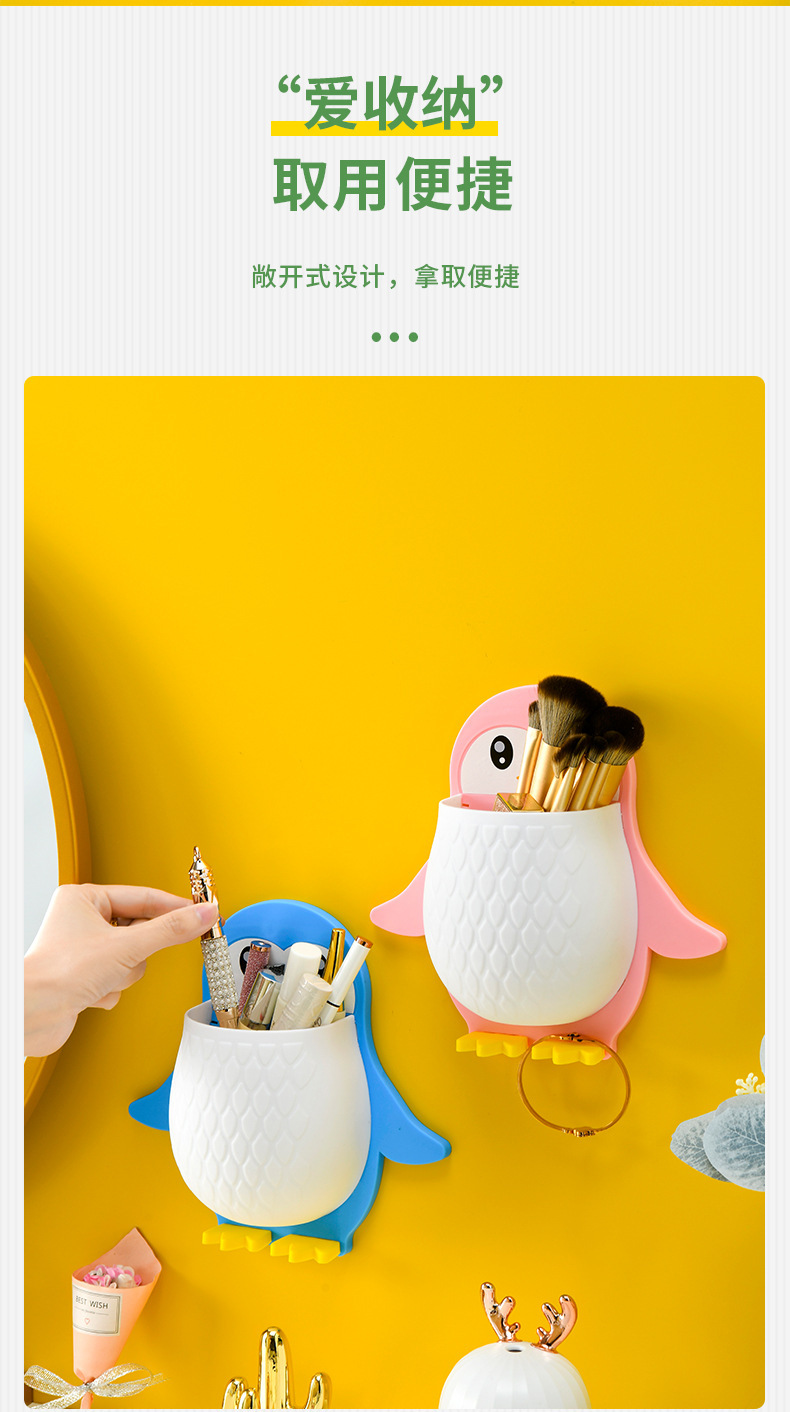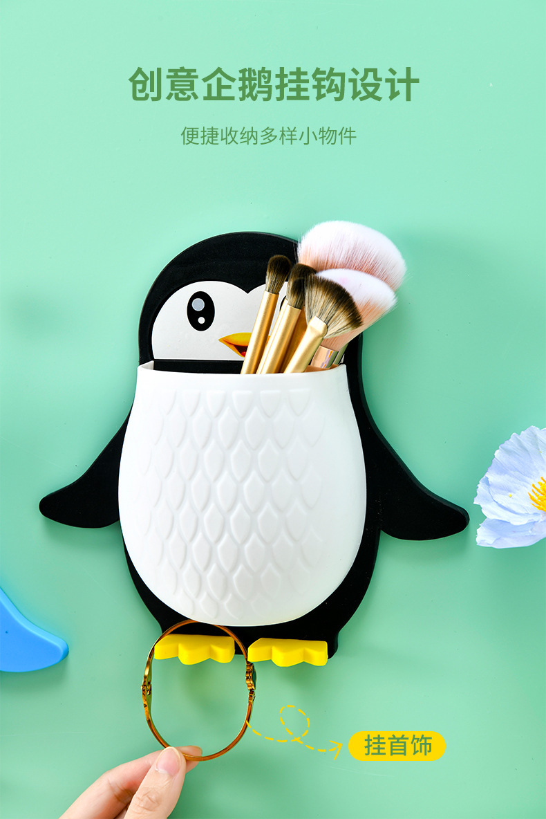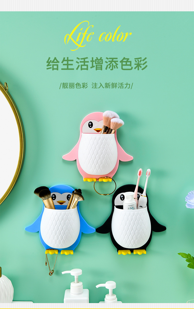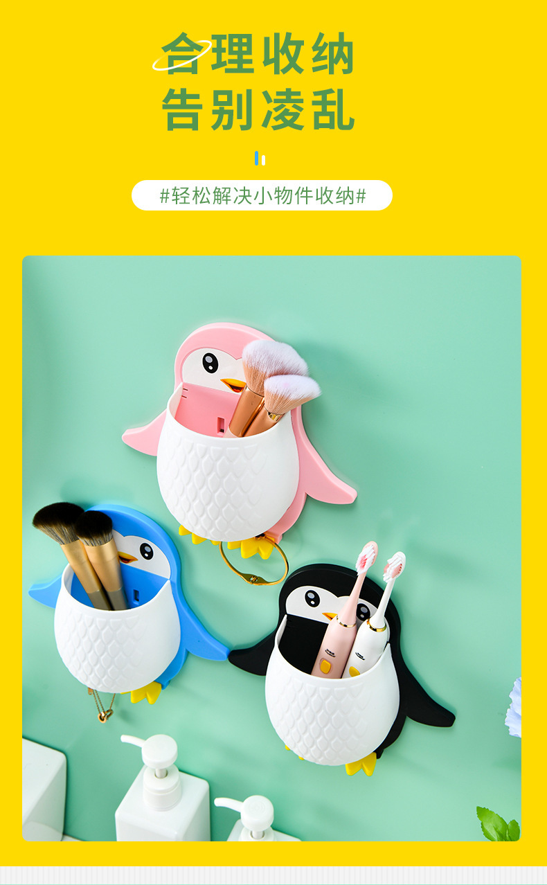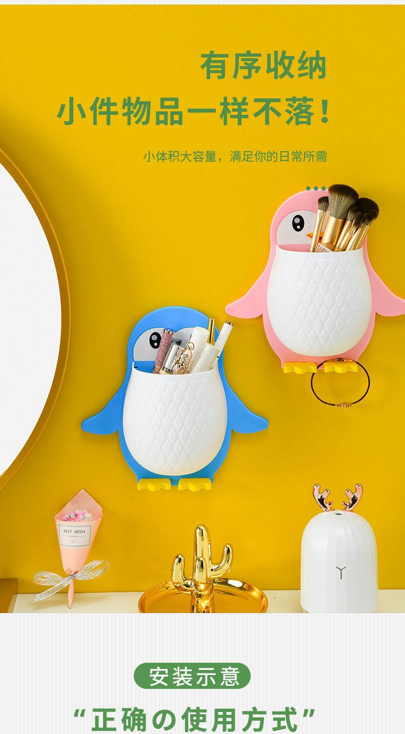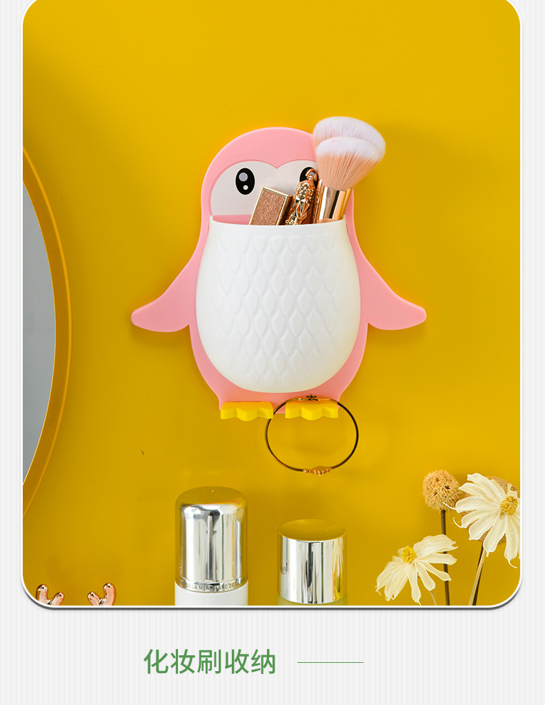 새로운 귀여운 펭귄 저장 랙 화장실 칫솔 화장품 벽 매달려 보관 기숙사 침대 보관 마무리