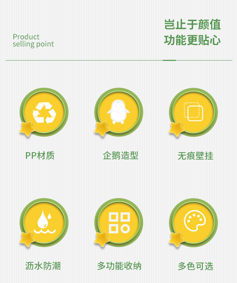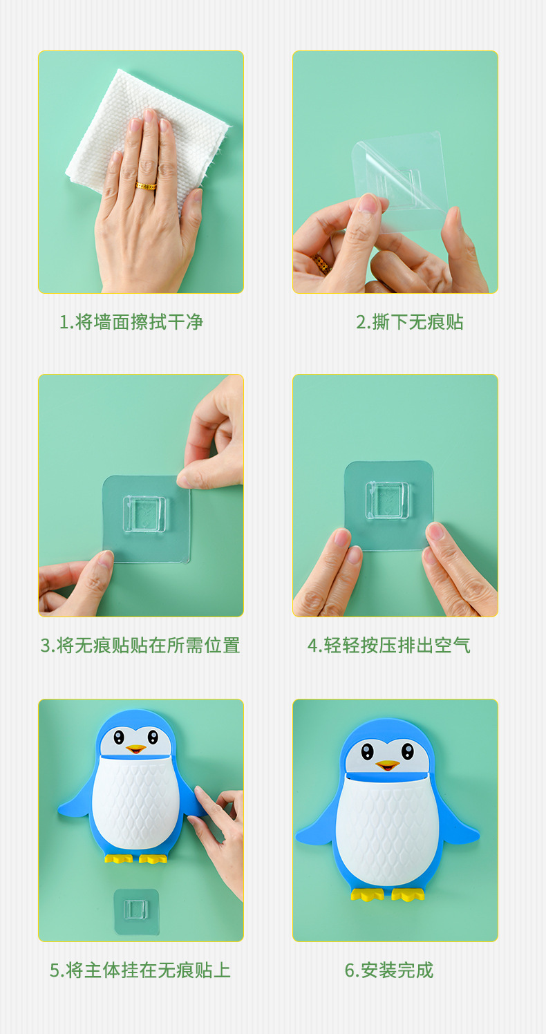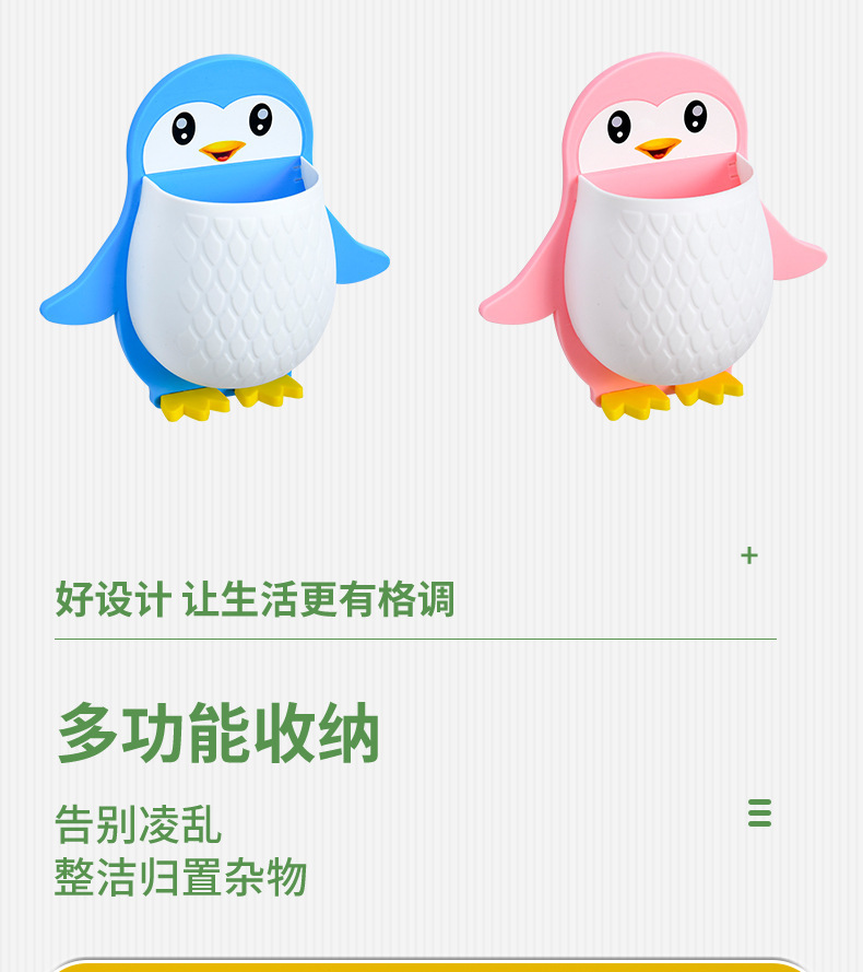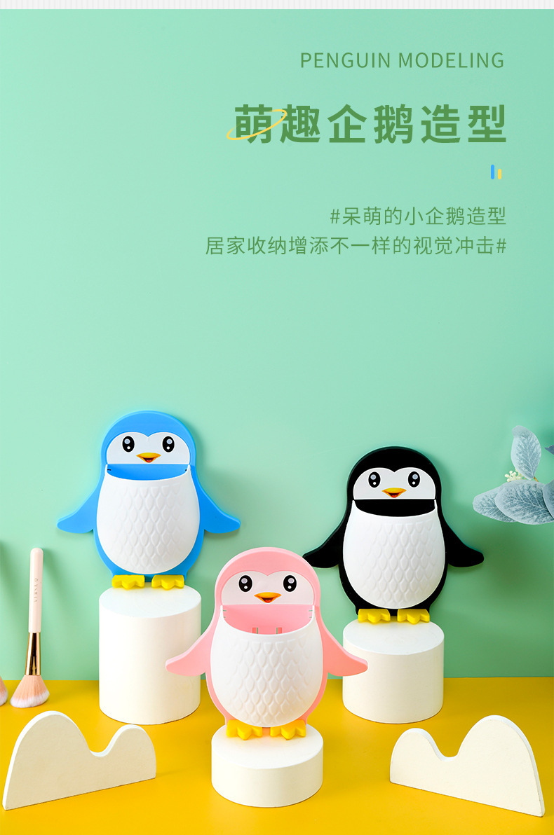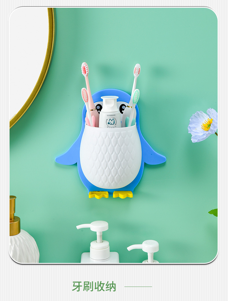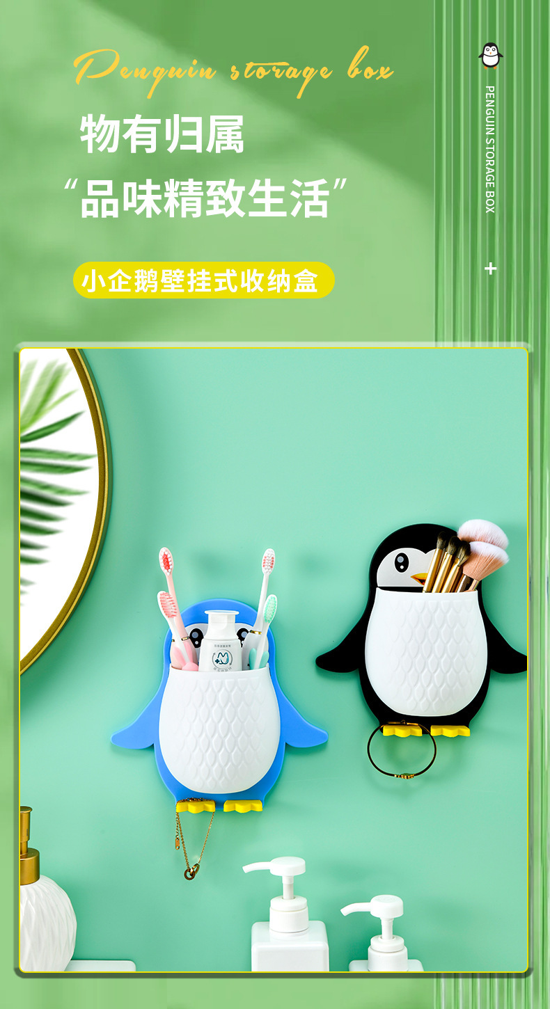 새로운 귀여운 펭귄 저장 랙 화장실 칫솔 화장품 벽 매달려 보관 기숙사 침대 보관 마무리