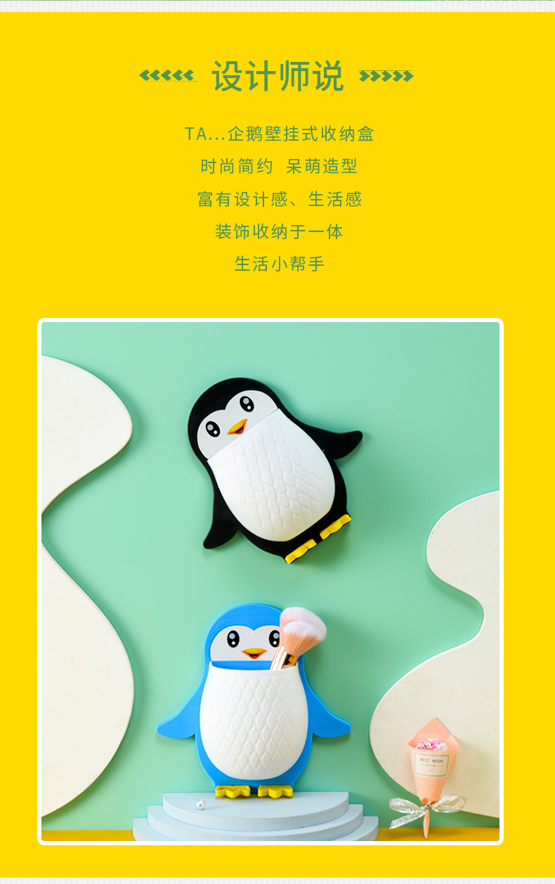 새로운 귀여운 펭귄 저장 랙 화장실 칫솔 화장품 벽 매달려 보관 기숙사 침대 보관 마무리스토어 가기