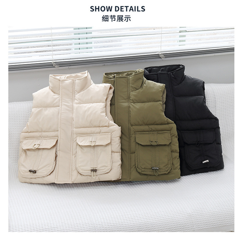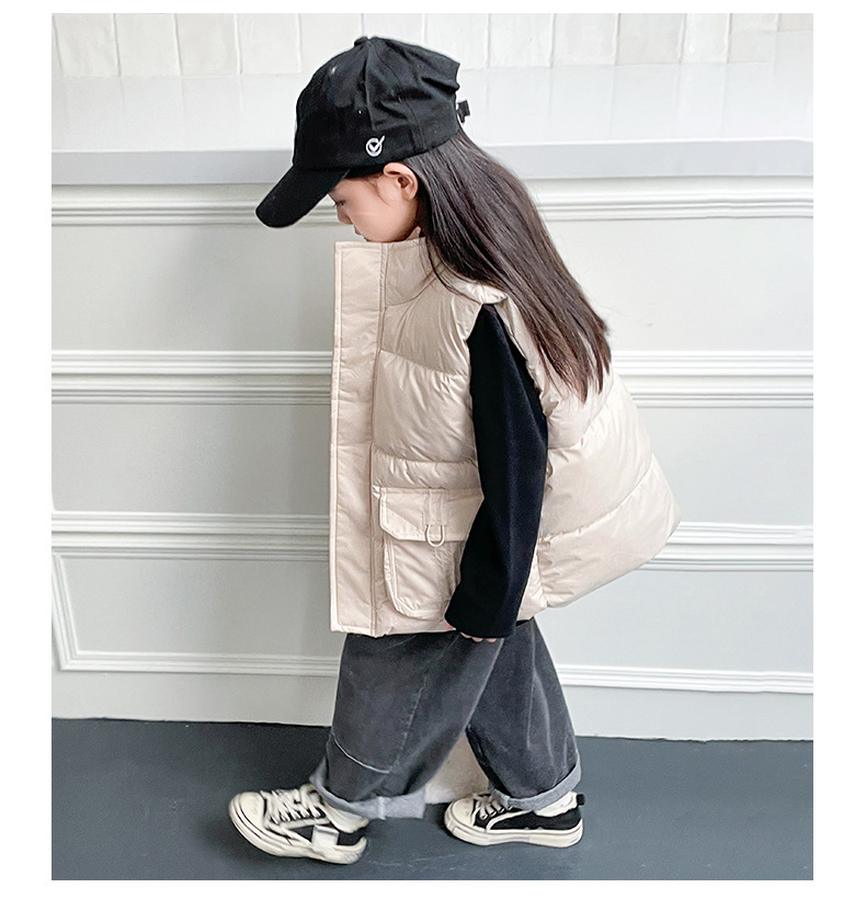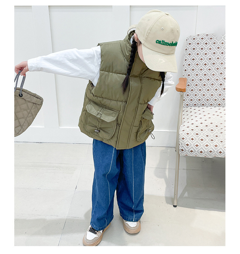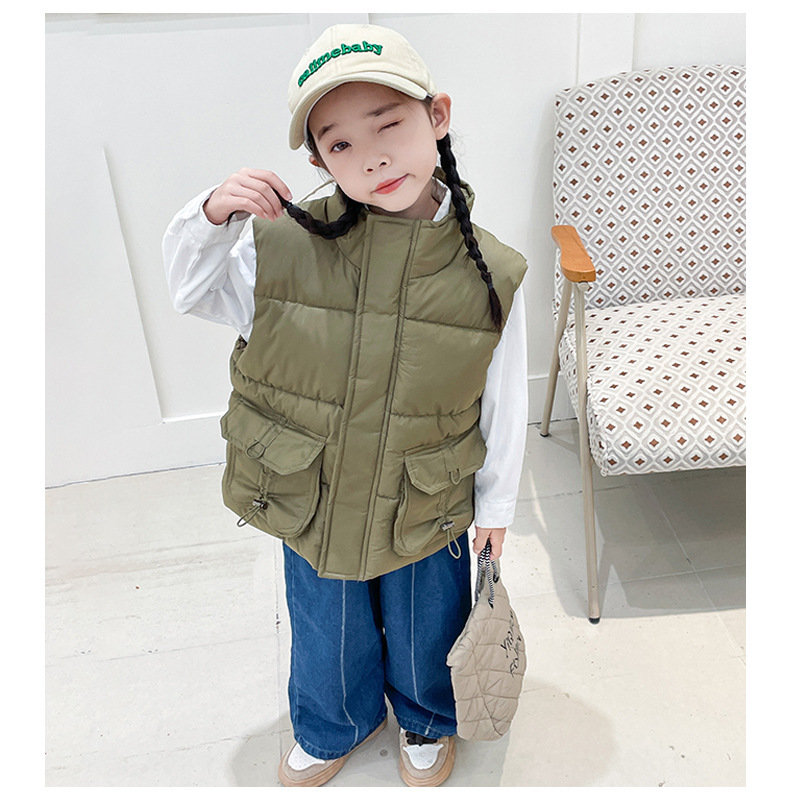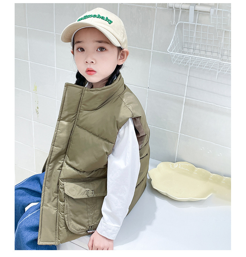 2023 년 겨울 새 어린이 아기 올매치 여자 조끼 소녀 작업복 따뜻한 두꺼운 면 조끼 유행 외복스토어 가기