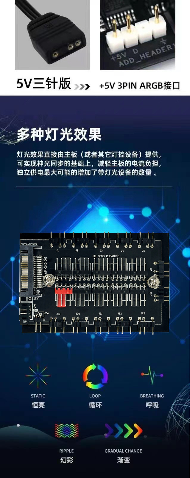 컴퓨터 ARGB 듀얼 10 방향 팬 허브 5v3 핀 pwm 무선 원격 제어 SATA 전원 공급 장치 섀시 컨트롤러스토어 가기