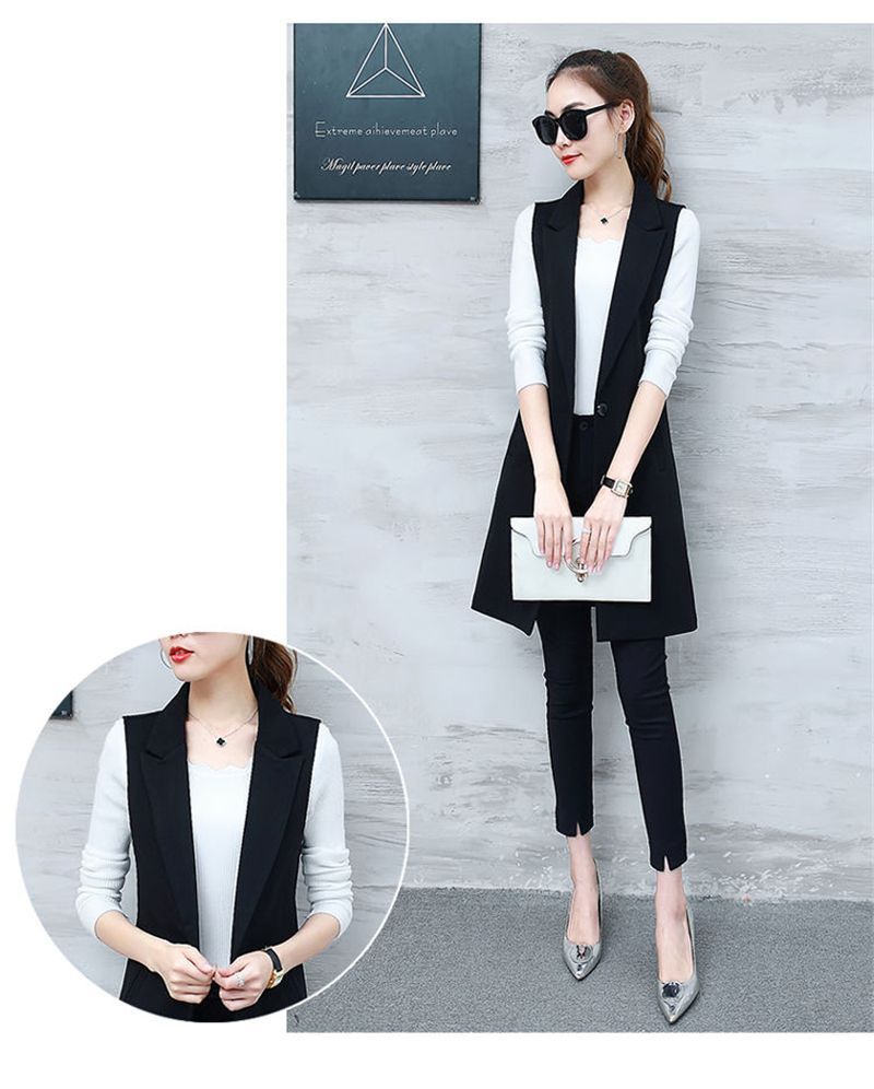 2025 봄 가을 패션 여성 조끼 중간 길이 세트 조끼 슬림핏 한국 스타일 민소매 조끼