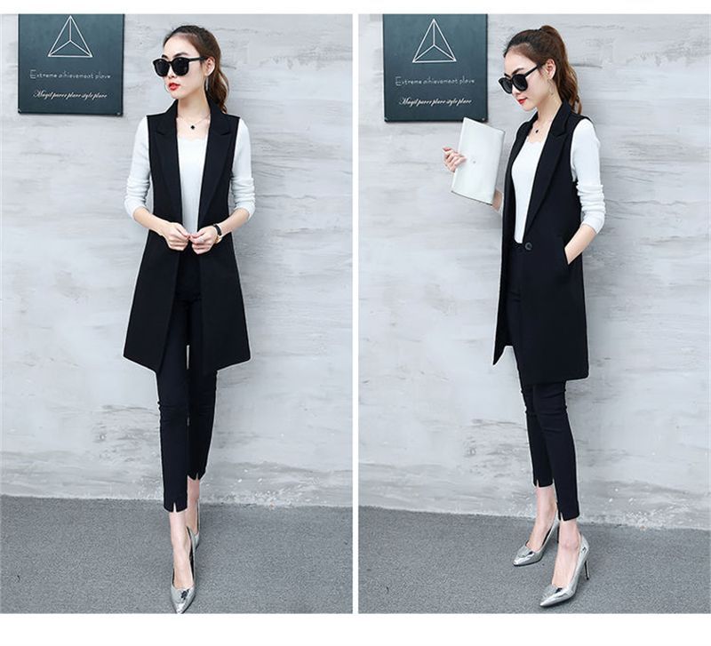 2025 봄 가을 패션 여성 조끼 중간 길이 세트 조끼 슬림핏 한국 스타일 민소매 조끼스토어 가기