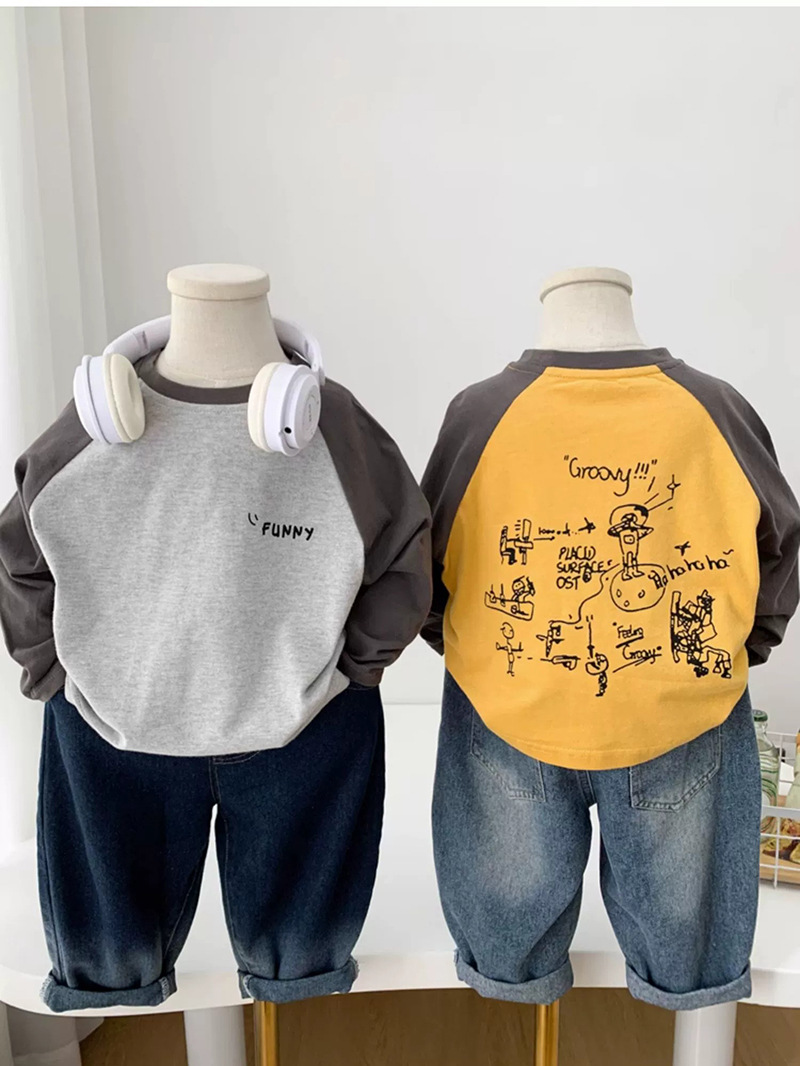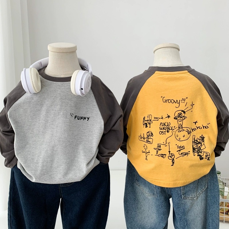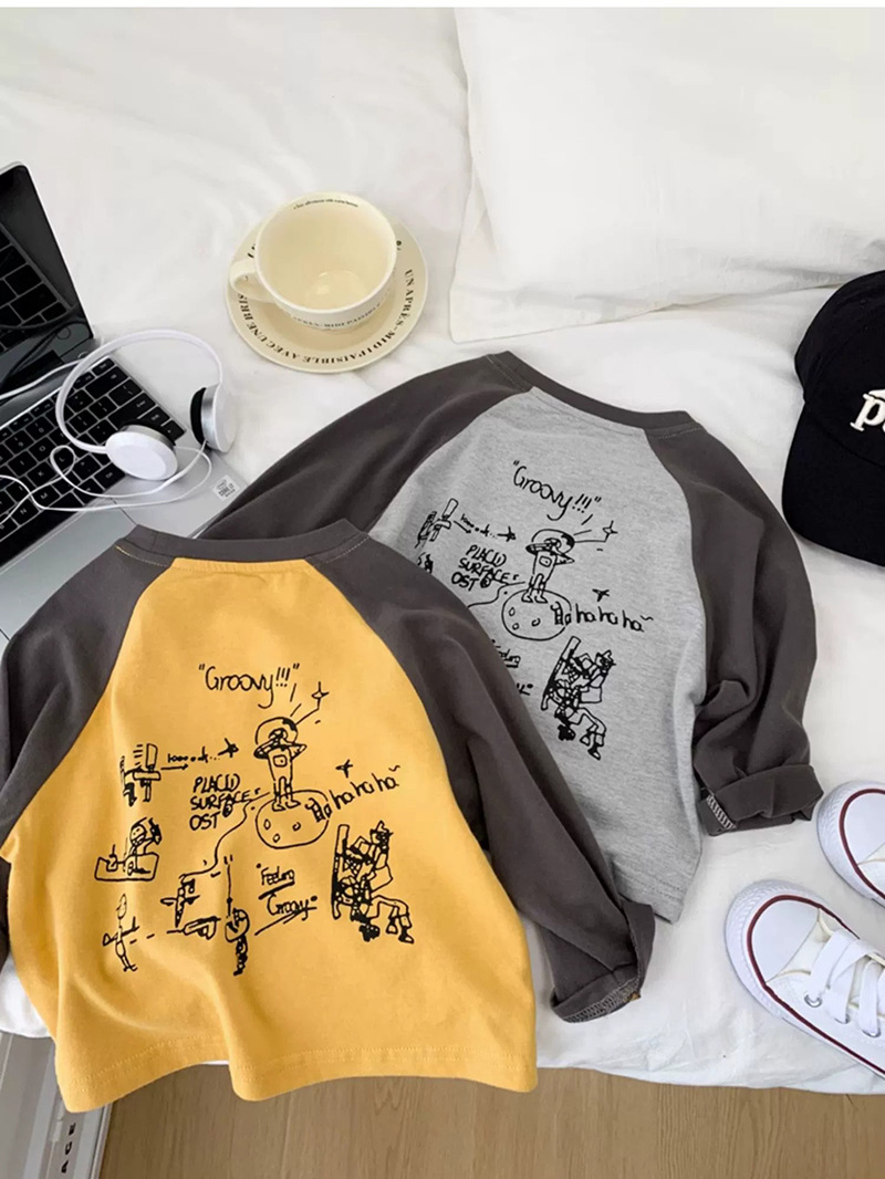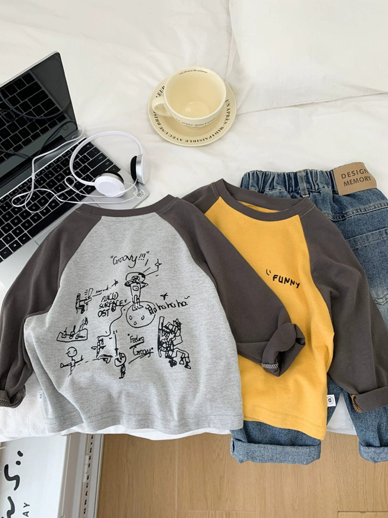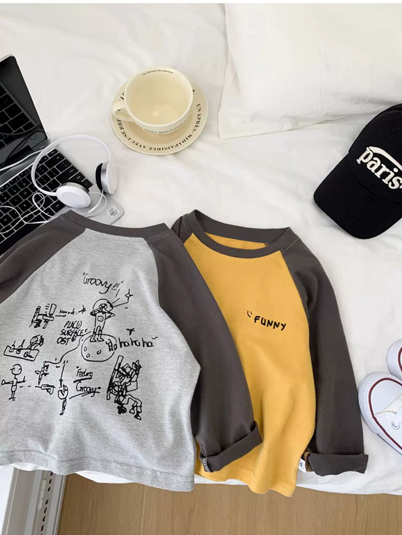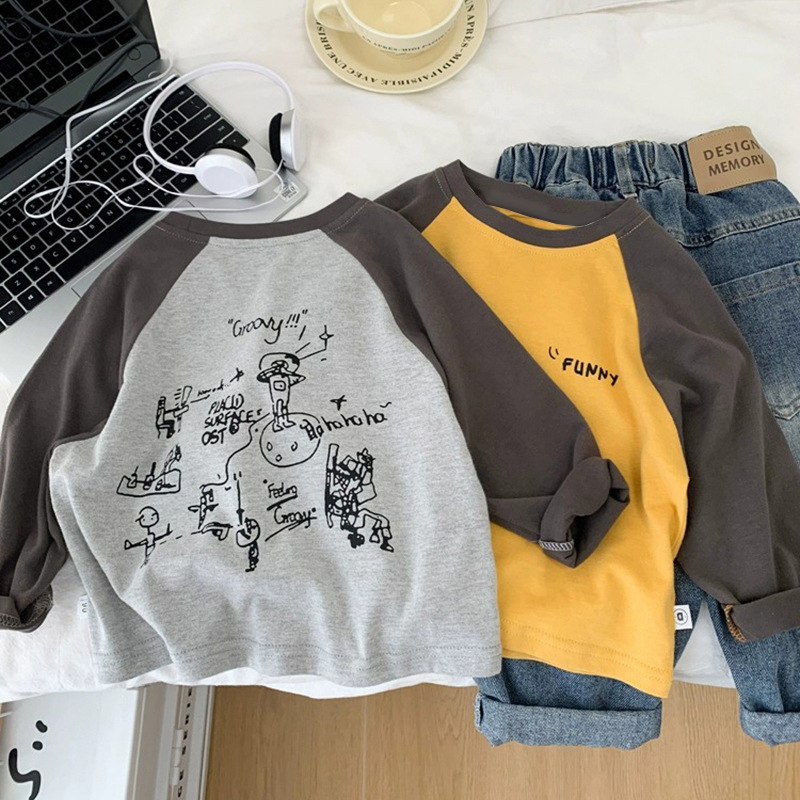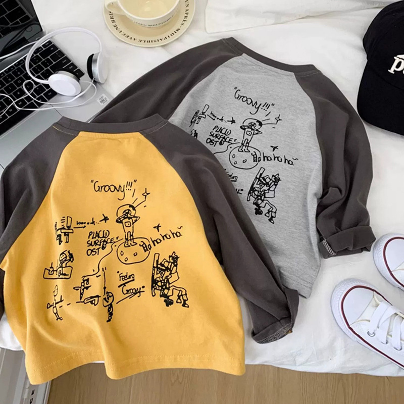 면 어린이 티셔츠 긴 소매 옷 2025 새로운 만화 캐주얼 올 매치 어린이 착용베이스 셔츠 봄과 가을스토어 가기
