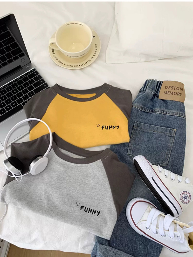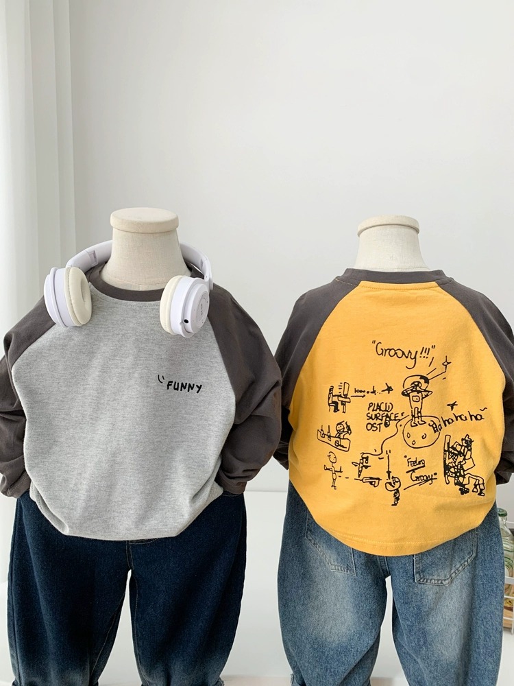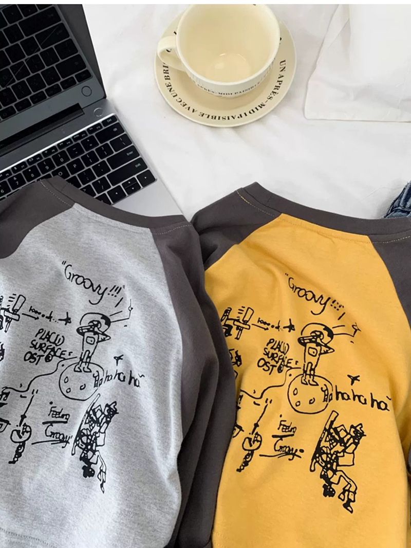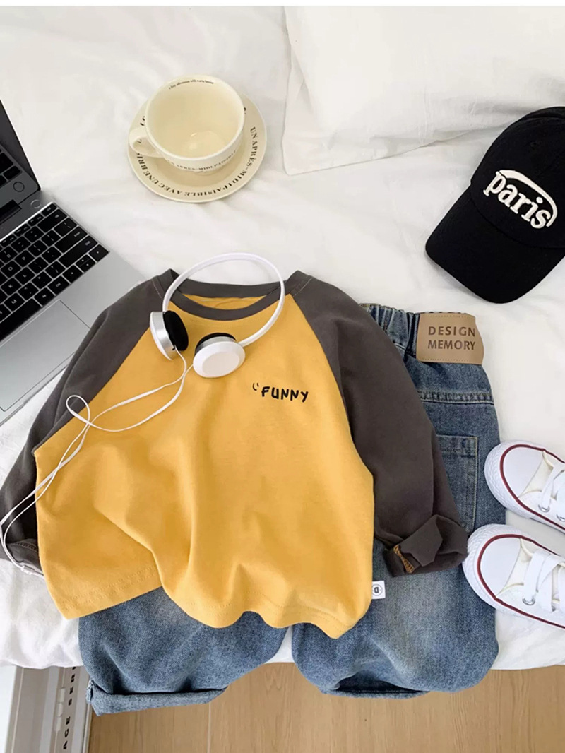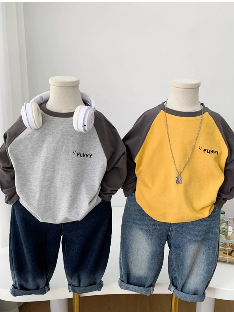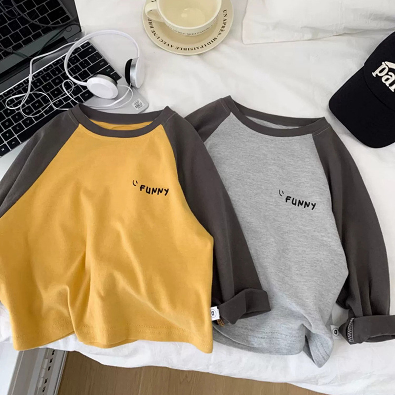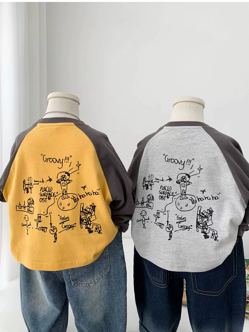 면 어린이 티셔츠 긴 소매 옷 2025 새로운 만화 캐주얼 올 매치 어린이 착용베이스 셔츠 봄과 가을스토어 가기