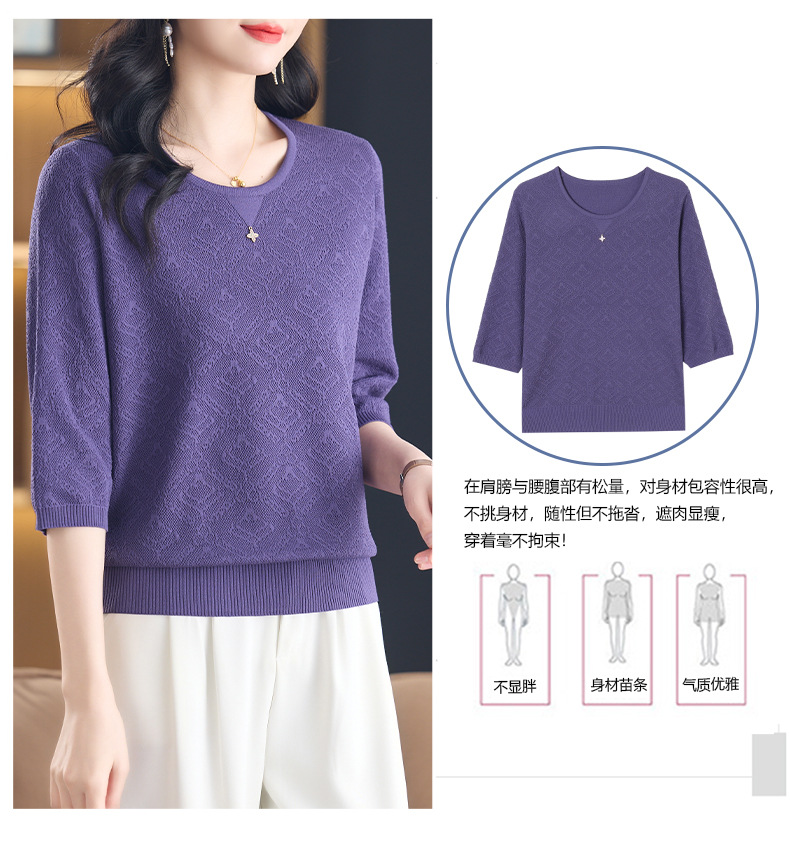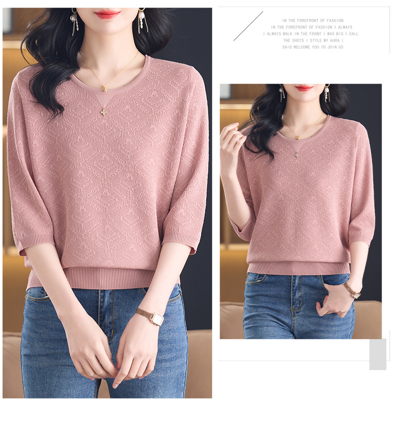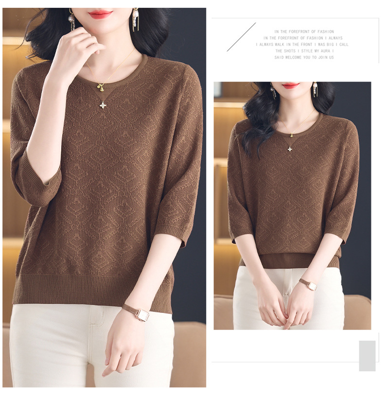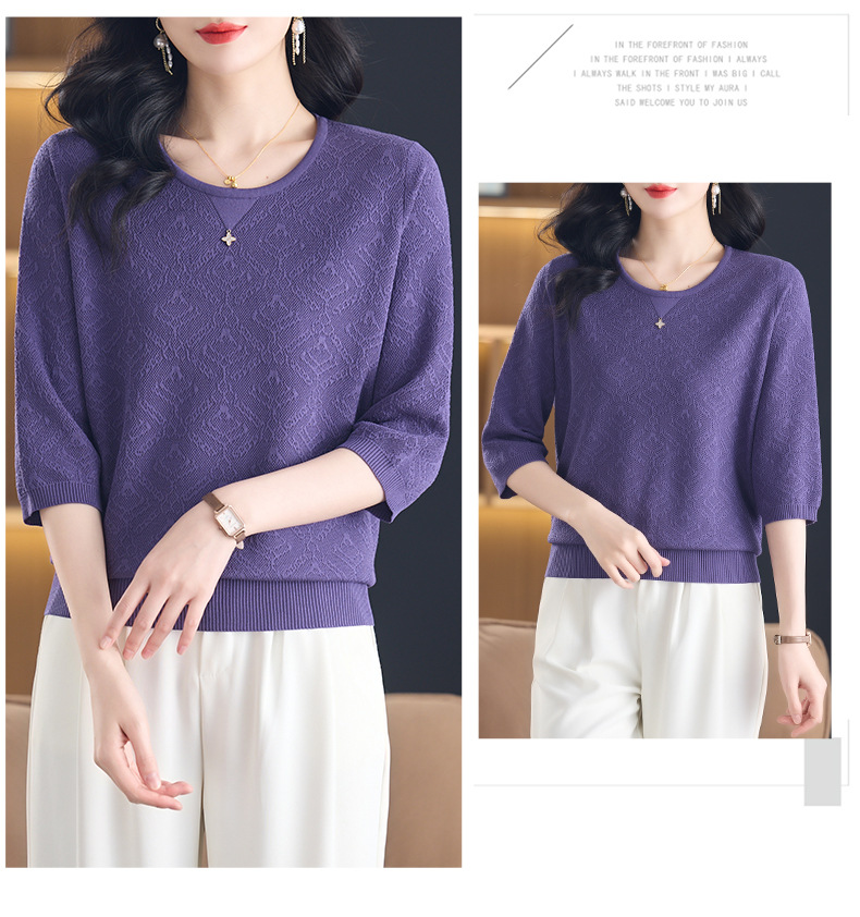 세븐 포인트 슬리브 아이스 실크 니트웨어 여성 어머니 톱 2025 봄과 여름 새로운 패션 루즈 티셔츠 베이스 셔츠스토어 가기