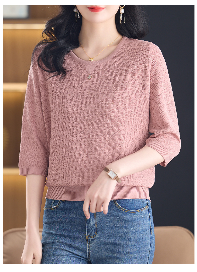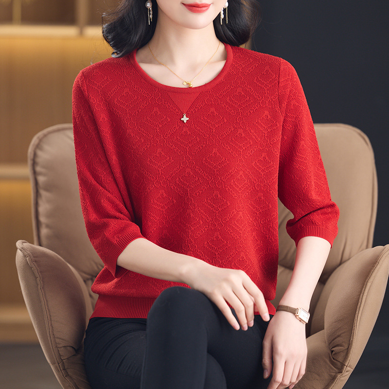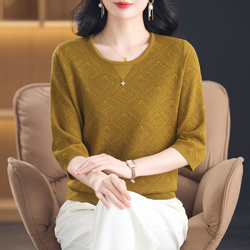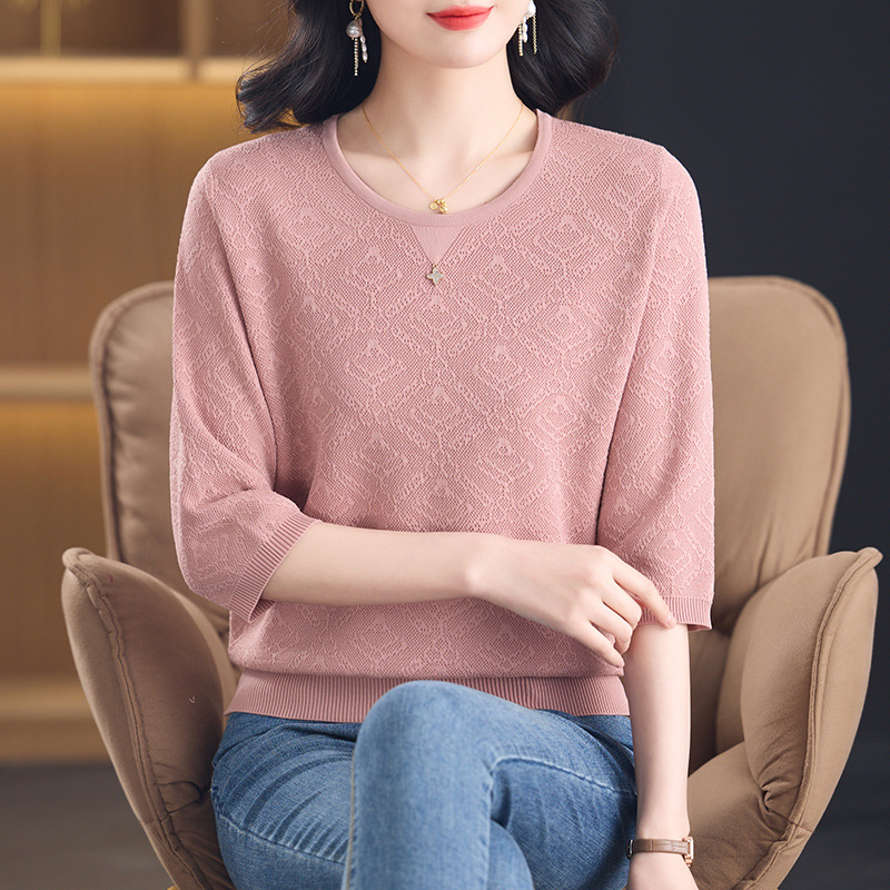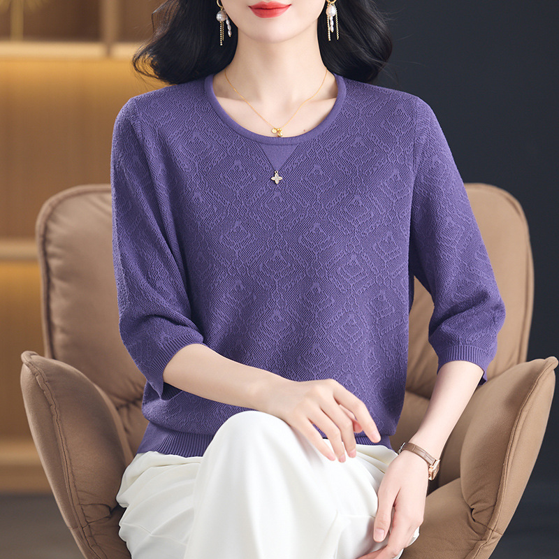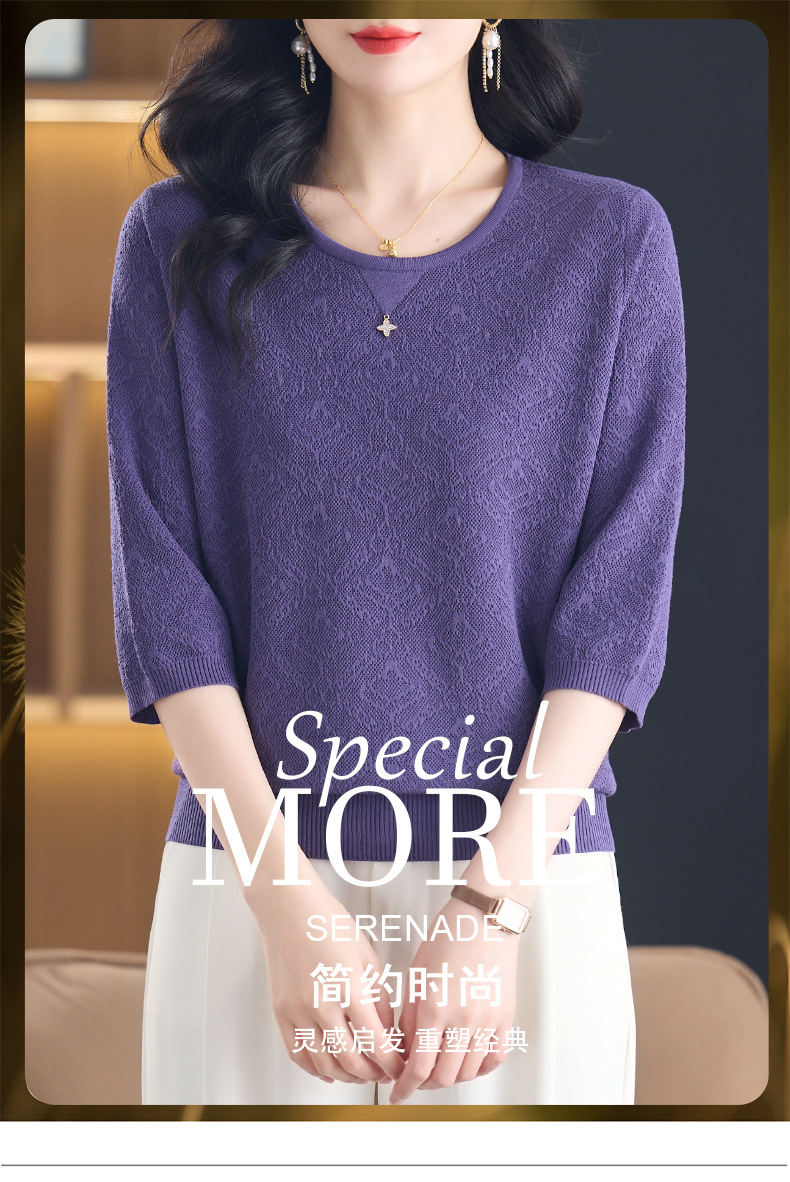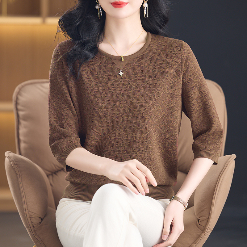 세븐 포인트 슬리브 아이스 실크 니트웨어 여성 어머니 톱 2025 봄과 여름 새로운 패션 루즈 티셔츠 베이스 셔츠