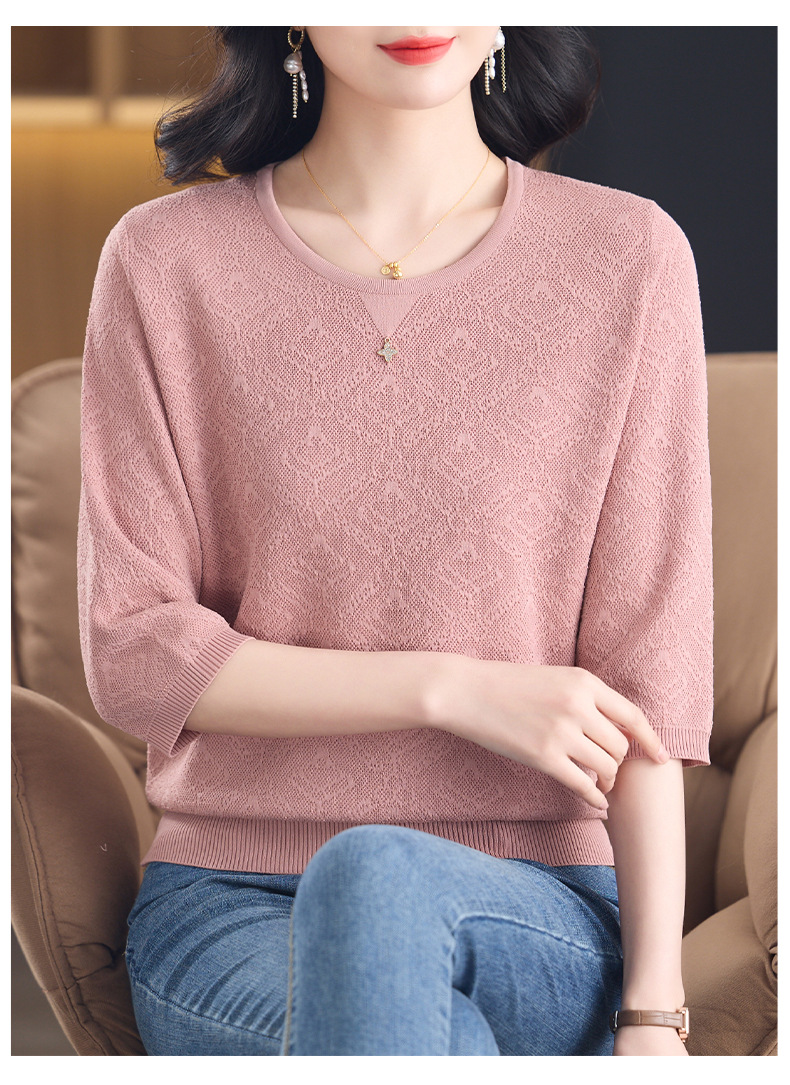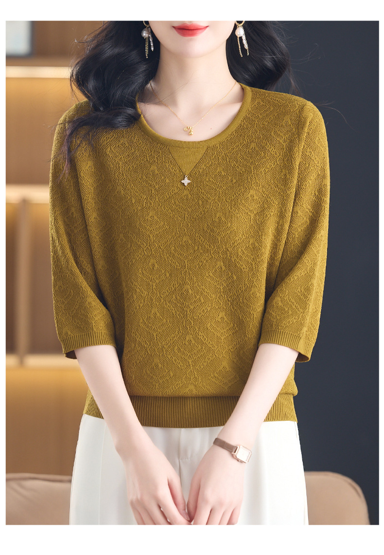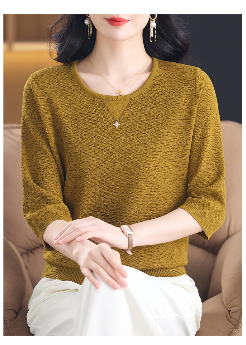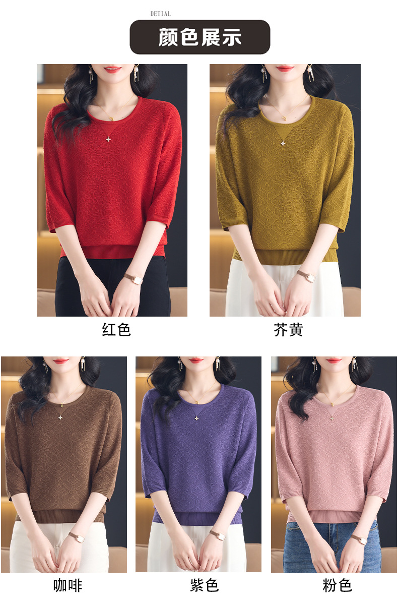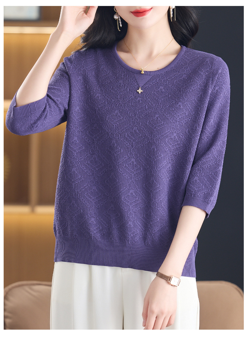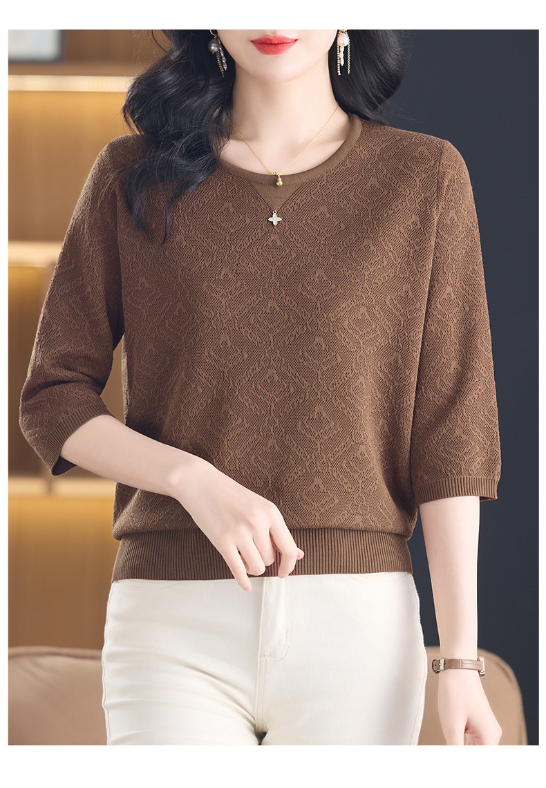 세븐 포인트 슬리브 아이스 실크 니트웨어 여성 어머니 톱 2025 봄과 여름 새로운 패션 루즈 티셔츠 베이스 셔츠