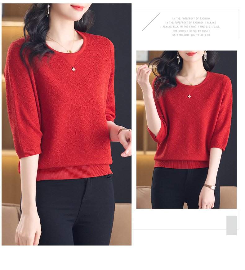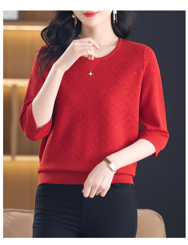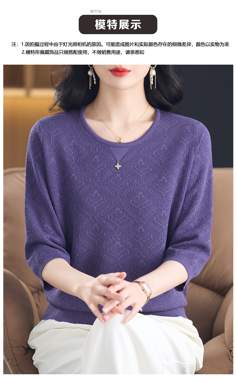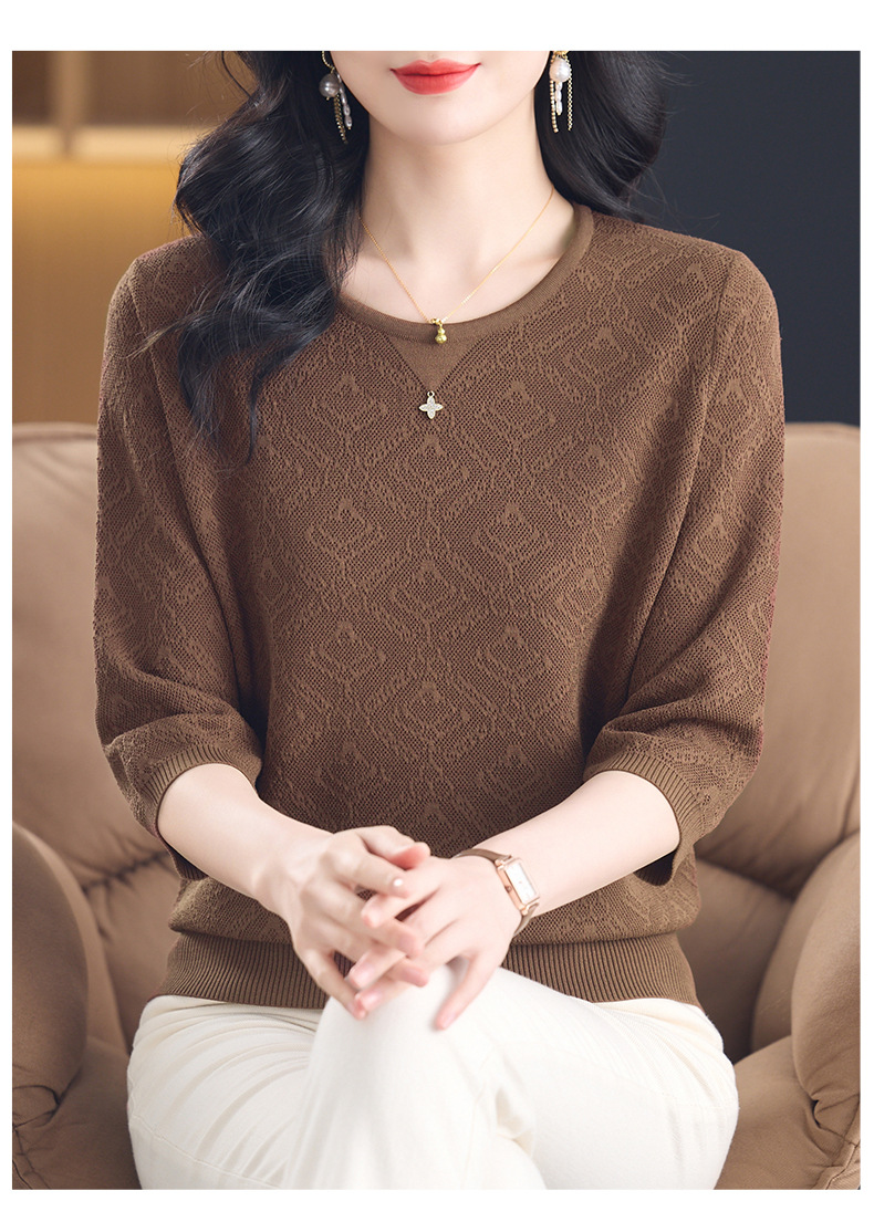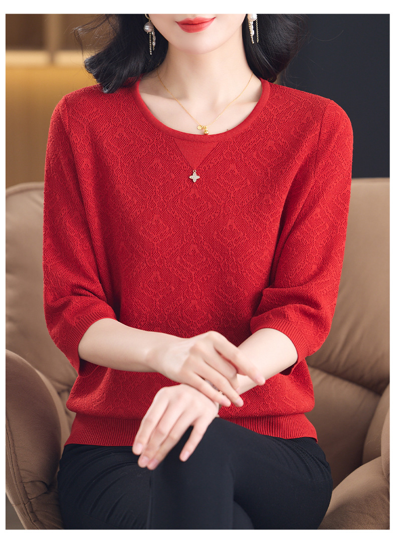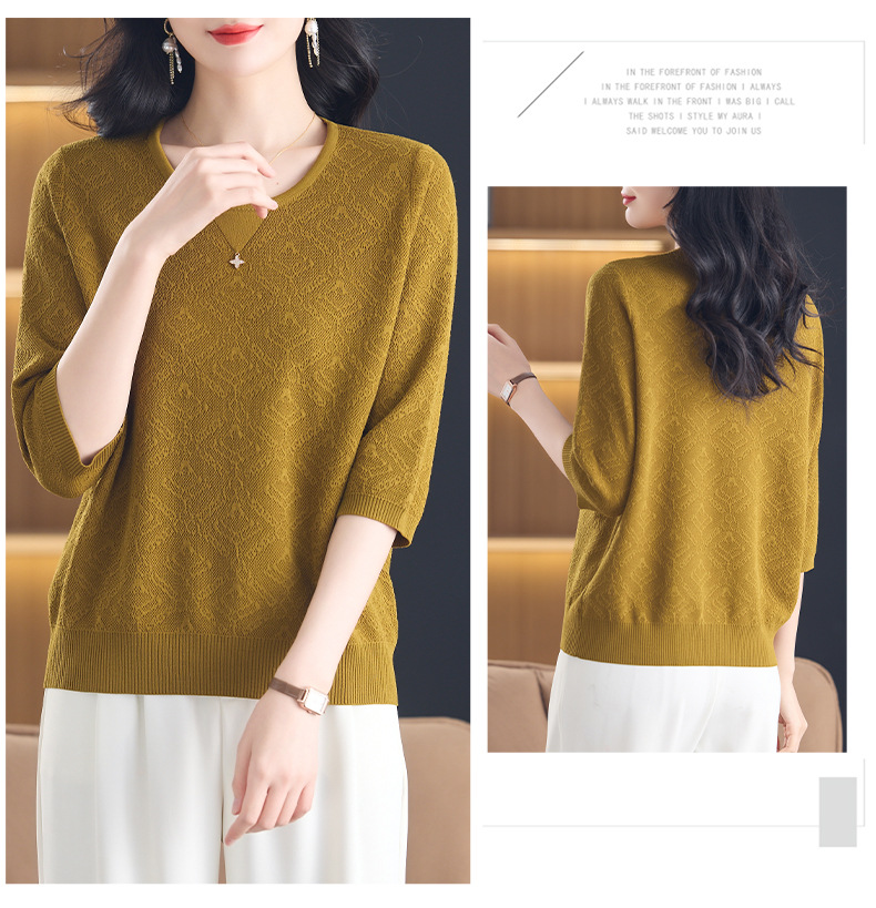 세븐 포인트 슬리브 아이스 실크 니트웨어 여성 어머니 톱 2025 봄과 여름 새로운 패션 루즈 티셔츠 베이스 셔츠