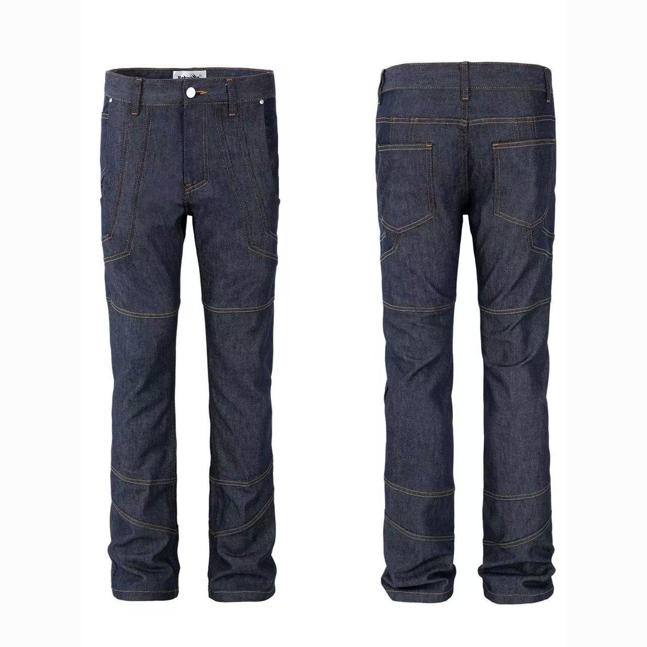 트렌디 한 새로운 도착 찢어진 천 자수 청바지 남성 트렌디 한 캐주얼 패치 슬림 핏 작은 발 유행 맞춤형 바지스토어 가기