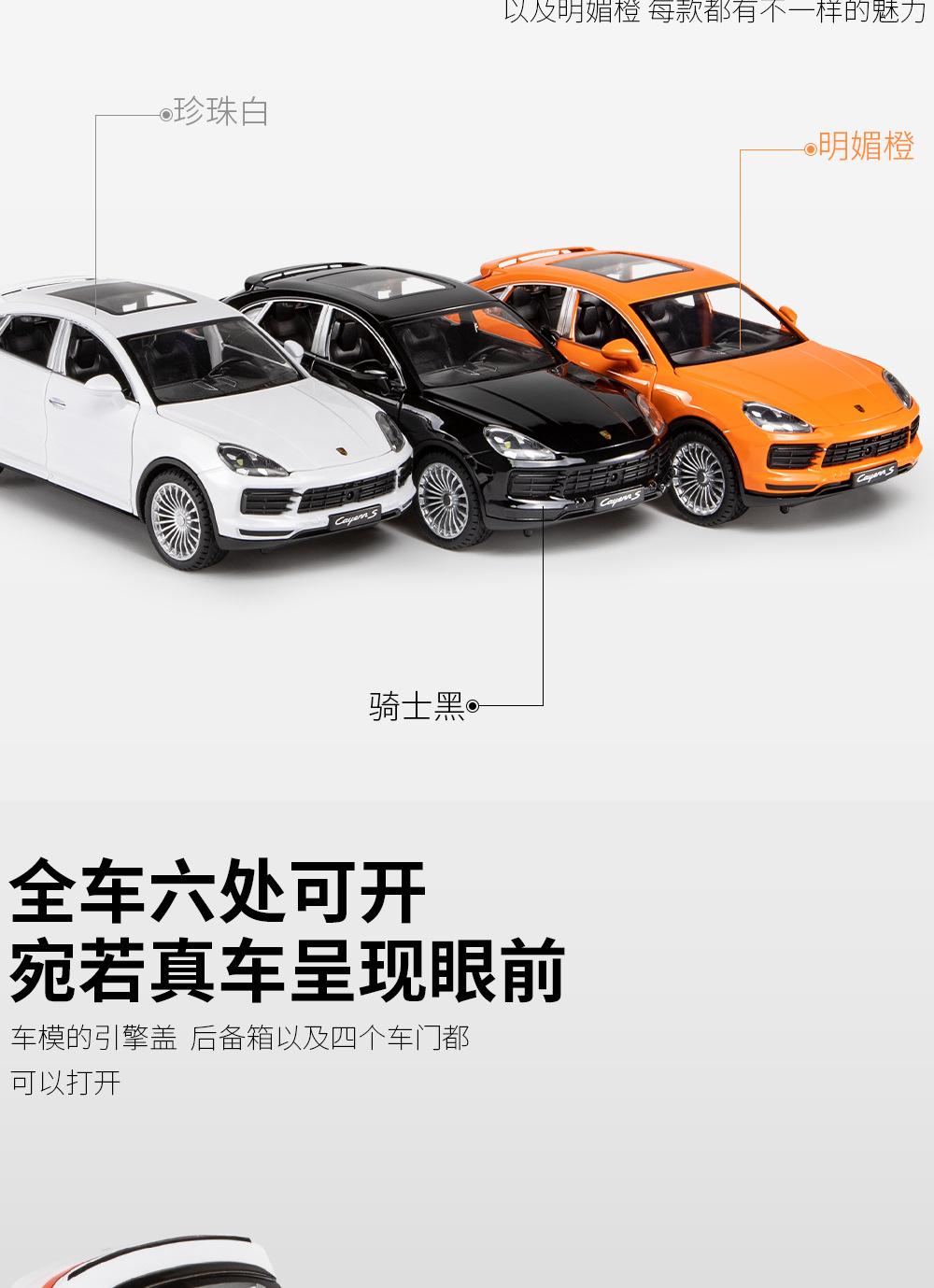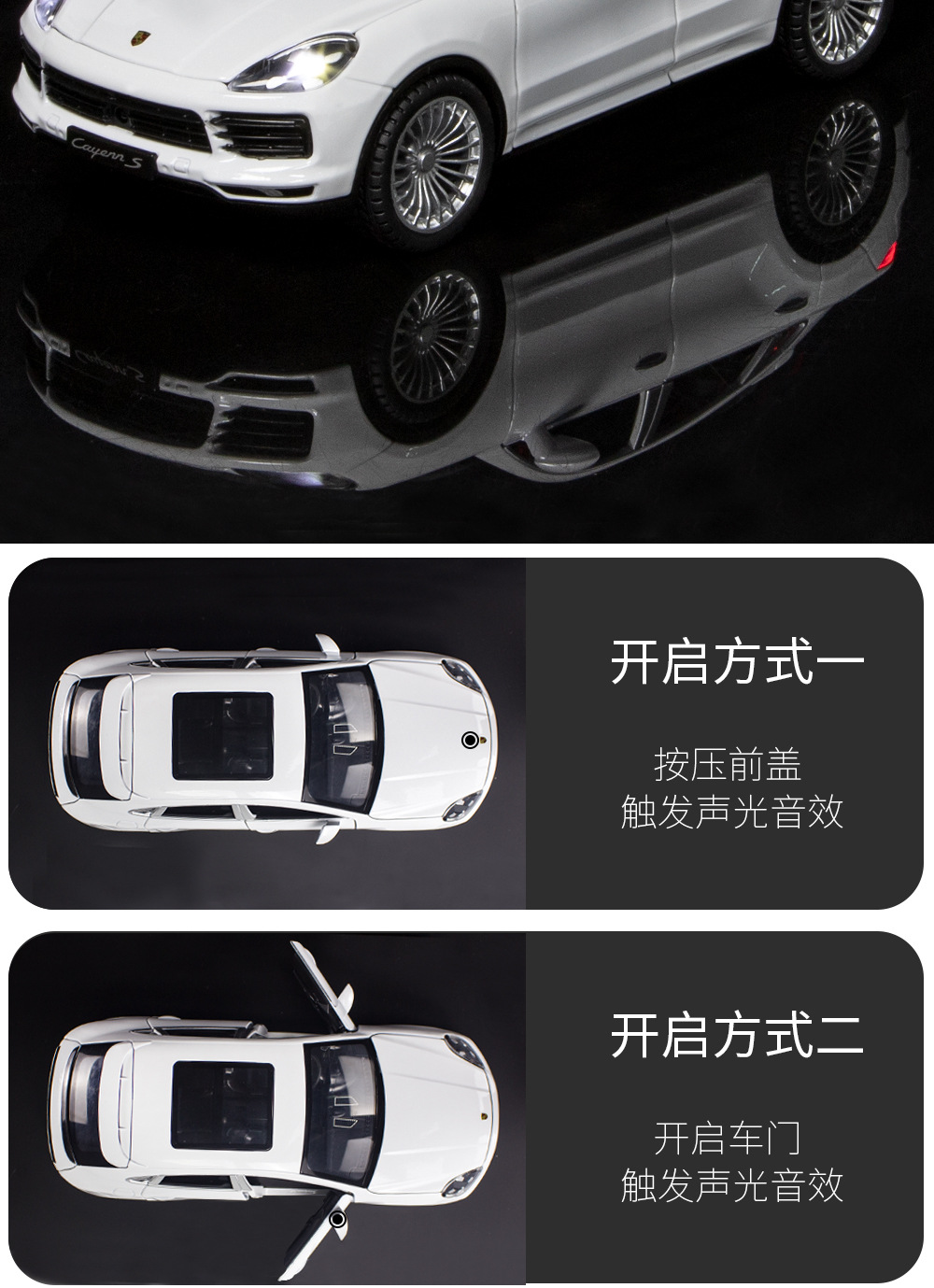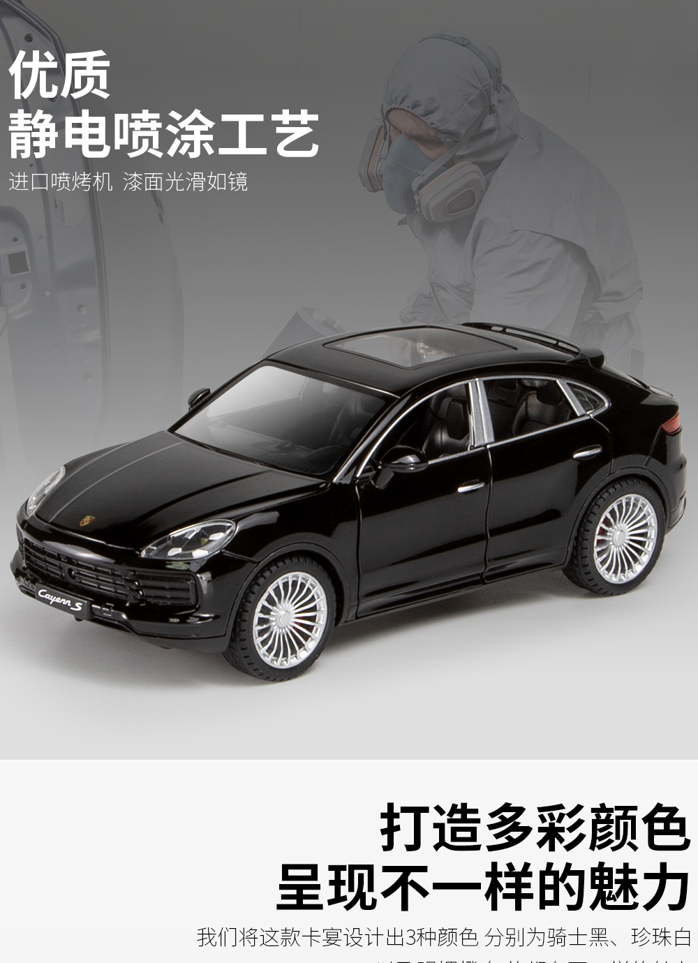 XinhaoDi 1:24 시뮬레이션 포르쉐 카이엔 S 클래식 컬렉션 합금 자동차 모델, 소리와 빛, 열리는 도어, 어린이 장난감스토어 가기