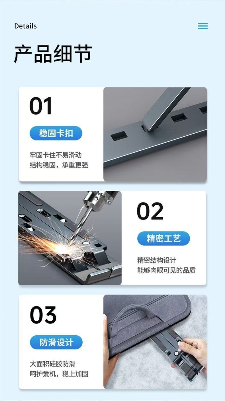 공장 직판 알루미늄 합금 스탠드 휴대용 접이식 높이 조절 가능한 노트북 스탠드 도매스토어 가기