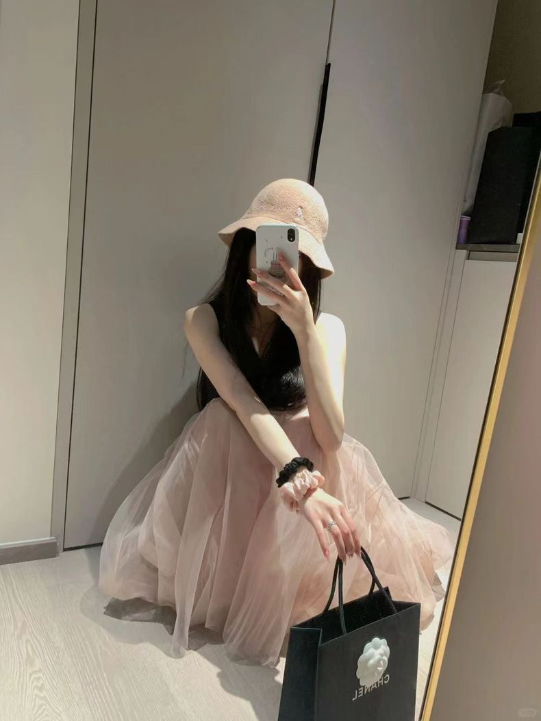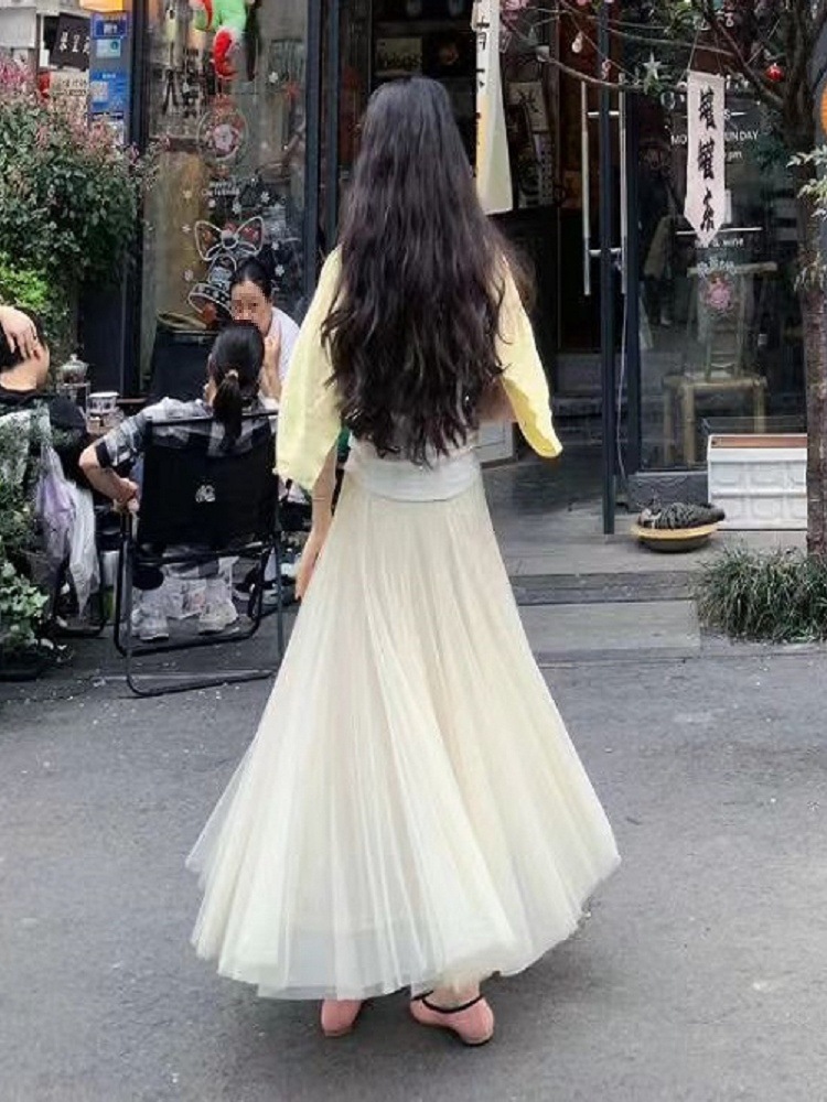 2025 새로운 여름 핑크 A 라인 거즈 스커트 높은 허리 틈새 중간 길이의 거즈 스커트 여성 슈퍼 페어리 우산 스커트 복용량스토어 가기